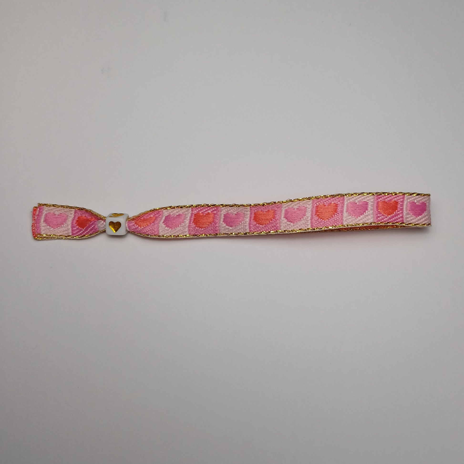 This is a fabric strap with a sliding bead so that it is easy to put on and take off and also fits for (almost) everyone. Please note that the color of the heart bead may be different from the photo!
