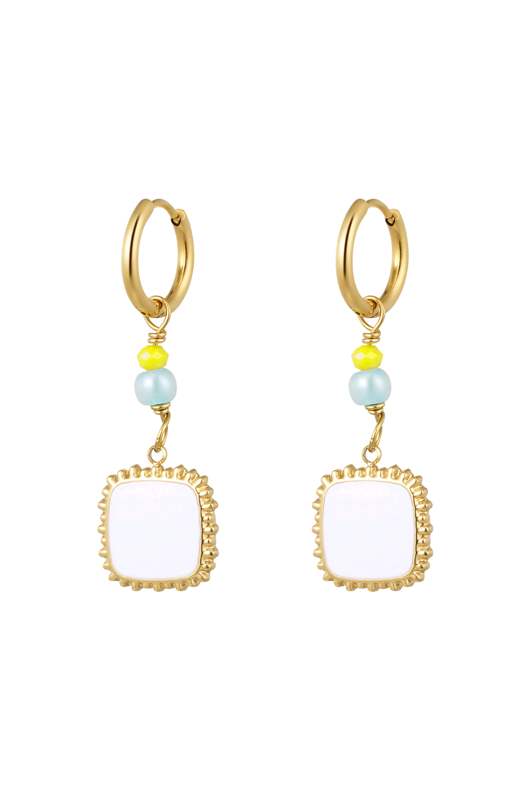 Oorbellen met kralen en vierkante hanger wit