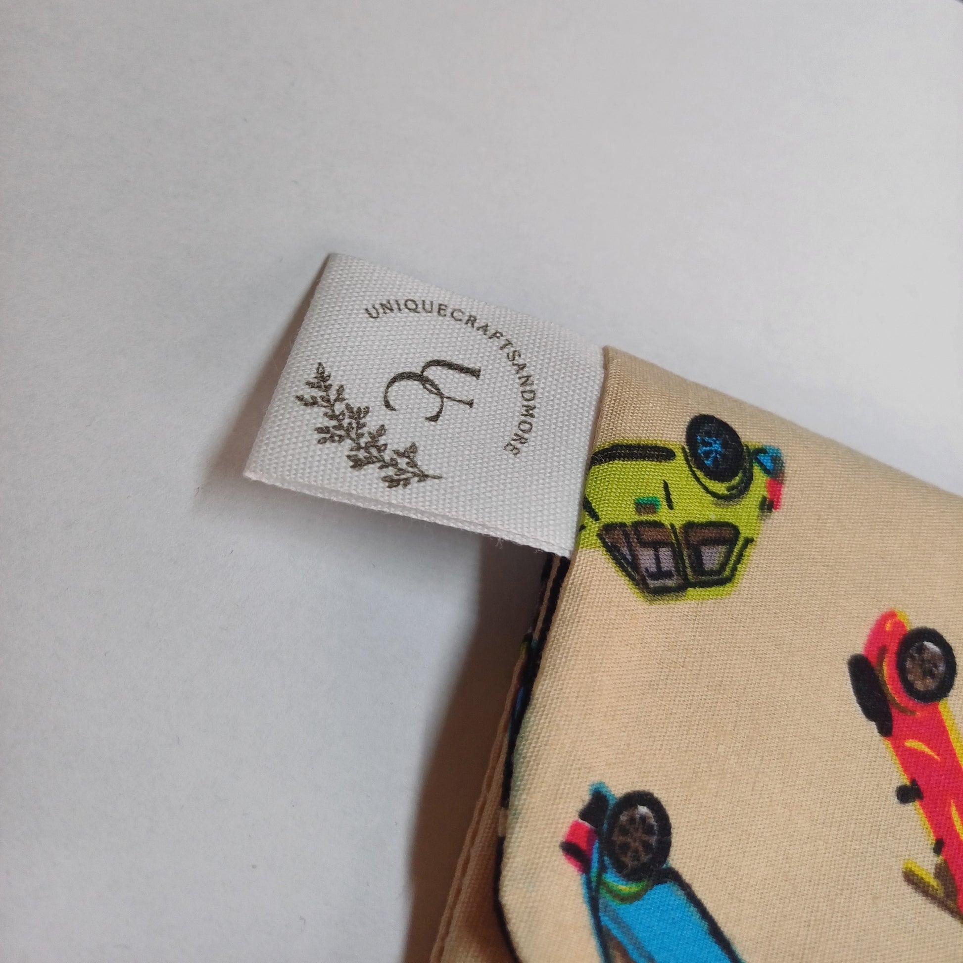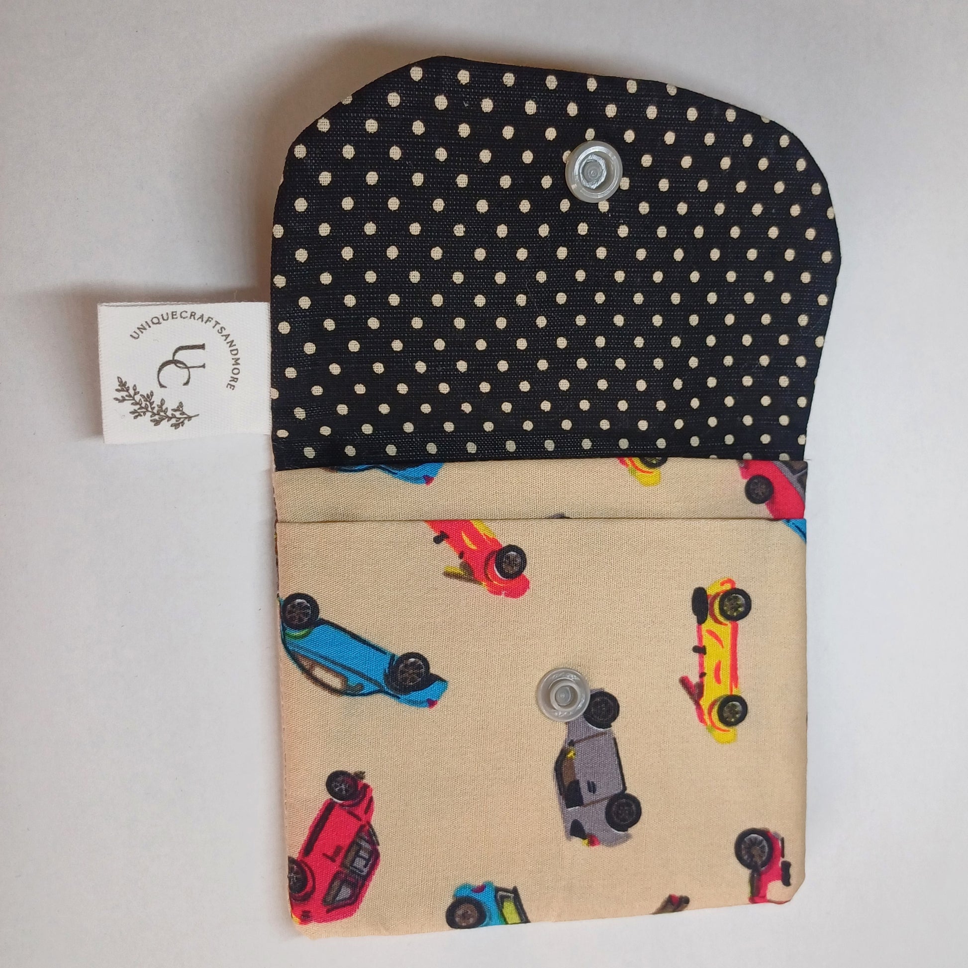 Dit is een handgemaakte portefeuille met een leuke print😊 hij is 11 cm breed en 10 cm hoog.