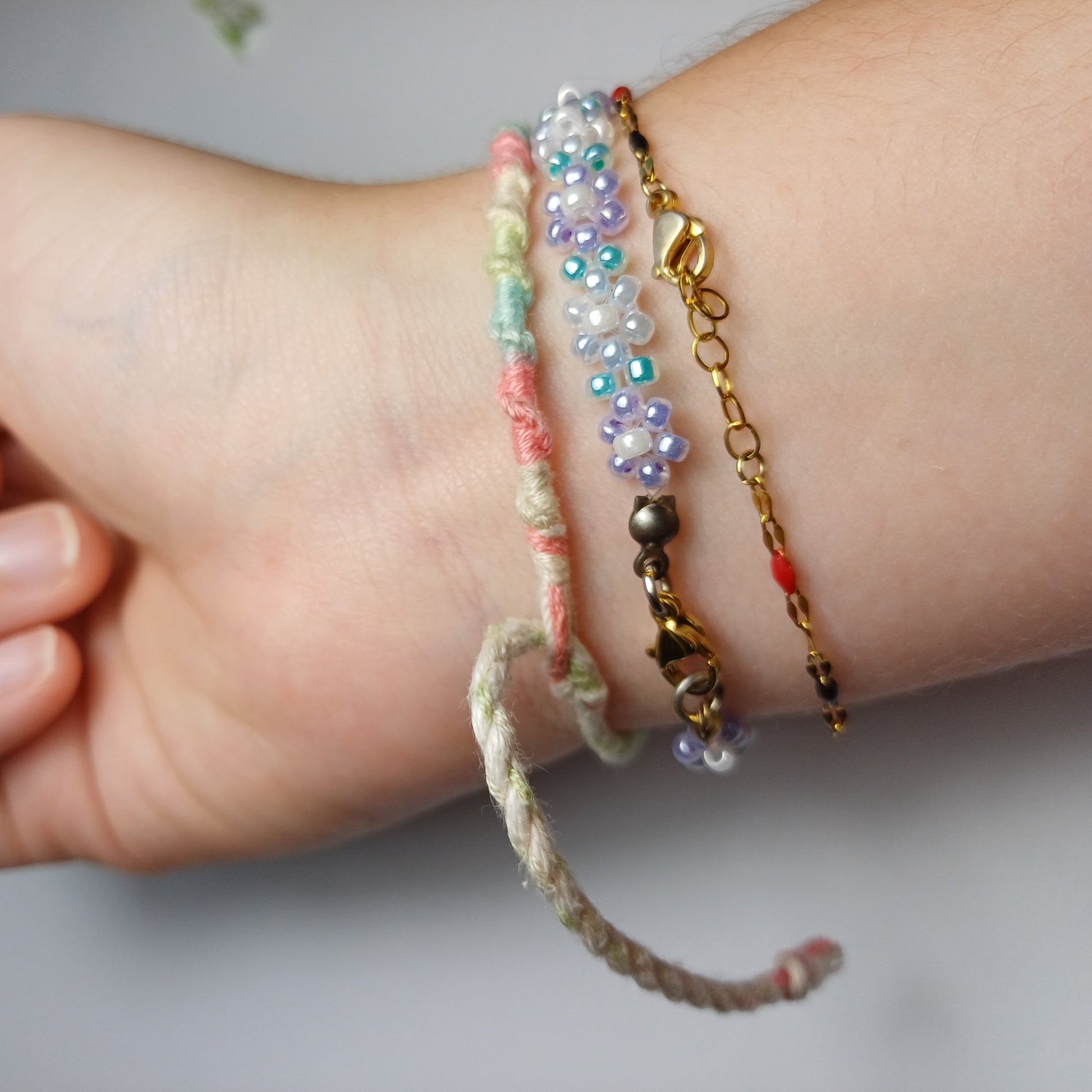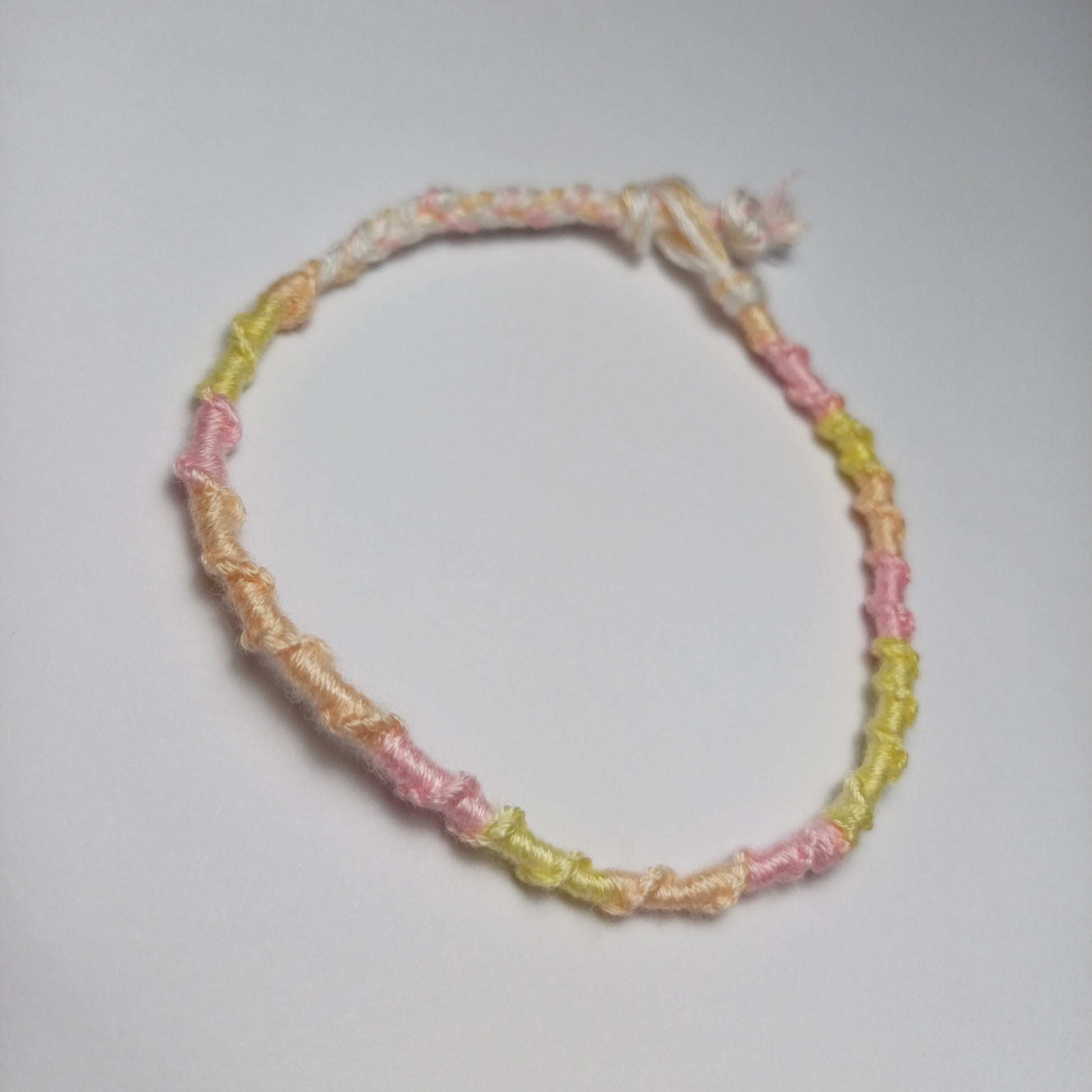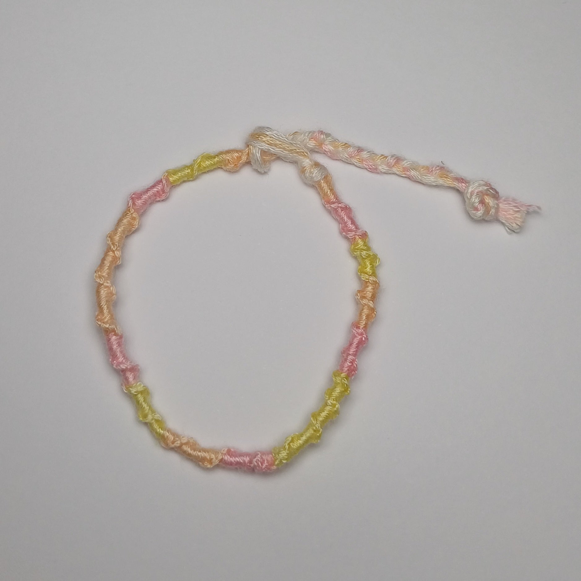 Dit is een handgemaakt touw armbandje. Doordat het een schuifknoop heeft past hij voor (bijna) iedereen omdat je hem zelf kan aanspannen. dit is een kleiner formaat dus past enkel voor kinderen of als je een smalle pols hebt!