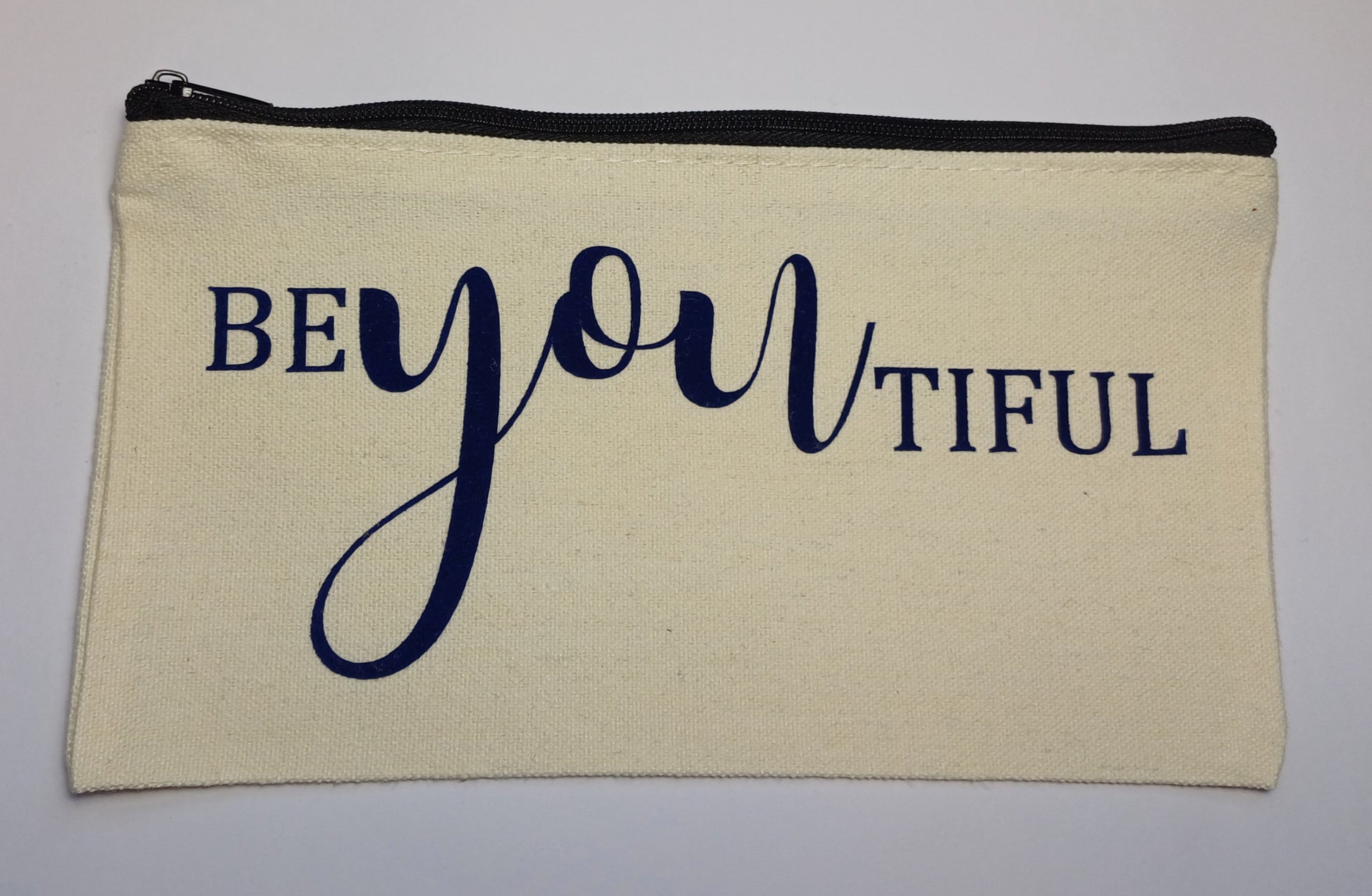 Dit is een zakje die zelf bedrukt is met een zachte opdruk. Het is een zakje met een rits in je kan dit zakje voor verschillende dingen gebruiken 😊 hij is 20,5 x 12 cm.