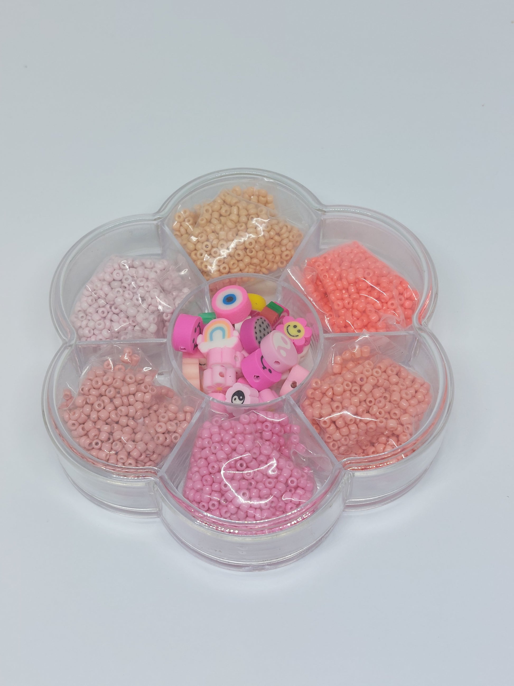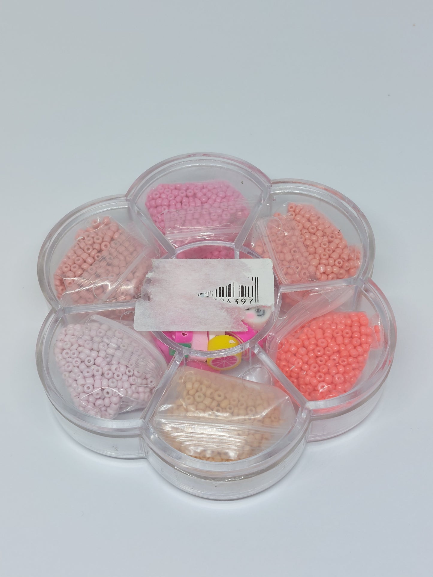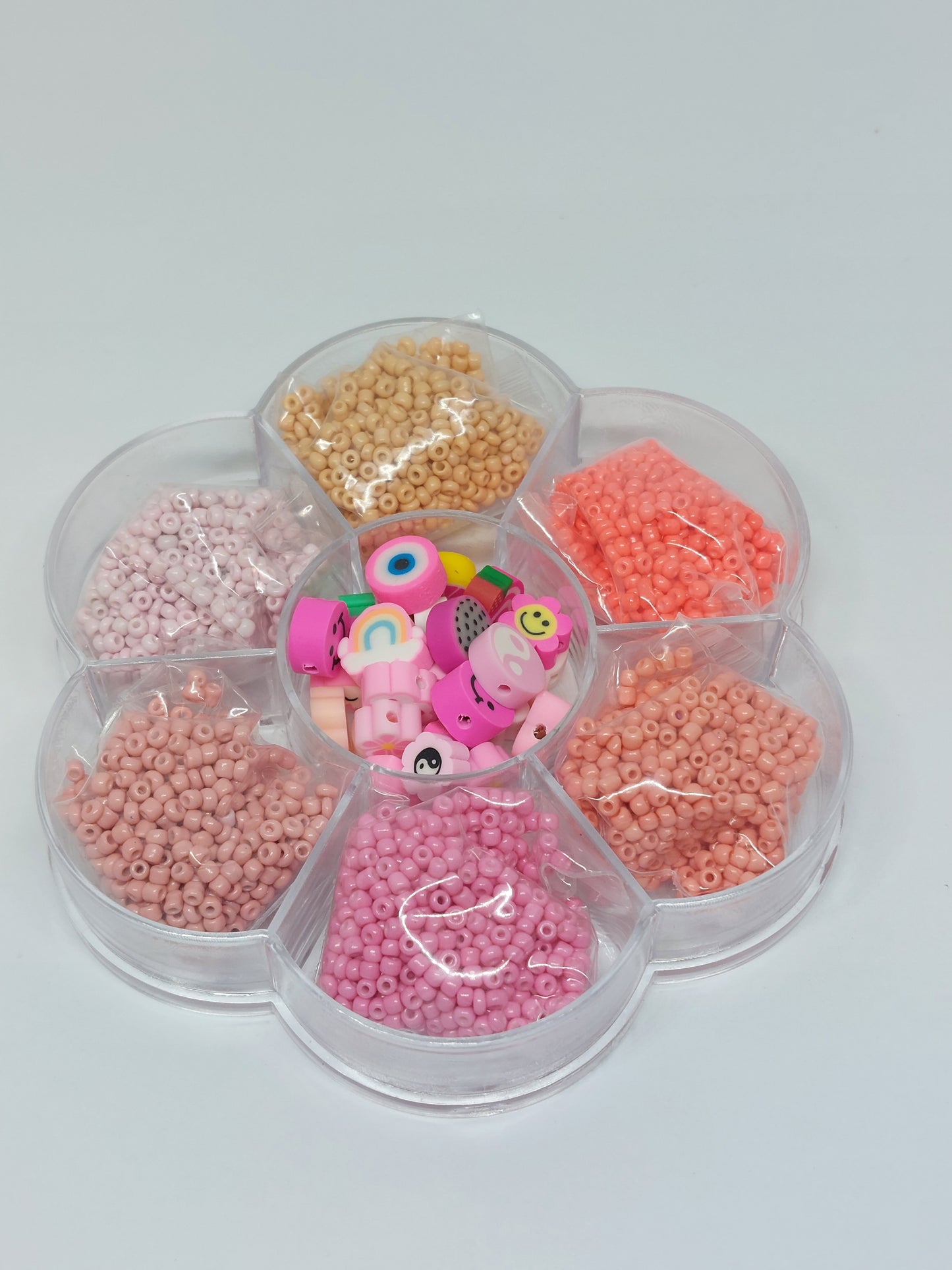 Dit is een kralen box met 6x10 gram 2mm rocailles en 25x polymeer kralen mix.