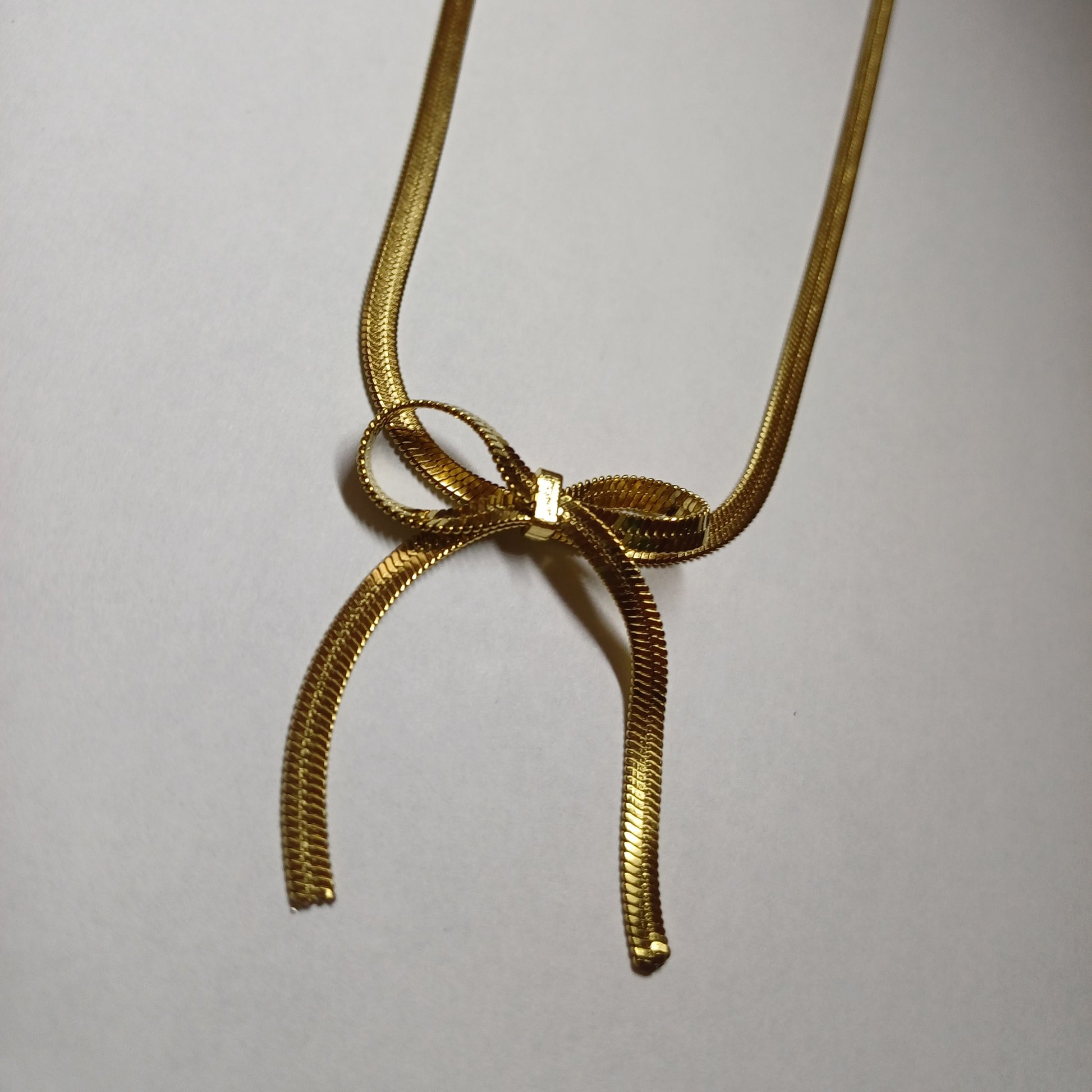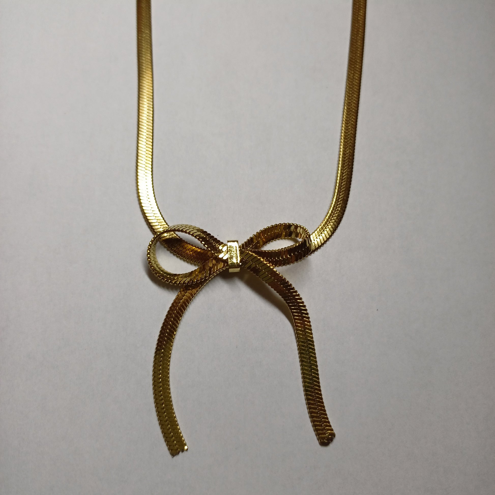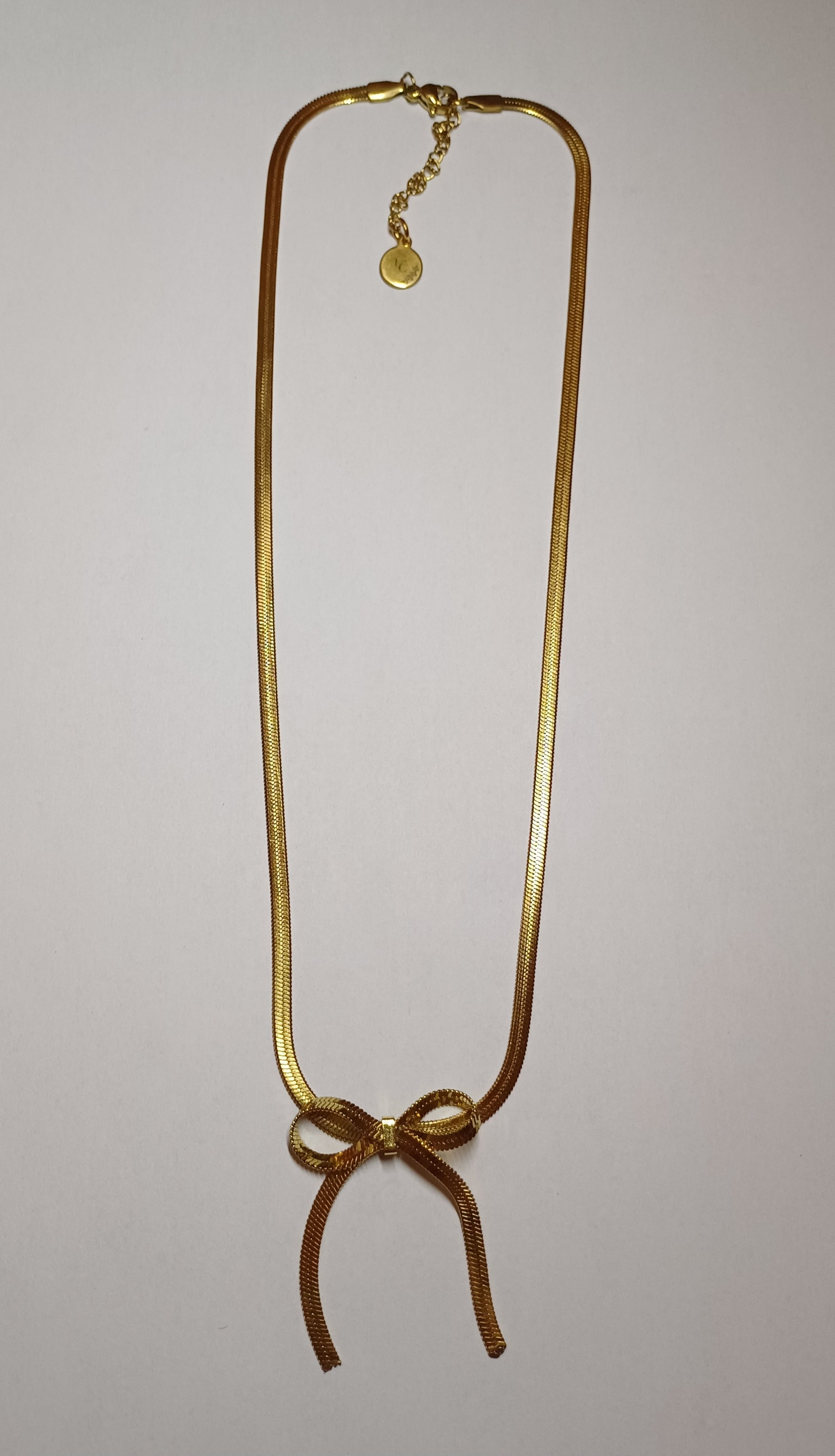 Leuke ketting met strik. Deze ketting kan je gemakkelijk combineren met andere sieraden, maar ook op zichzelf is het een mooi sieraad.