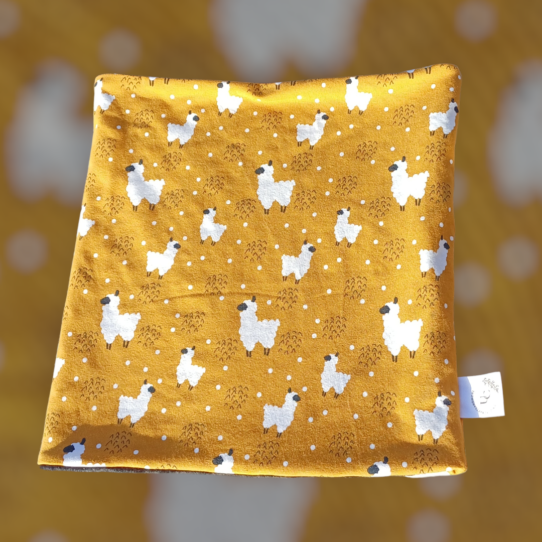 Dit is een handgenaaide colsjaal met een een leuke print langs de buiten kant en een hele zachte bubbel stof lang de binnenkant, deze is ook lekker warm ๐ de omtrek van deze sjaal isย 53 cm.