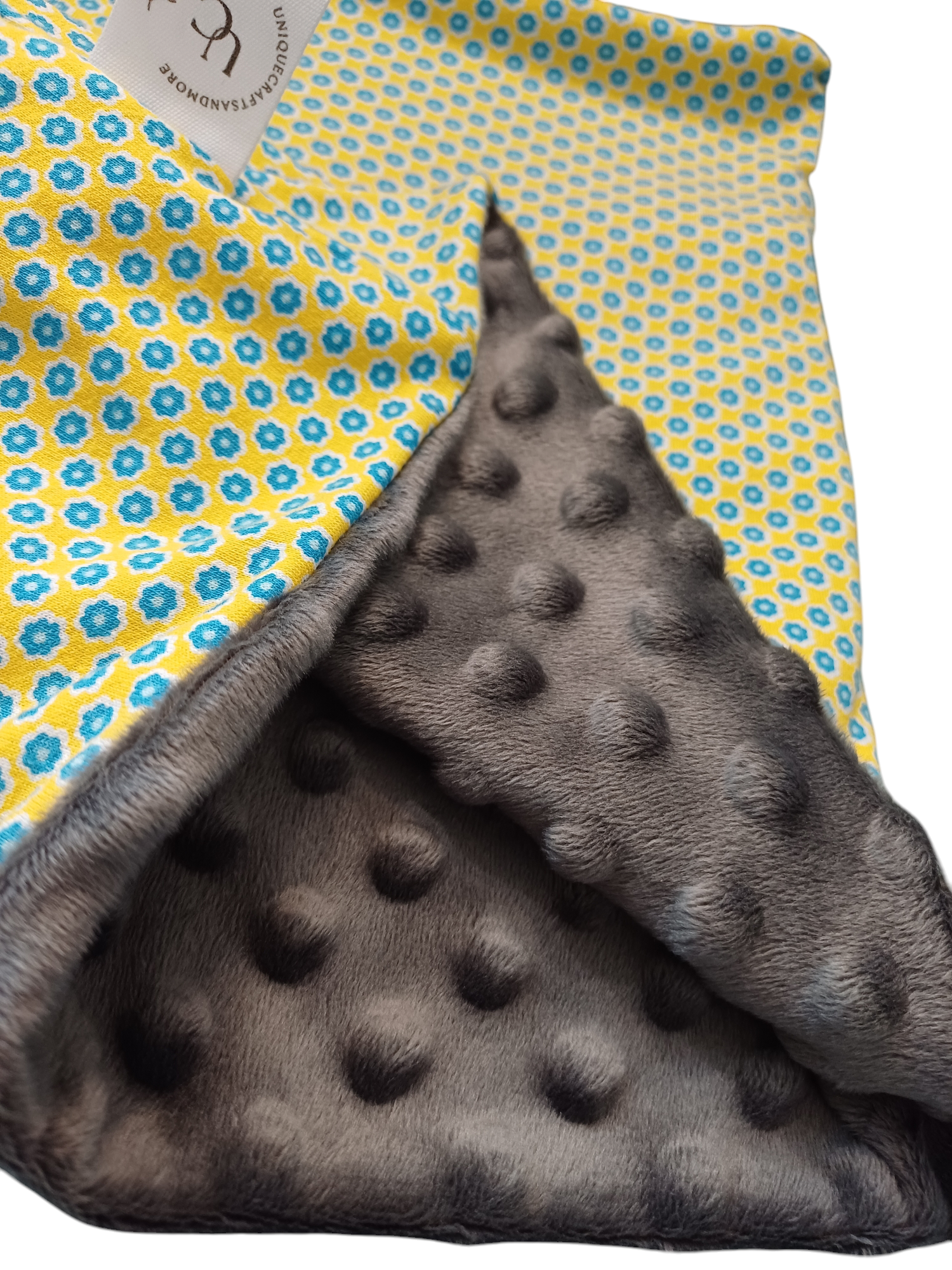 Dit is een handgenaaide colsjaal met een een leuke print langs de buiten kant en een hele zachte bubbel stof lang de binnenkant, deze is ook lekker warm 😊 de omtrek van deze sjaal is 52 cm.