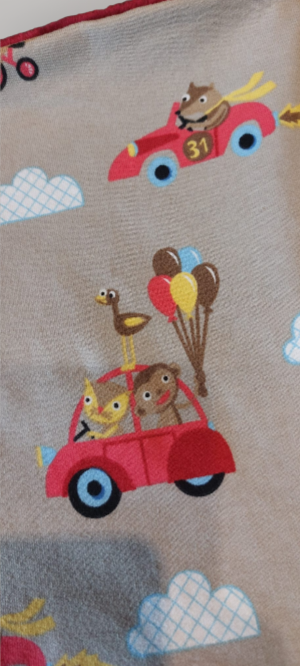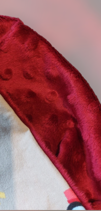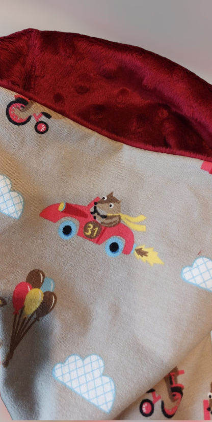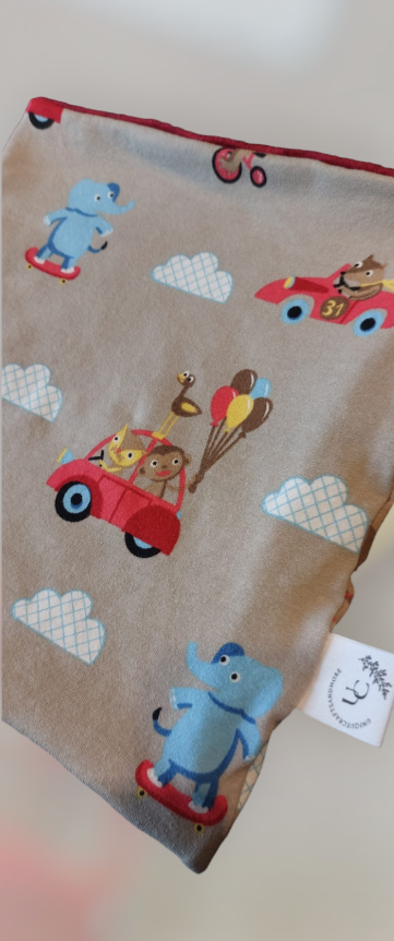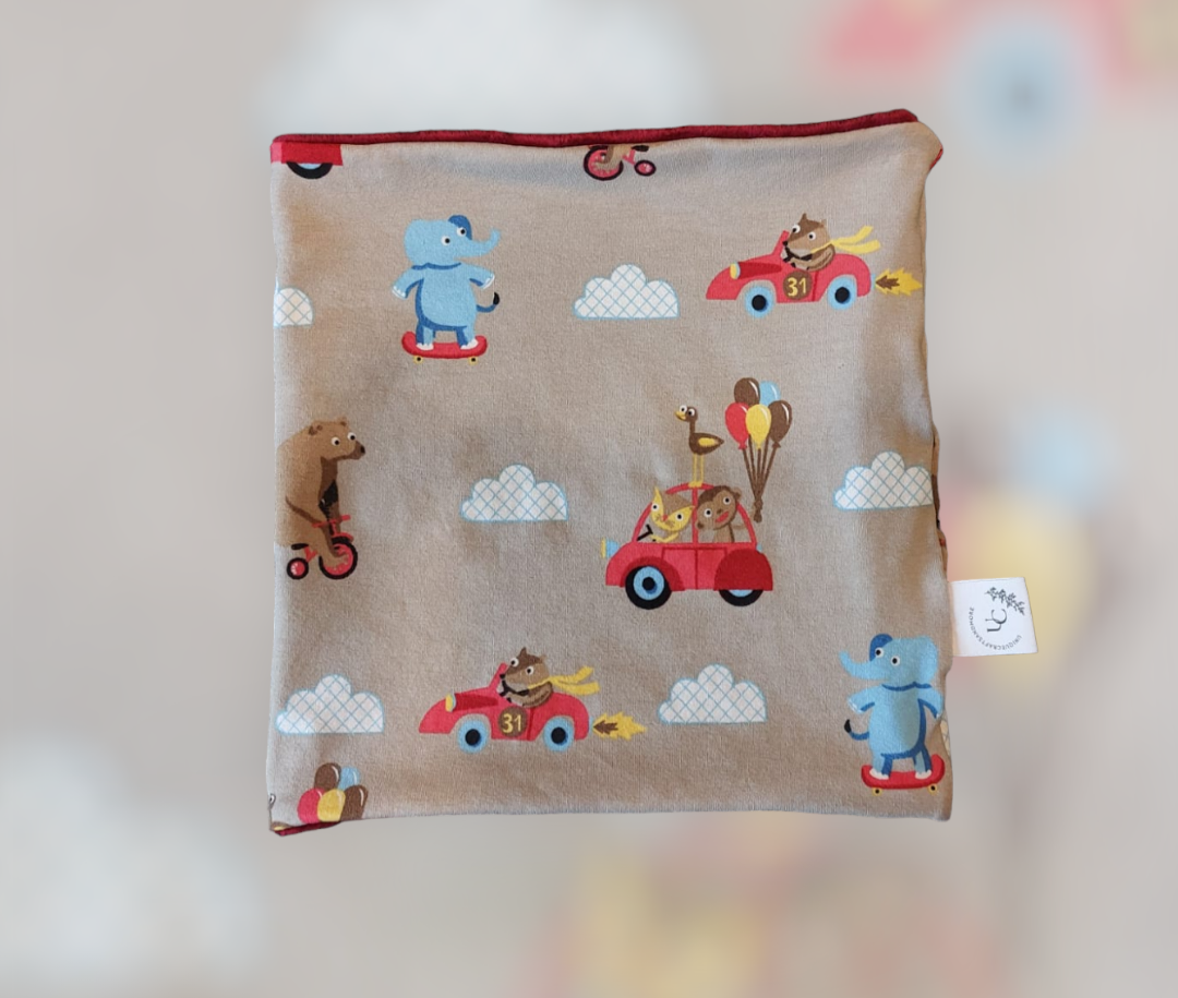 Dit is een handgenaaide colsjaal met een een leuke print langs de buiten kant en een hele zachte bubbel stof lang de binnenkant, deze is ook lekker warm 😊 de omtrek van deze sjaal is 48cm