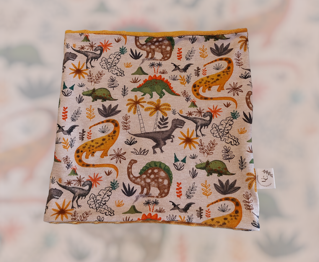 Dit is een handgenaaide colsjaal met een een leuke print langs de buiten kant en een hele zachte bubbel stof lang de binnenkant, deze is ook lekker warm 😊 de omtrek van deze sjaal is 56cm.