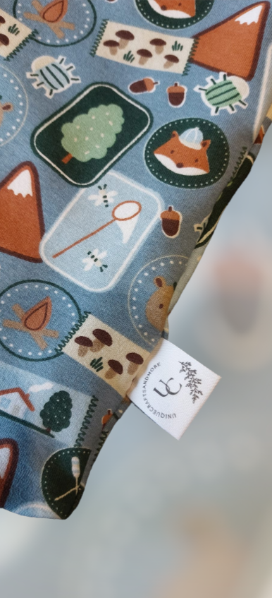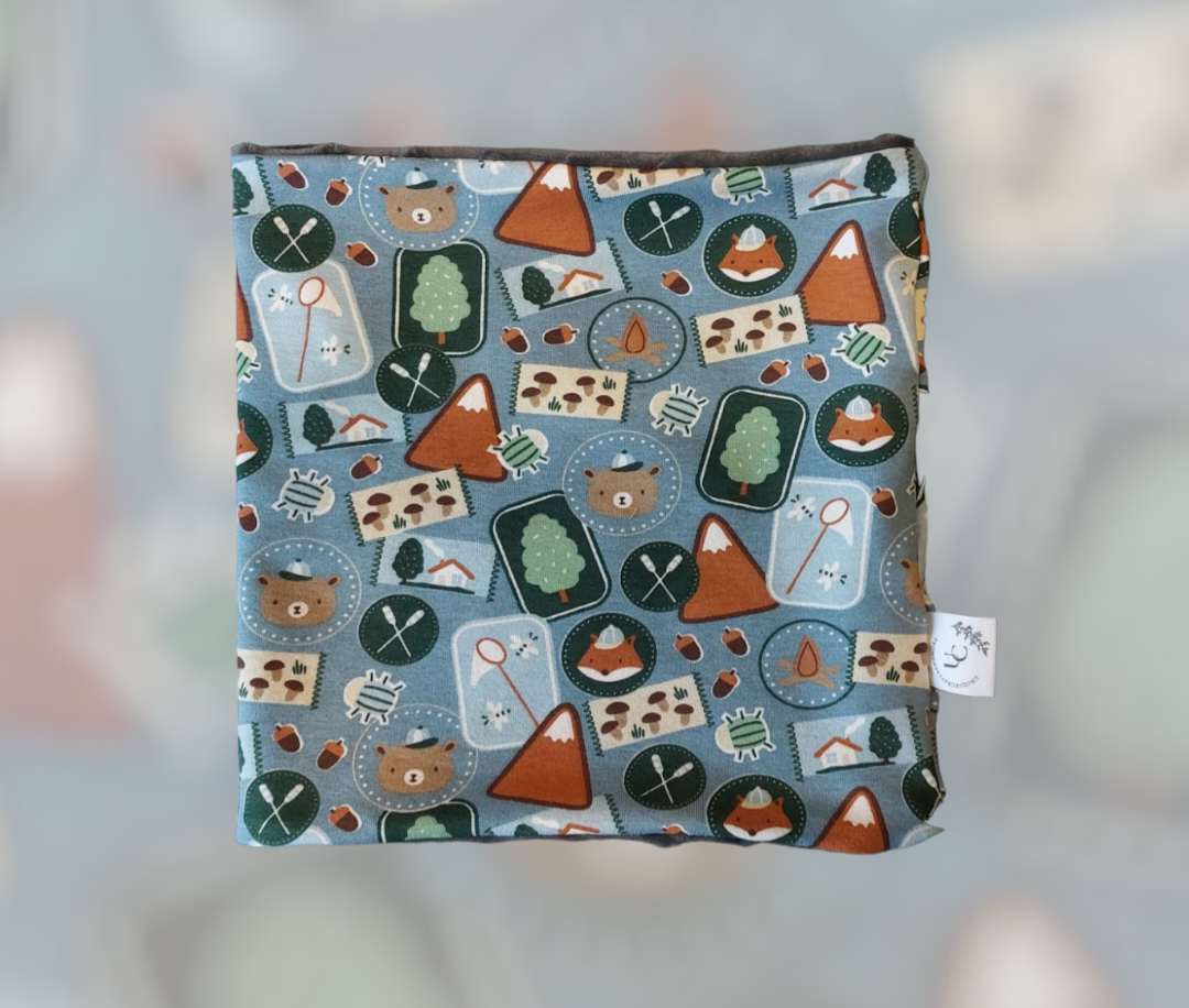 Dit is een handgenaaide colsjaal met een een leuke print langs de buiten kant en een hele zachte bubbel stof lang de binnenkant, deze is ook lekker warm 😊 de omtrek van deze sjaal is 48cm.