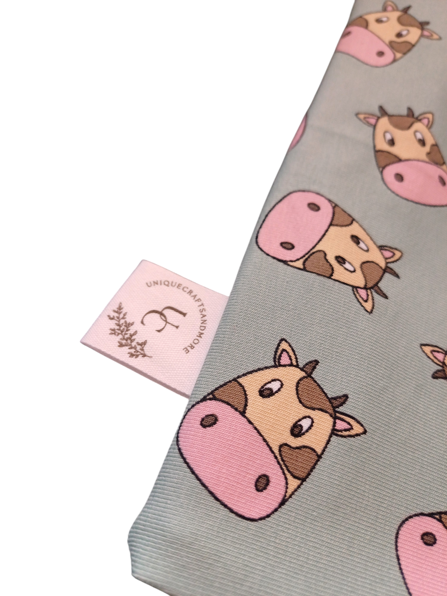 Dit is een handgenaaide colsjaal met een een leuke print langs de buiten kant en een hele zachte bubbel stof lang de binnenkant, deze is ook lekker warm 😊 de omtrek van deze sjaal is 50cm.