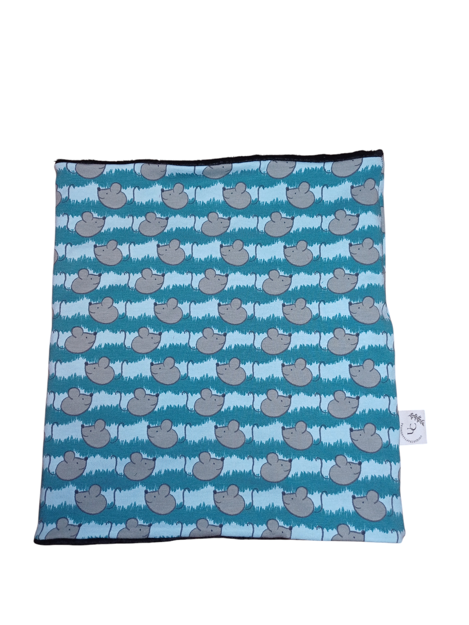 Dit is een handgenaaide colsjaal met een een leuke print langs de buiten kant en een hele zachte bubbel stof lang de binnenkant, deze is ook lekker warm 😊 de omtrek van deze sjaal is 53cm.