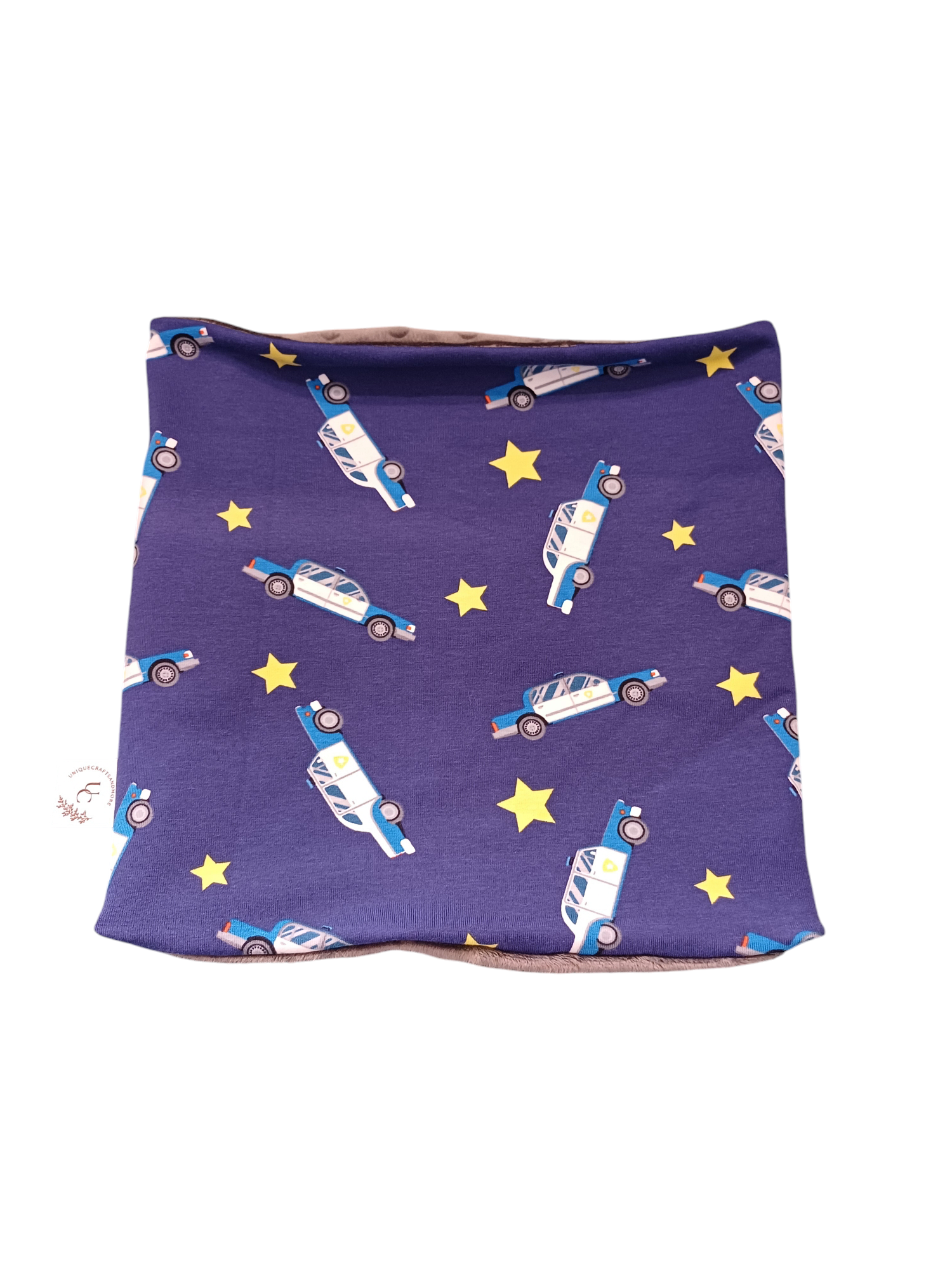 Dit is een handgenaaide colsjaal met een een leuke print langs de buiten kant en een hele zachte bubbel stof lang de binnenkant, deze is ook lekker warm 😊 de omtrek van deze sjaal is 52 cm.