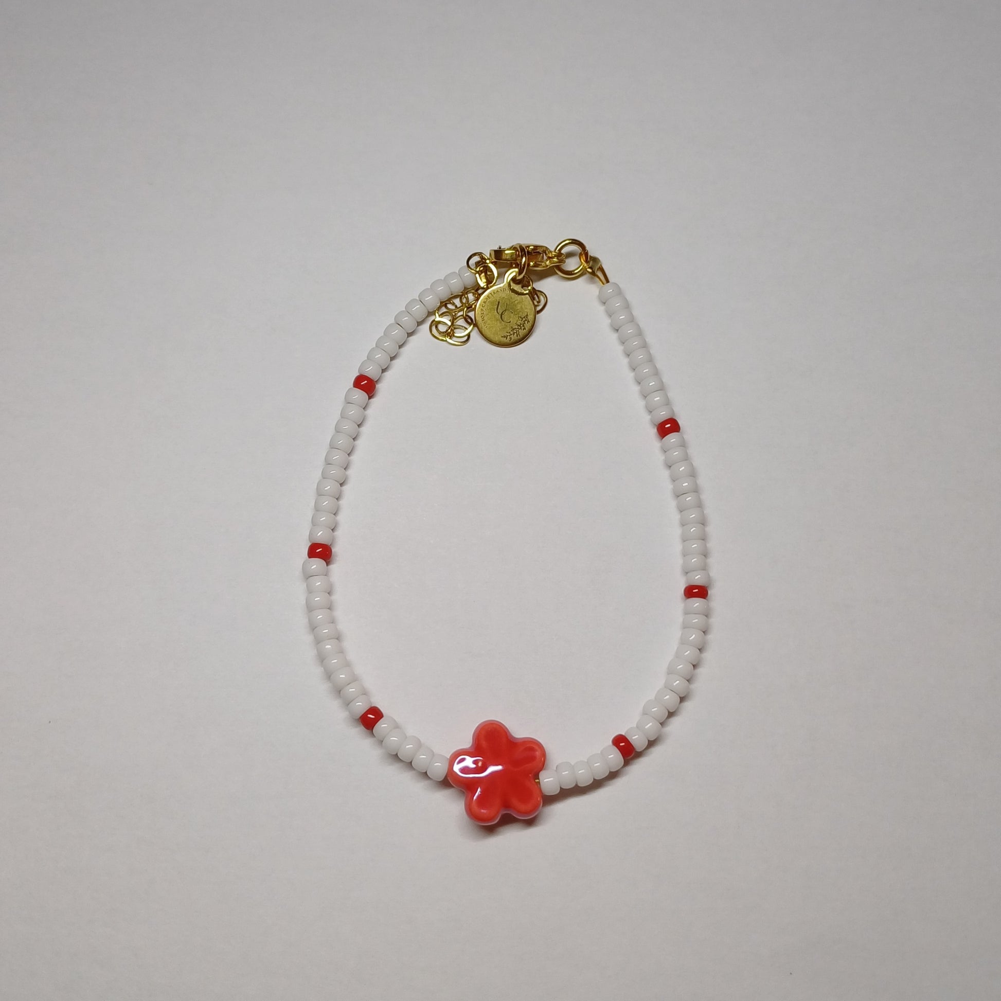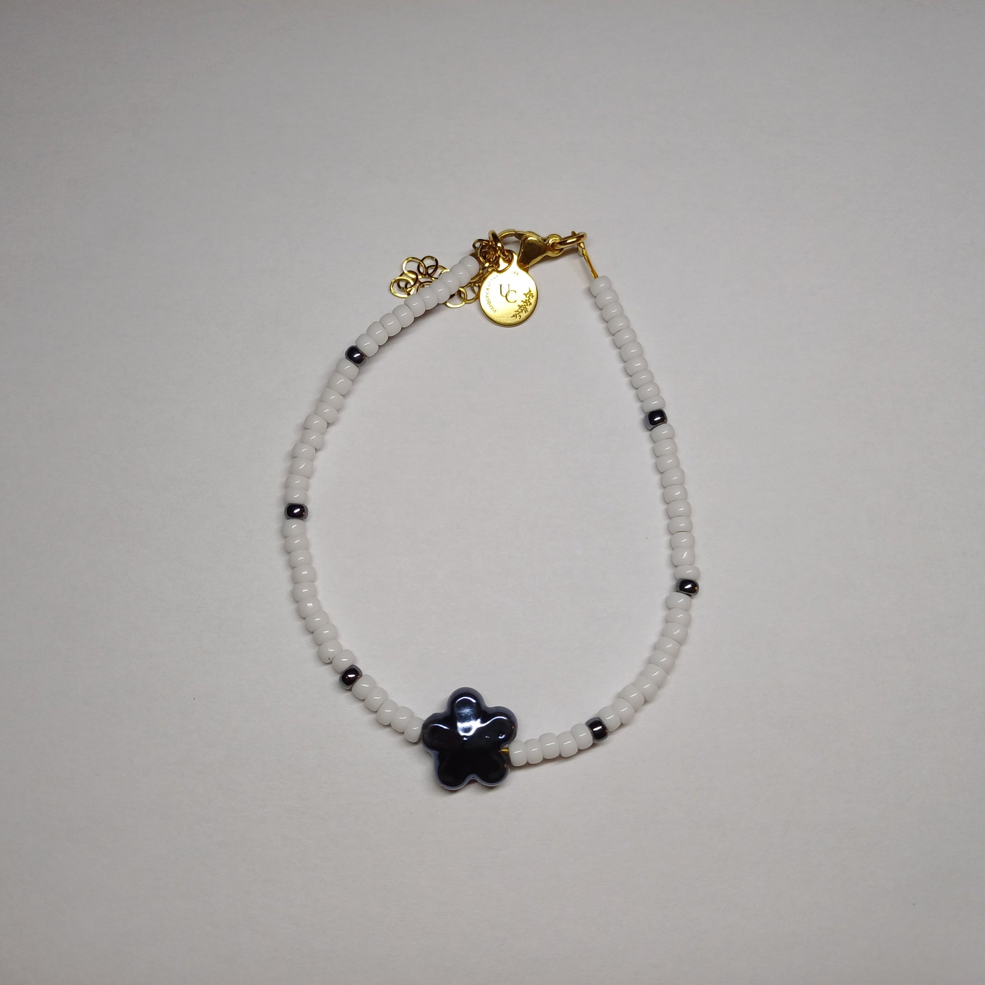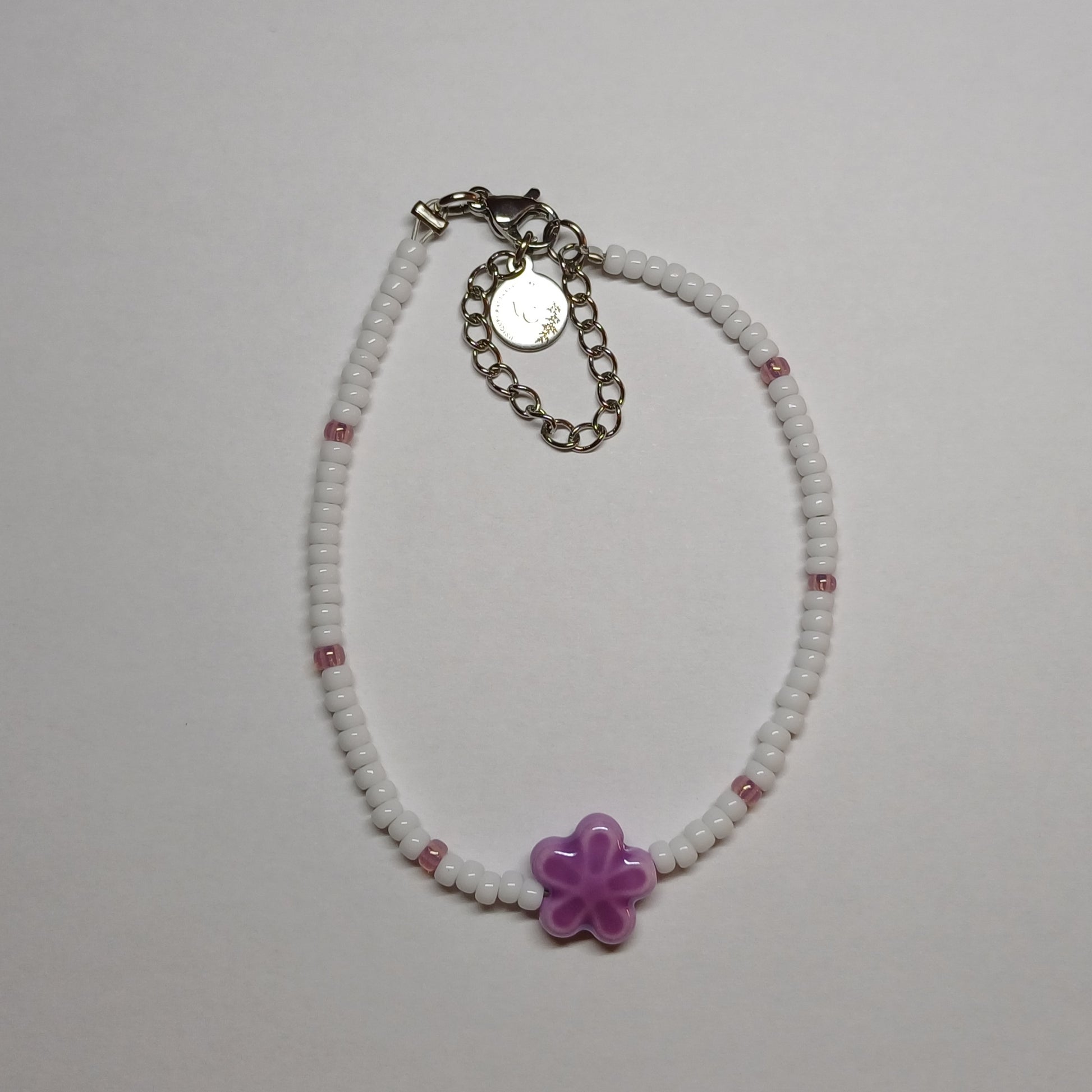 Probeer je armbandje van water, parfum, zweet etc uit de buurt te houden. Hij kan hier normaal tegen maar het kan toch altijd zijn dat hij daardoor verkleurd en zo heb je er veel langer plezier van. 😊 (hij is gemaakt van miyuki rocailles & een keramiek bloemetje)