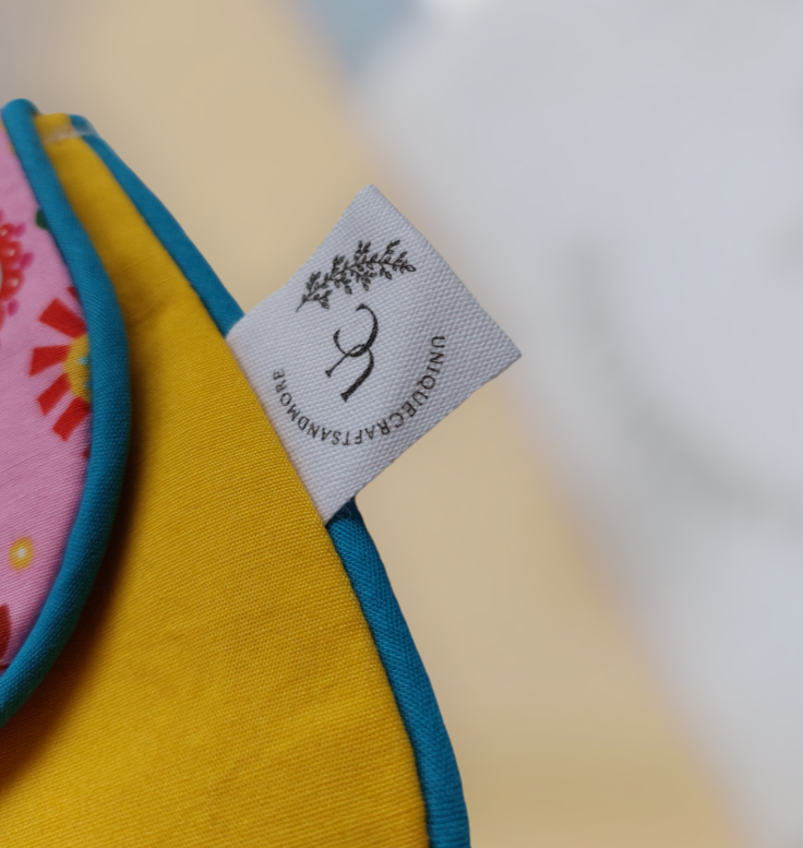 Dit is een handgemaakte etui met een leuke print en een druk knopje als sluiting deze is 24 cm breed en 14 cm hoog 😊