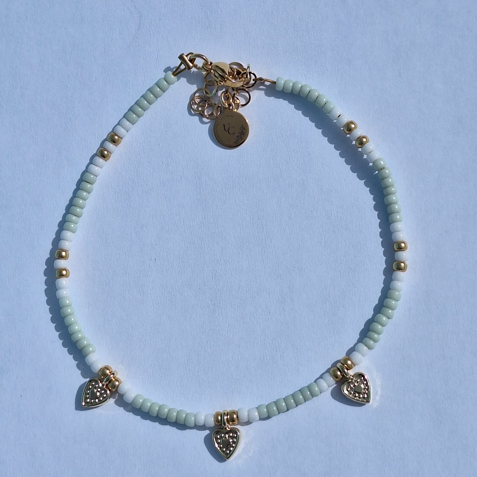 Probeer je enkelbandje van water, parfum, zweet etc uit de buurt te houden. Hij kan hier normaal tegen maar het kan toch altijd zijn dat hij daardoor verkleurd en zo heb je er veel langer plezier van. 😊 (hij is gemaakt van miyuki rocailles)