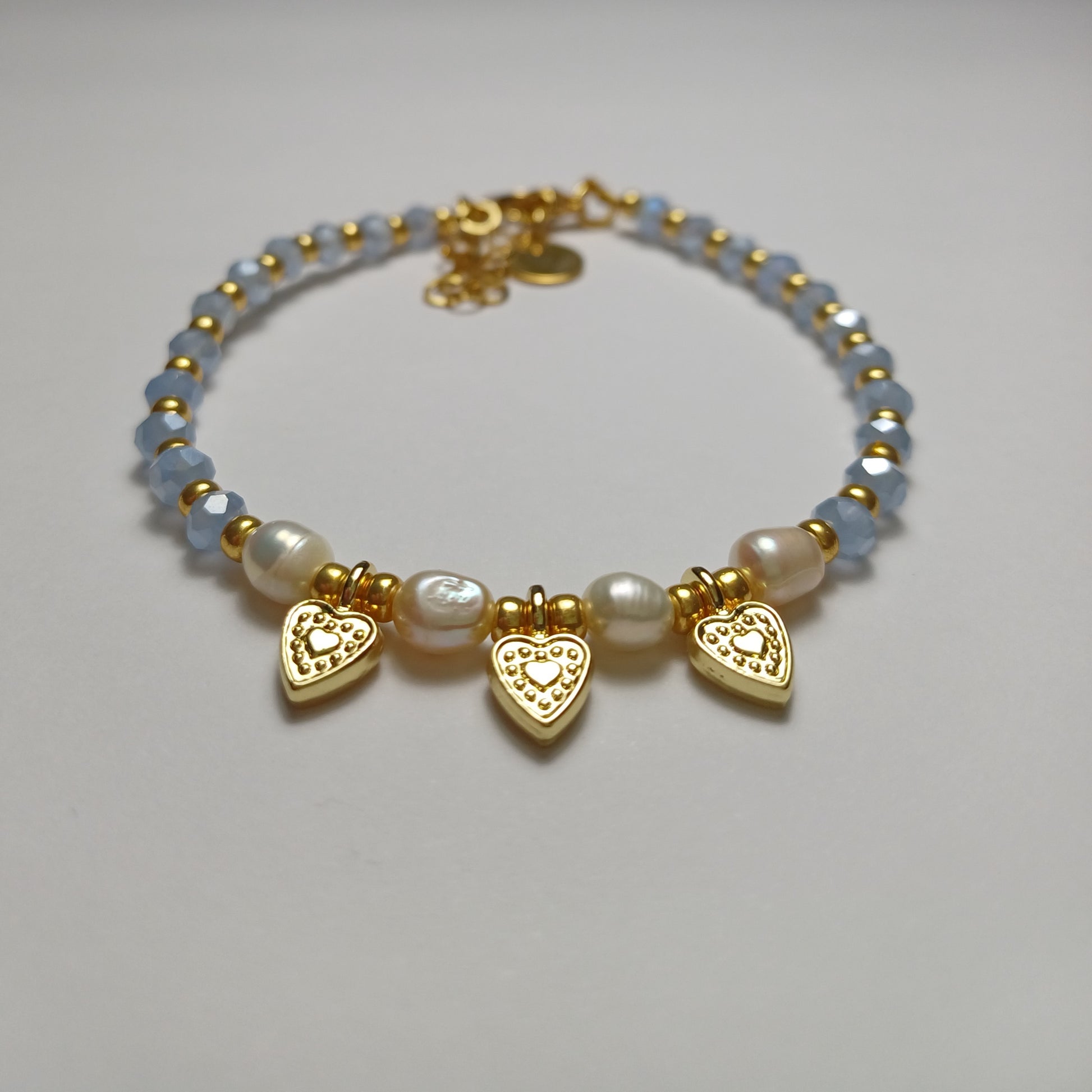Probeer je armbandje van water, parfum, zweet etc uit de buurt te houden. Hij kan hier normaal tegen maar het kan toch altijd zijn dat hij daardoor verkleurd en zo heb je er veel langer plezier van. 😊 (hij is gemaakt van miyuki rocailles(goude), dq bedels en echte zoetwaterparels)