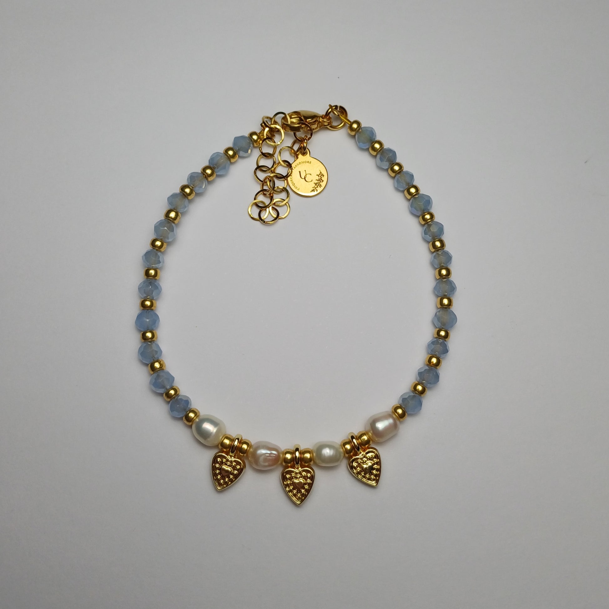 Dit is een handgemaakt kralen armbandje met ijzeren sieraden draad. Ze zijn rvs (roestvrijstaal) afgewerkt waardoor ze niet roesten! Let op! De bedels zijn van dq en kunnen wel verkleuren!