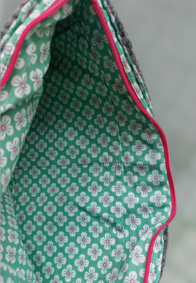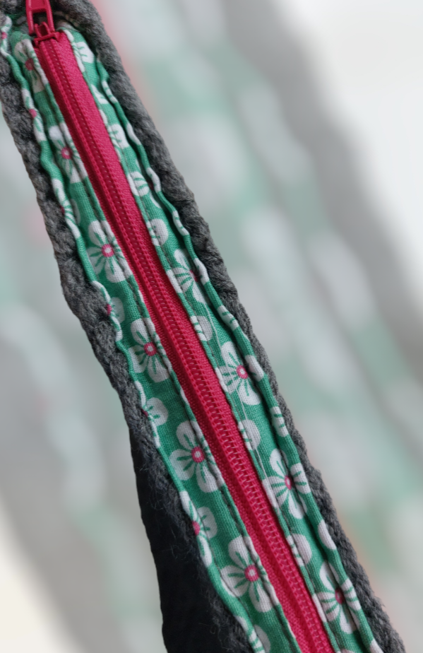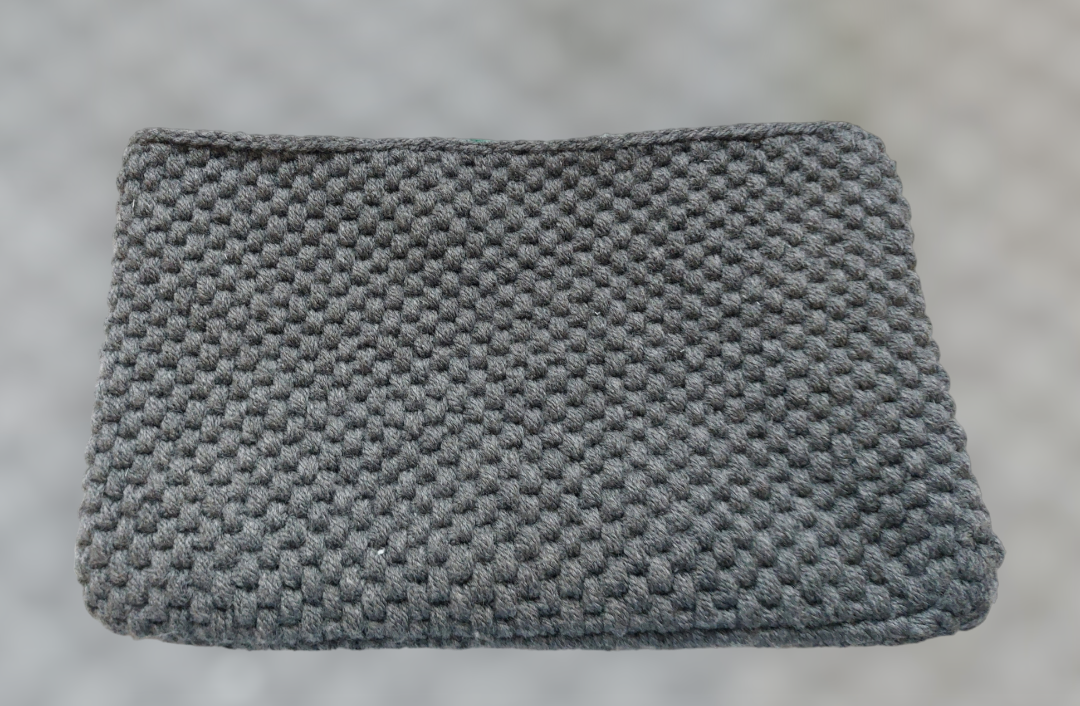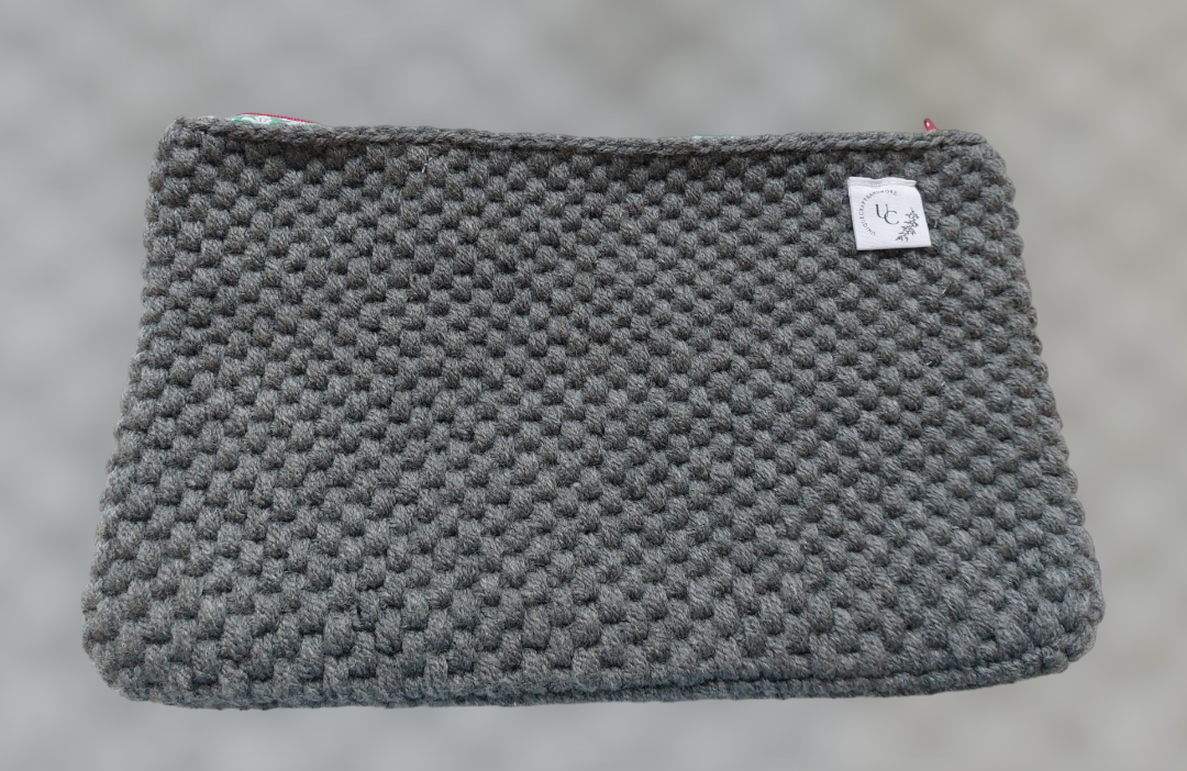 Dit is een handgehaakte etui van grijze wol de binnenkant is handgenaaid ook zitten er 2 zakjes binnen in deze is 31 cm breed en 19 cm hoog 😊