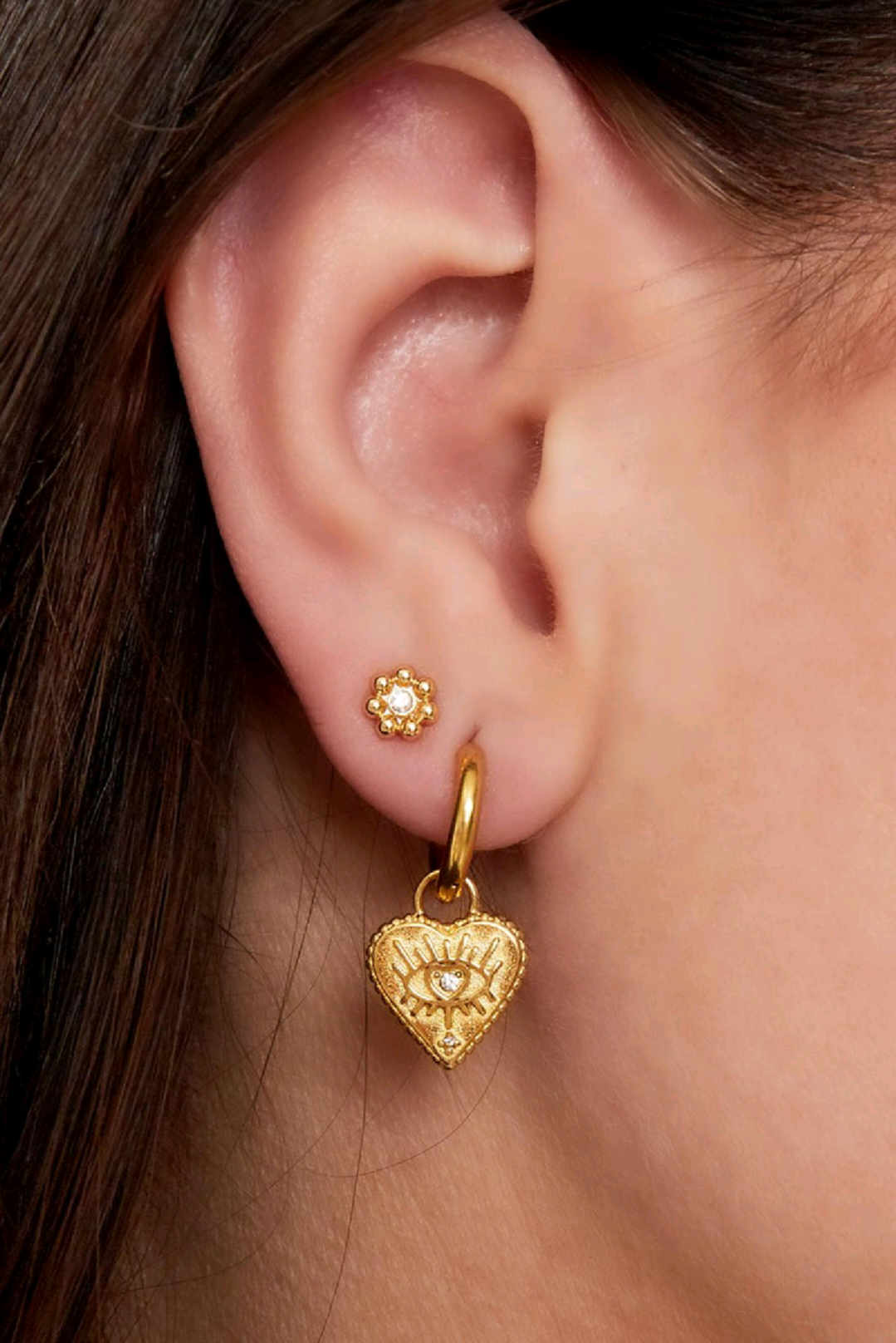 Roestvrijstalen bengelende oorbellen met hartogen en kleine zirkoonstenen.