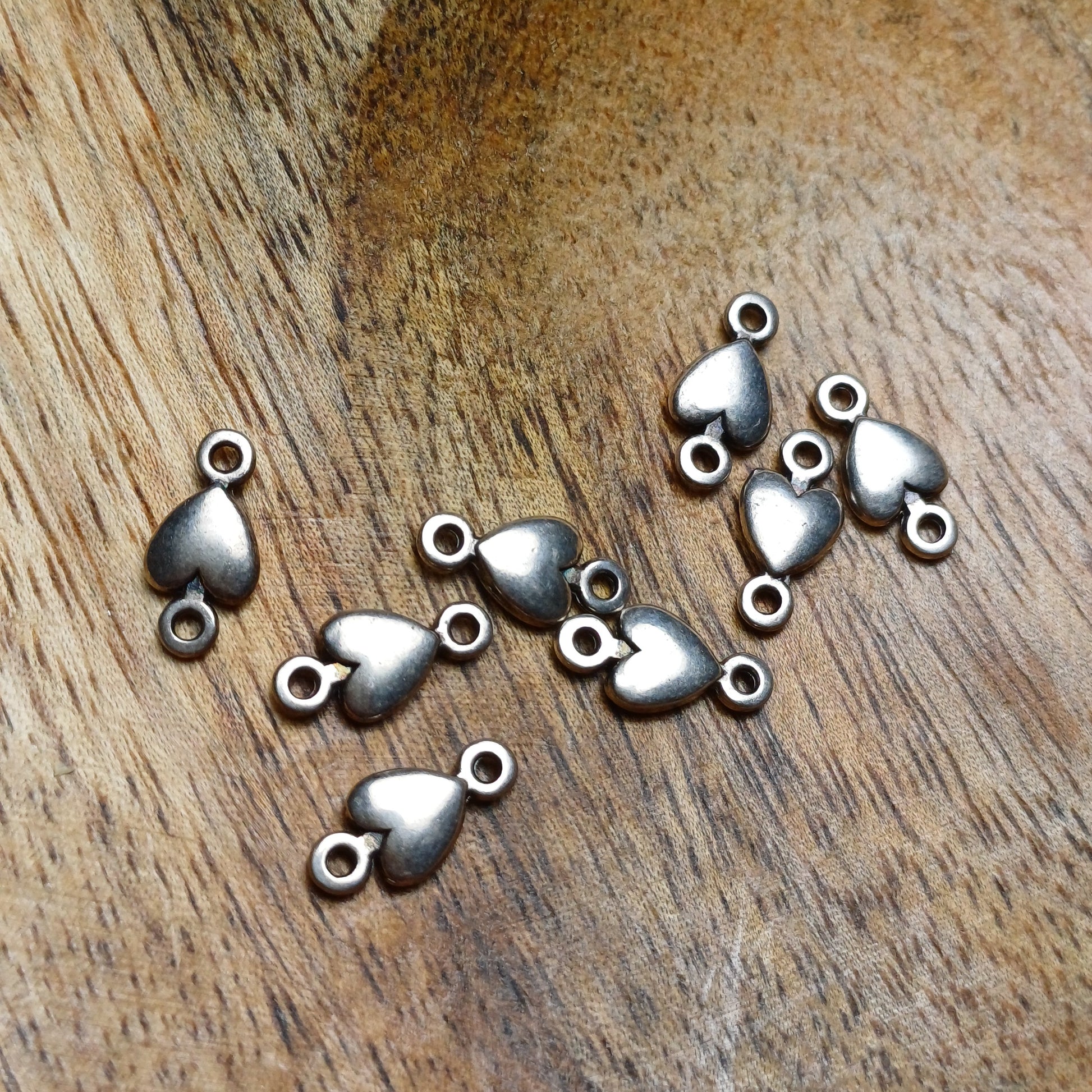 Dit zijn zilver kleurige hartjes bedels ze worden verkocht per 8 stuks