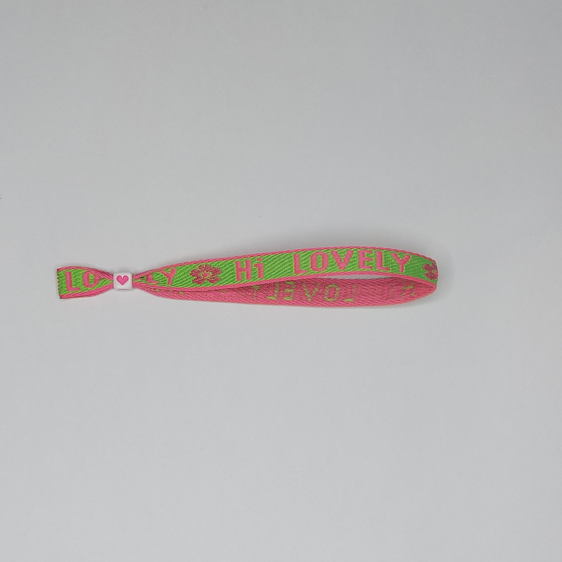 Dit is een stoffen bandjes met een verschuifbaar kraaltje aan zodat het makelijk aan en uit kan en ook voor (bijna) iedereen past. Hou er rekening mee dat de kleur van het hartjes kraaltje anders kan zijn dan op de foto!