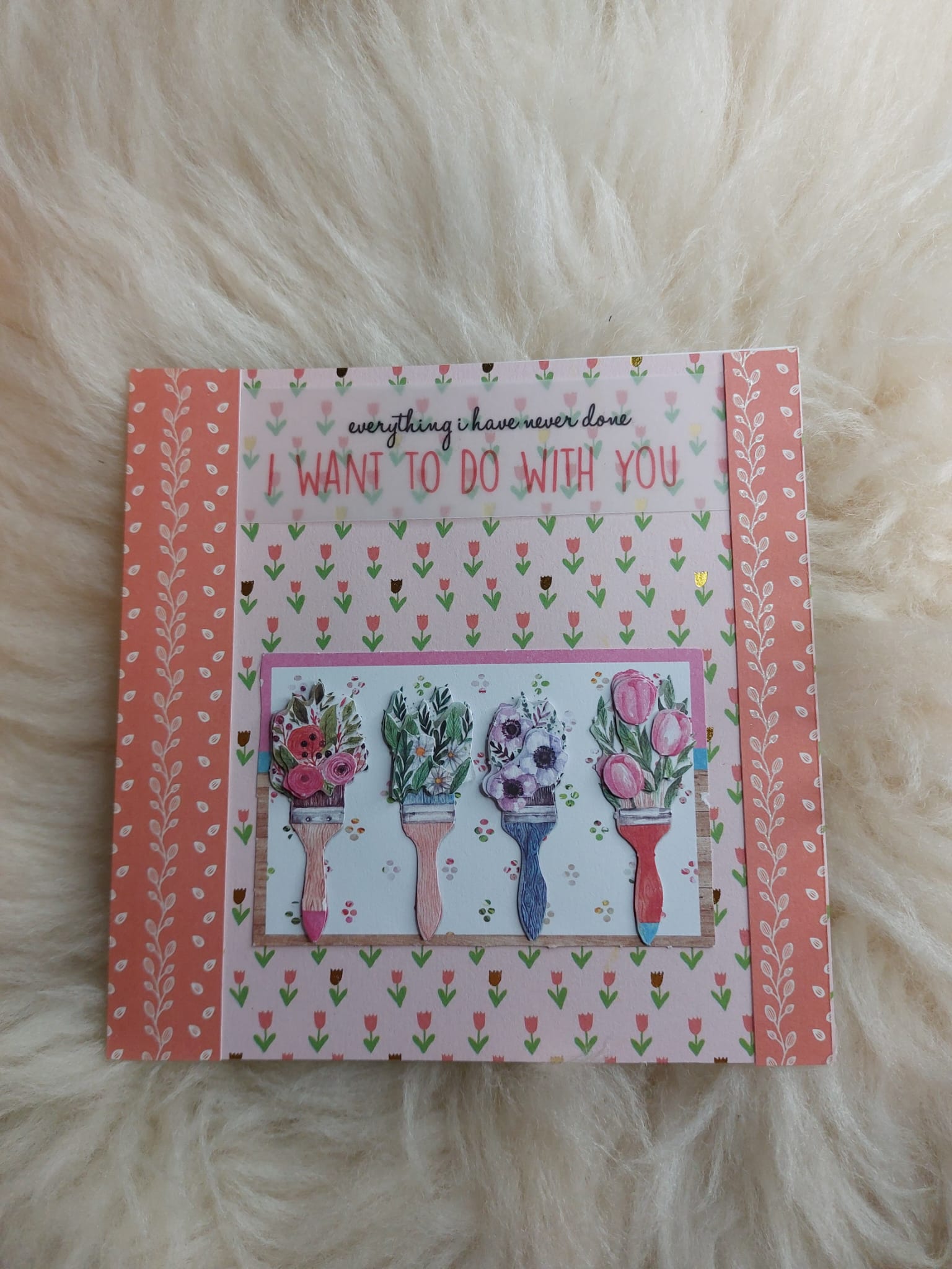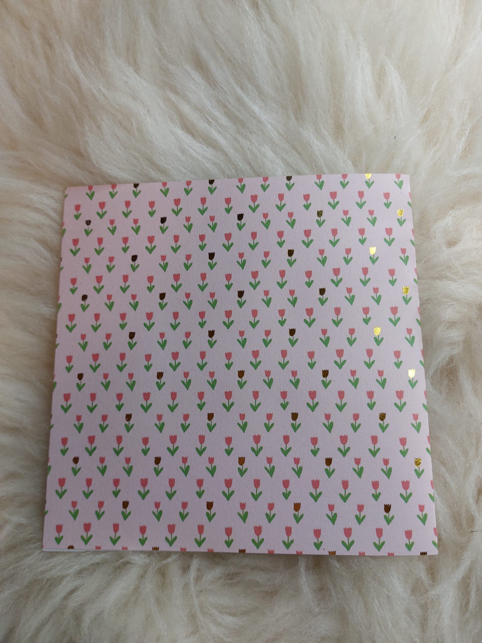Dit is een handgemaakte kaart met de afmetingen 15x15cm. Deze zijn super leuk om te geven of op te sturen naar iemand 😊. Er zit geen envelope bij! Wel zit er een doorzichtig plak zakjes rond om te beschermen🌸