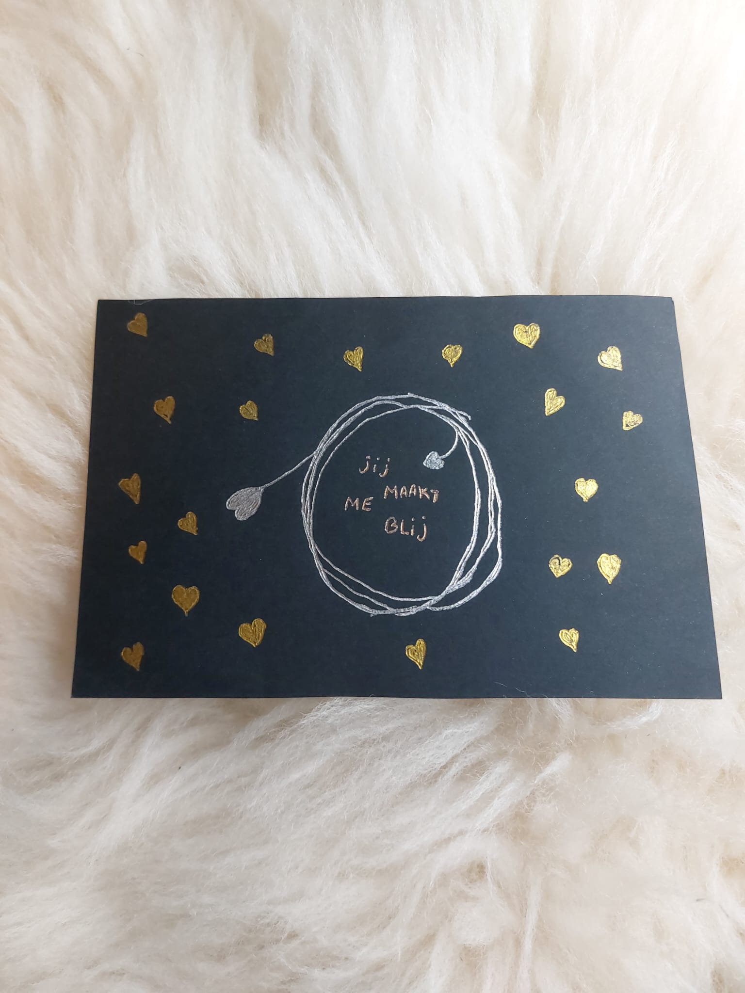Dit is een handgemaakte kaart met de afmetingen 10x15 cm. Deze zijn super leuk om te geven of op te sturen naar iemand 😊. Er zit ook een envelope bij! En er zit een doorzichtig plak zakjes rond om te beschermen🙃