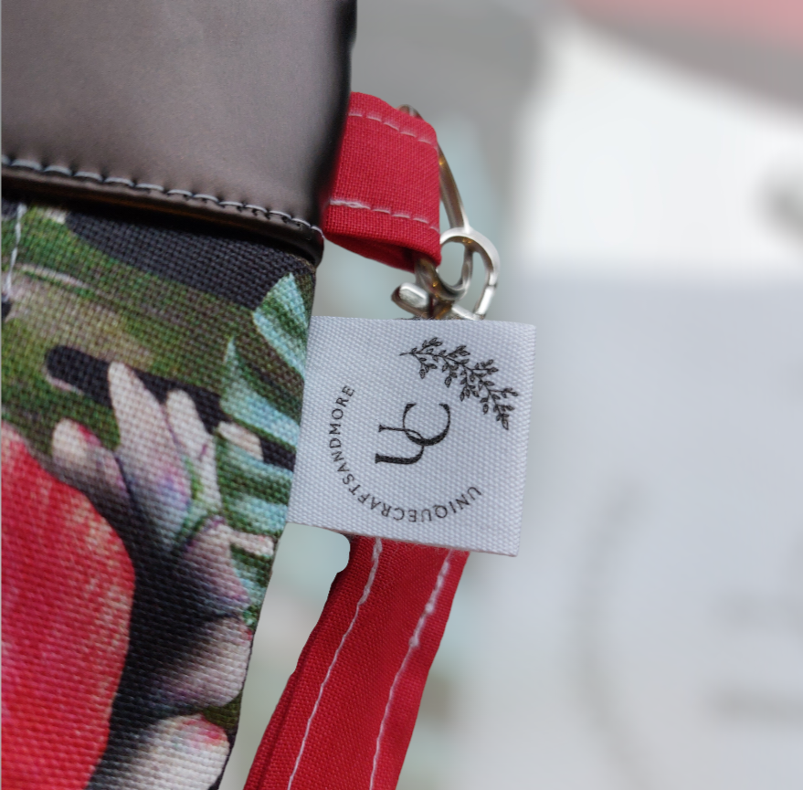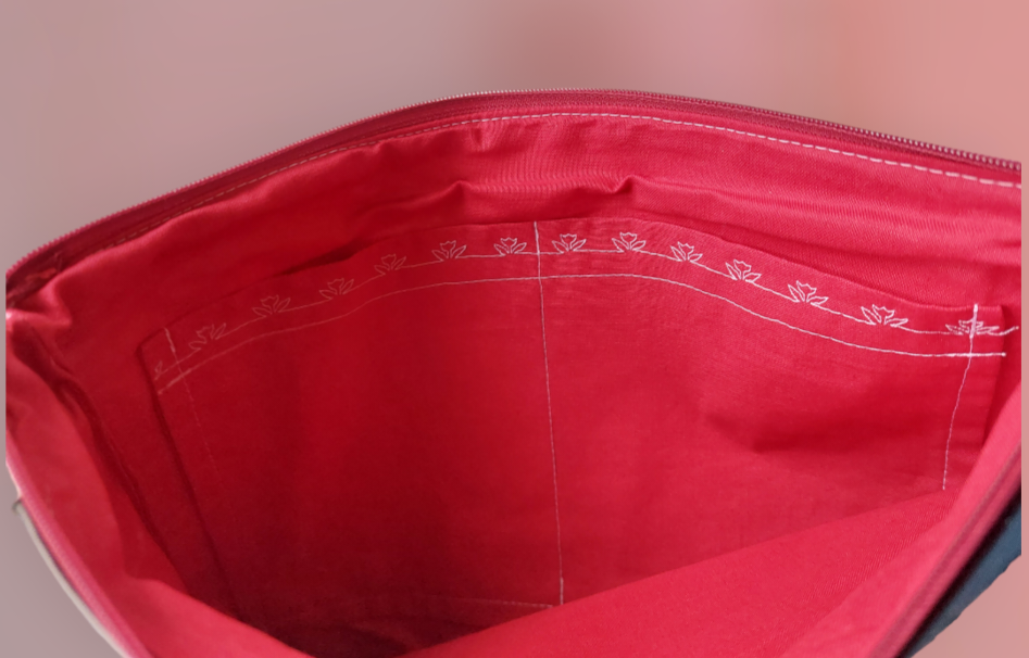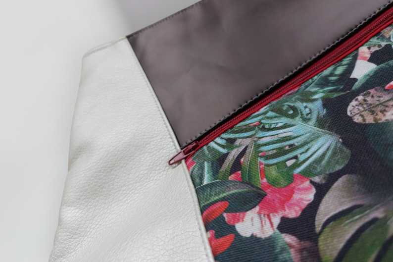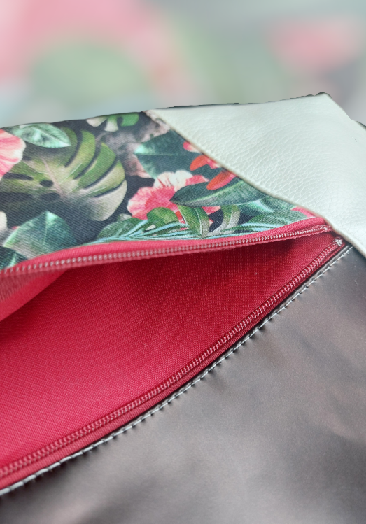 Dit is een handgemaakte tas met handsvat de tas is gemaakt van skai leer en katoen met een leuke print deze heeft ook 1 rits zakje vooraan en binnen in 2 zakjes deze is 31 cm breed en 22 cm hoog 😊