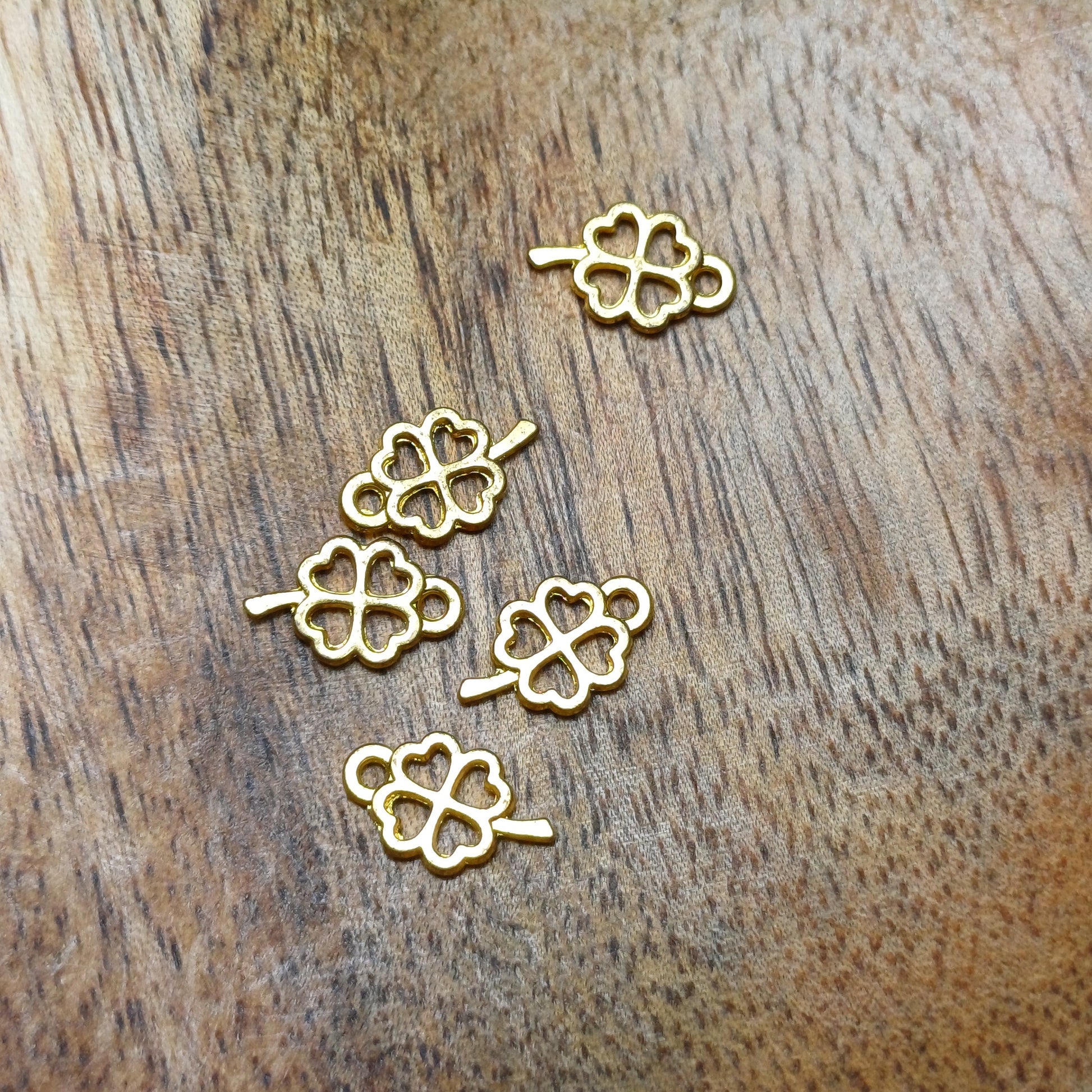 Dit zijn goudkleurige bedels en worden verkocht per 5 stuks.
