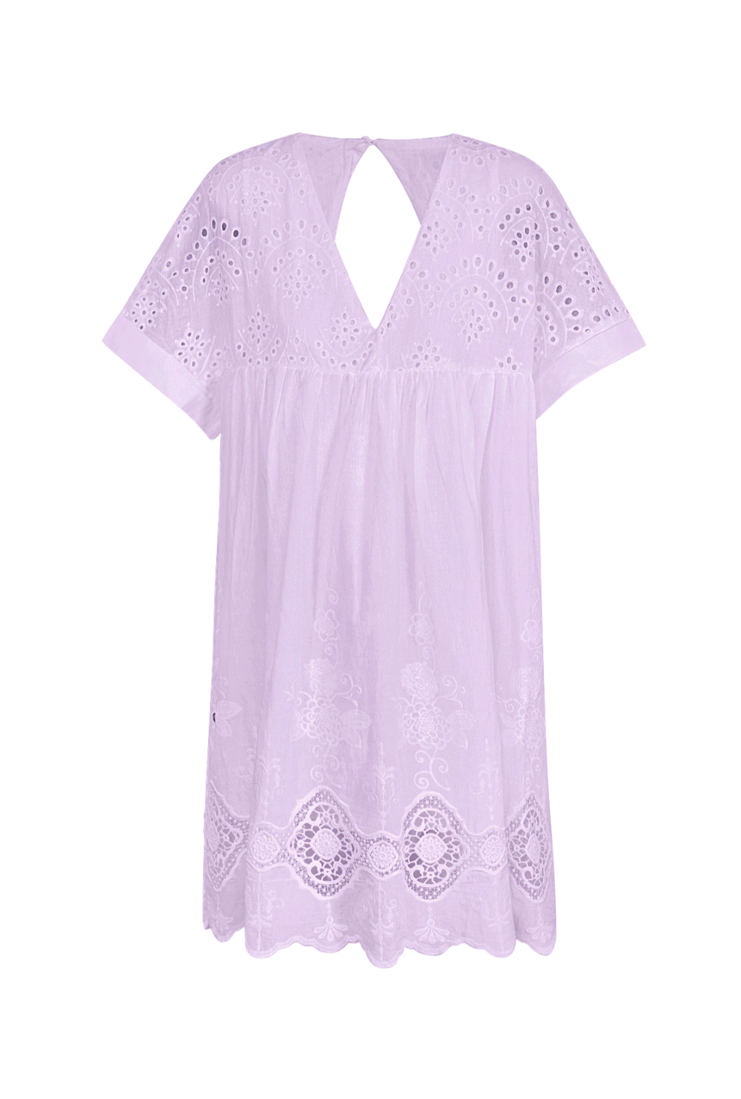 Hoe leuk is deze lila jurk met open rug! De jurk heeft korte mouwen en is daarmee perfect voor dit seizoen. Superleuk om deze jurk te combineren met stoere cowboy boots of een basic sneaker! De jurk is geschikt voor een leuk feestje maar kan ook zeker alledaags gedragen worden. De jurk is gemaakt van 100% katoen. Hij heeft een ondervoering zodat hij niet doorschijnend de ondervoering heeft onderaan een broekje 😊