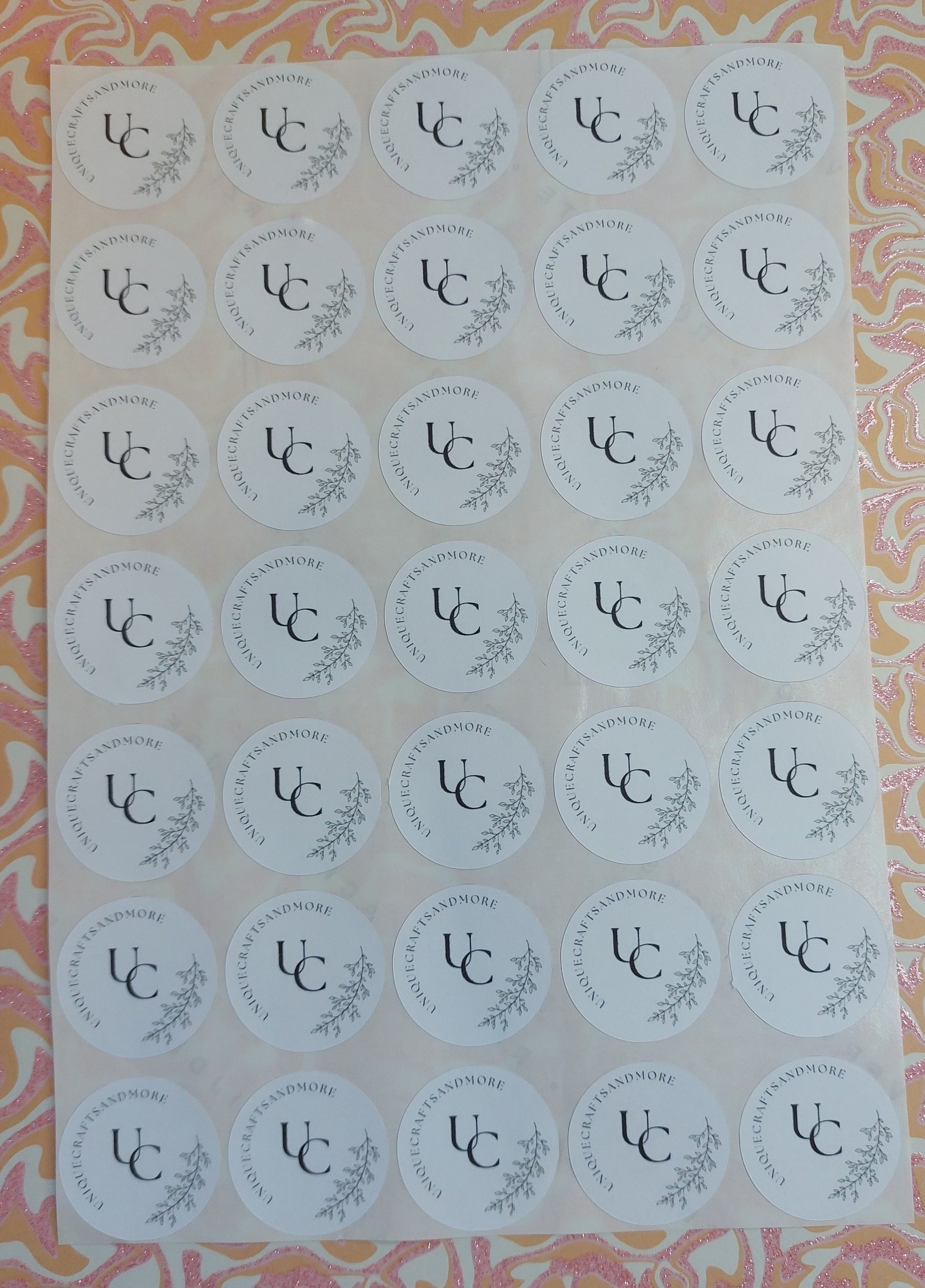 Dit zijn handgemaakte (logo)stickers. ( op de foto's kan je voorbeelden zien van een paar die ik al heb gemaakt )Deze zijn 3cm en zitten 35 op 1 vel en je kan ze zelf samenstellen met je eigenlijk hoe gaaf?😍 als je deze besteld kan je je logo doorsturen via instagram,Facebook of mail 😊 hou er rekening mee dat ze soms door 4 worden geknipt de vellen ivm verzending 🤗
