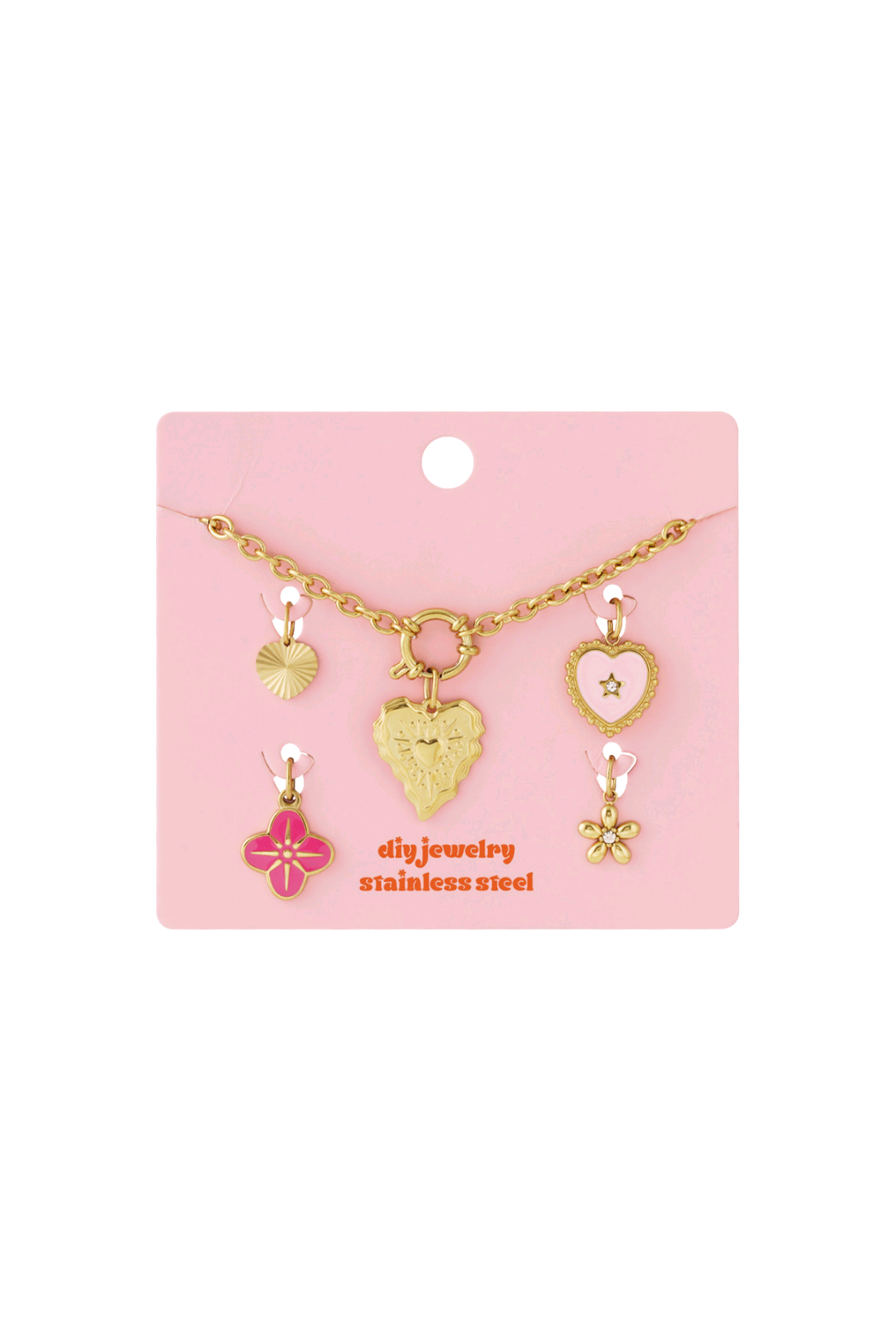 Vrolijke ketting met bedels! Het leuke aan deze ketting is dat je de bedels zelf kan hangen naar keuzen hoe jij ze leuk vind!