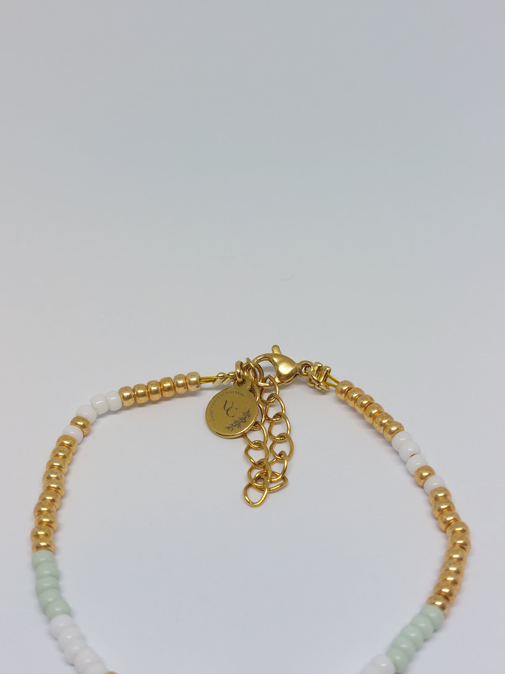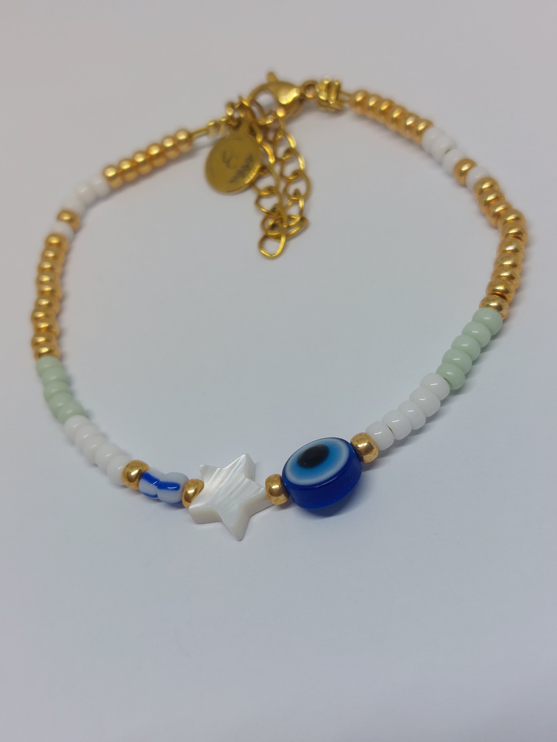 Probeer je armbandje van water, parfum, zweet etc uit de buurt te houden. Hij kan hier normaal tegen maar het kan toch altijd zijn dat hij daardoor verkleurd en zo heb je er veel langer plezier van. 😊 (hij is gemaakt van miyuki rocailles)