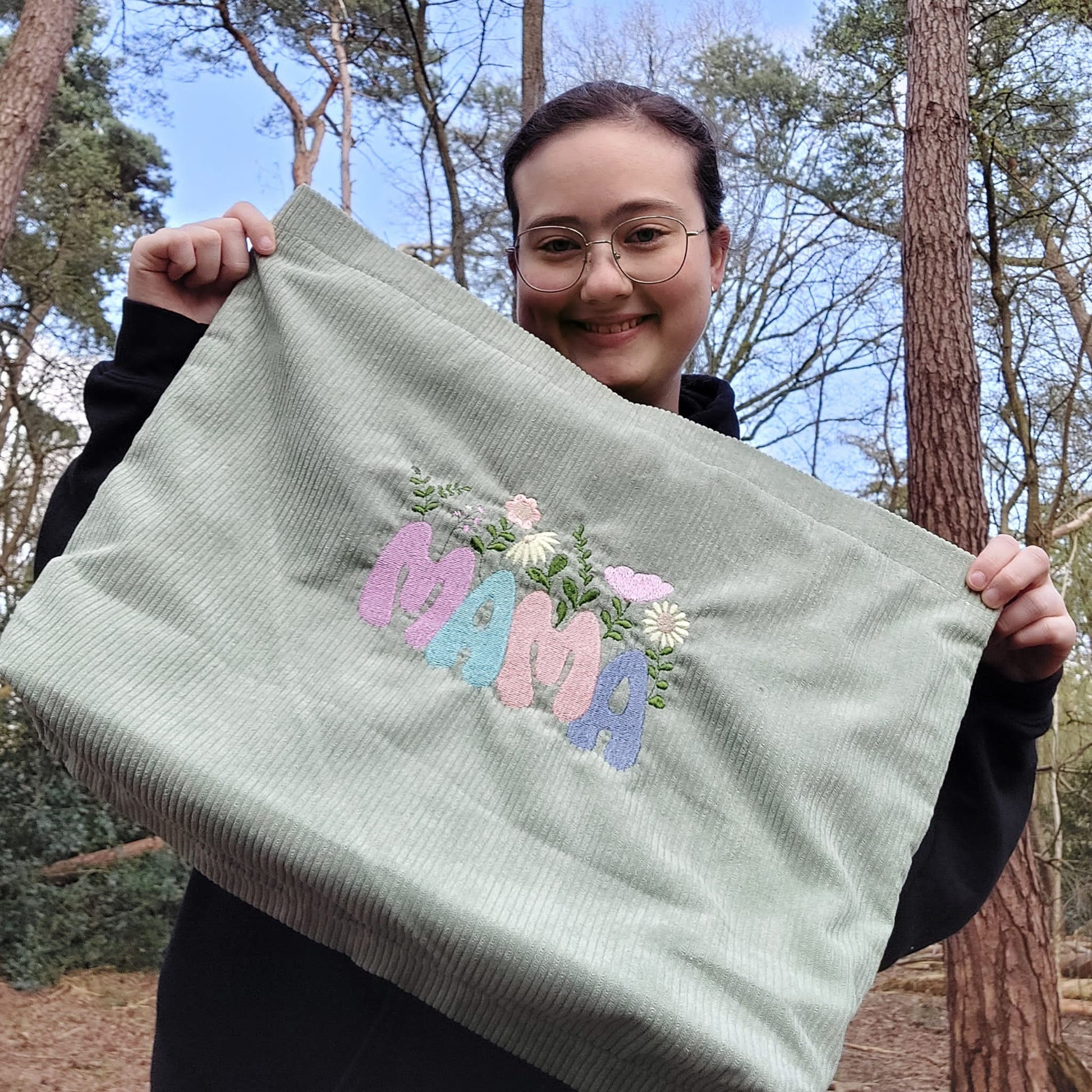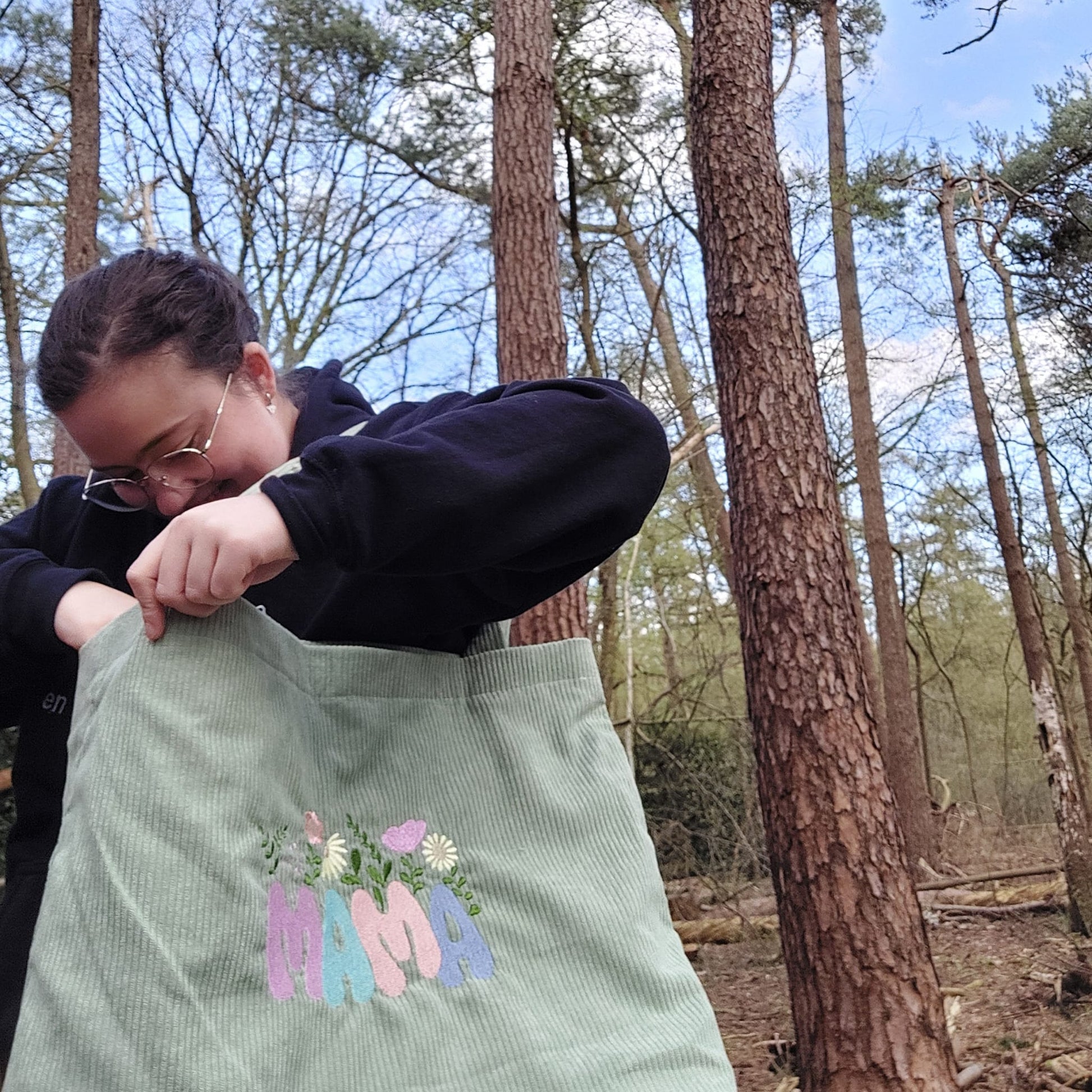 Deze handgemaakte mama shopper heeft een handig formaat waardoor je er veel in kan opbergen. Hij heeft ook 2 grote handvaten waardoor je hem ook gemakkelijk aan de kinderwagen kan hangen of over je schouder.