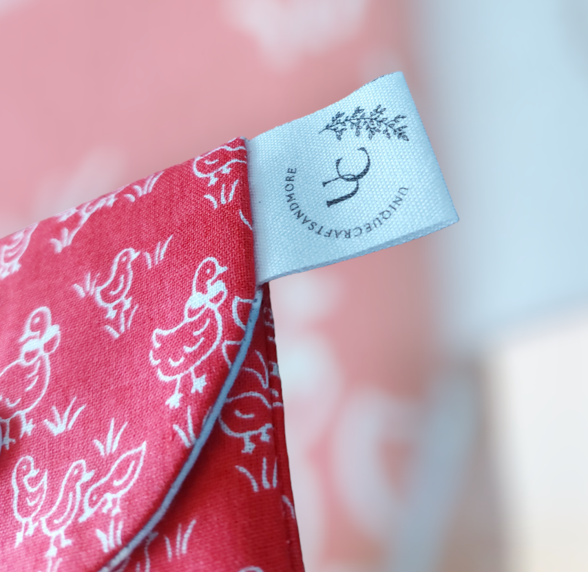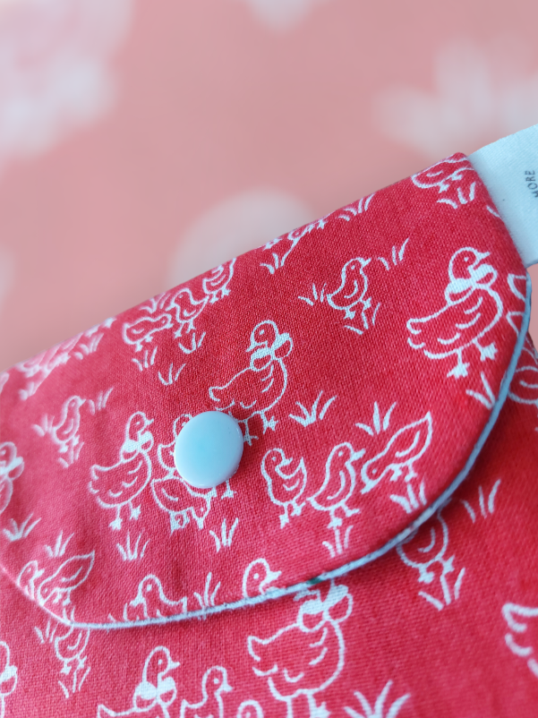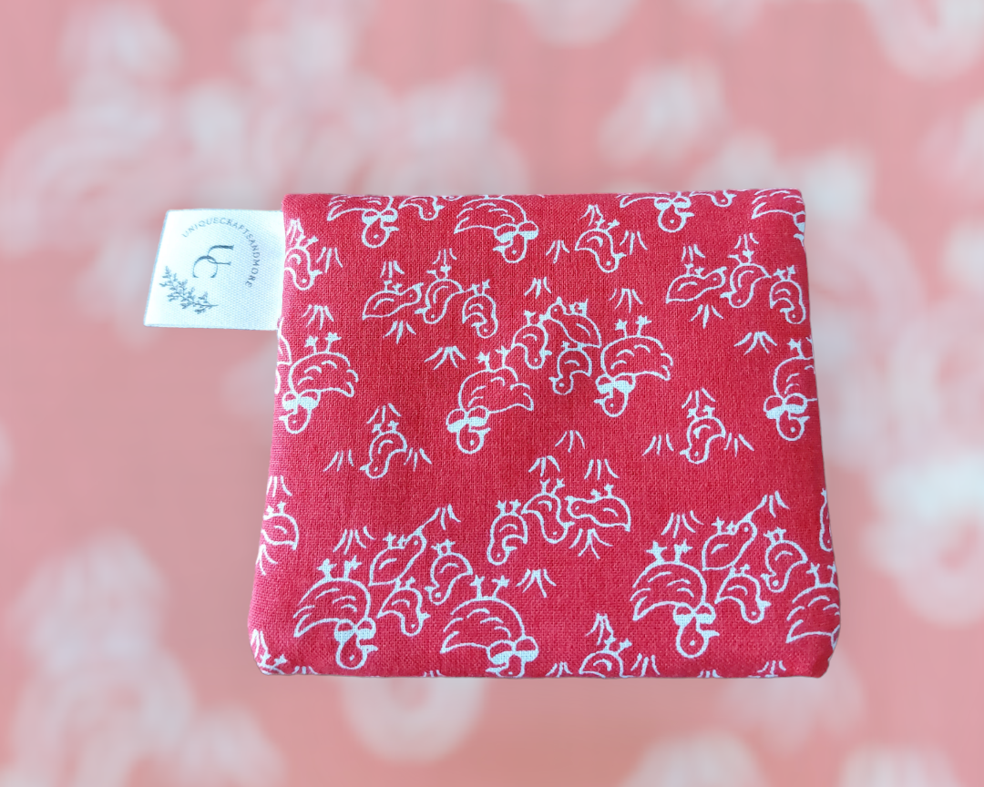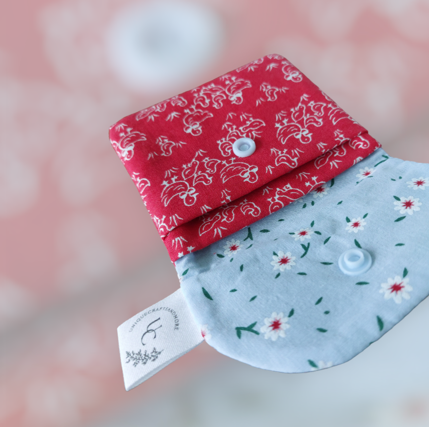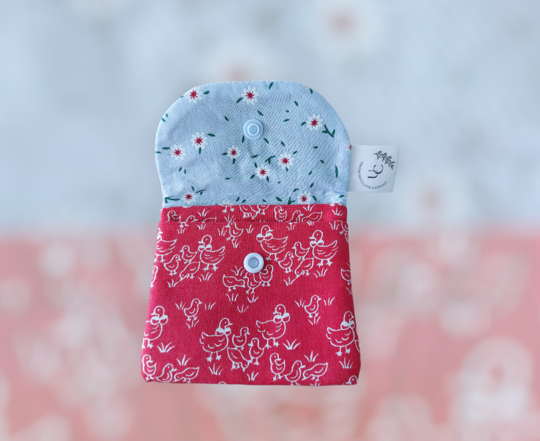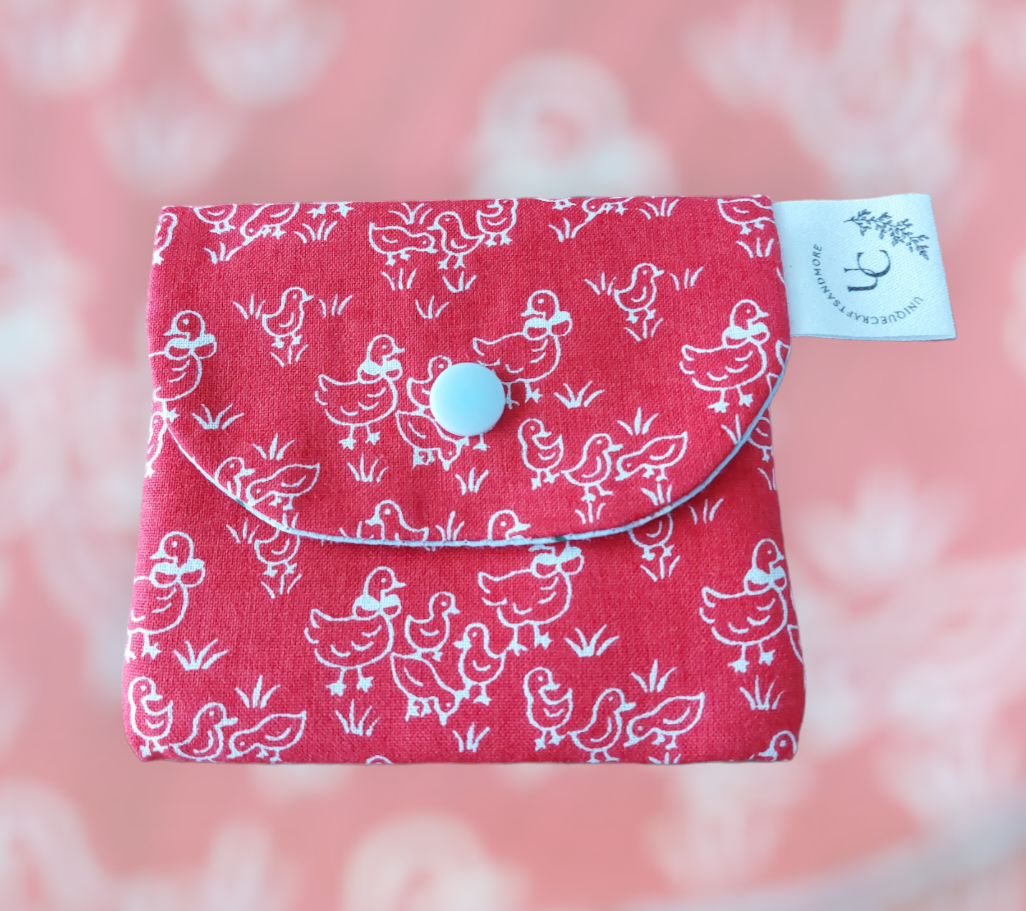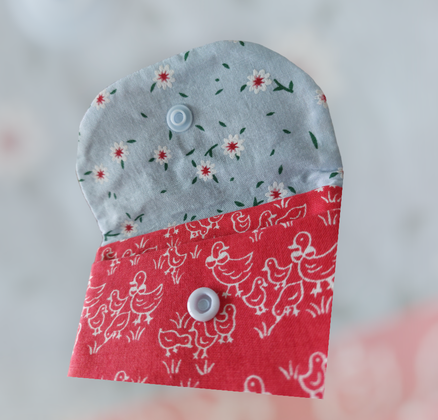 Dit is een handgemaakte portefeuille met een leuke print😊 hij is 11 cm breed en 10 cm hoog.