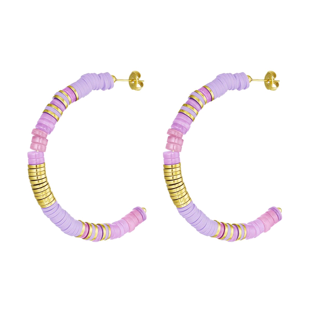 Prachtige zomerse oorringen met veel steentjes in de kleur lila! Deze oorbellen zijn perfect voor de zomer en kun je dragen naar een leuk strandfeestje. Met deze leuke oorbellen steel jij de show! Houd jij meer van een casual look? Combineer deze oorbellen dan met gouden sieraden. Ben jij meer van het dragen van een statement look? Combineer dan oorbellen happy steentjes met meerdere kleurrijke sieraden. De oorbellen zijn gemaakt van polymeerklei, hematiet, zeeschelp en stainless steel. De oorbellen hebben een afmeting van 5 cm.