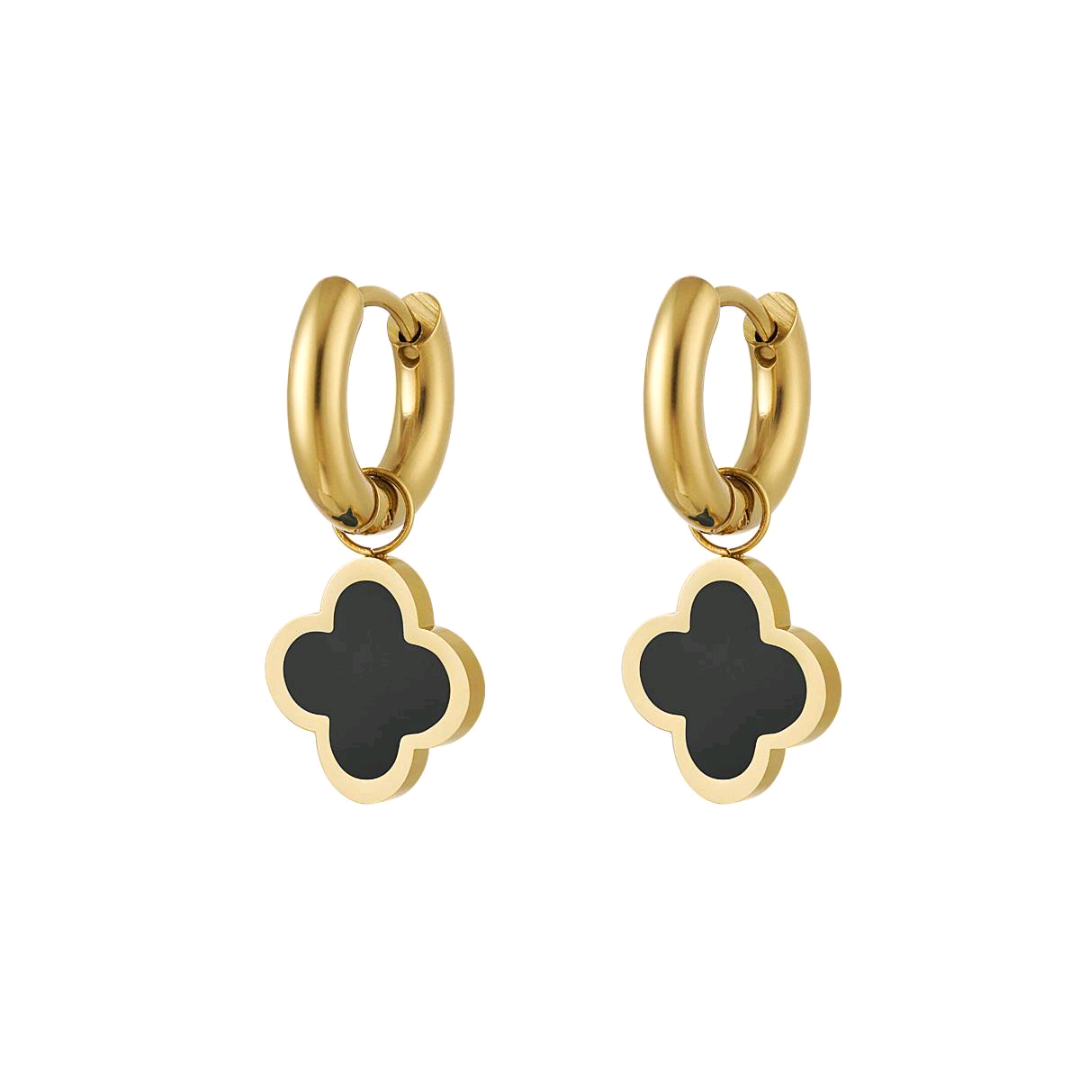 Maak jou collectie helemaal compleet met deze prachtige oorbellen met klaver bedel in de kleur goud met zwart. Deze oorbellen zijn gemaakt van stainless steel en enamel en hebben een afmeting van 2,7 cm. Superleuk om deze oorbellen te combineren met meerdere gouden oorbellen en creëer jouw eigen ear party!
