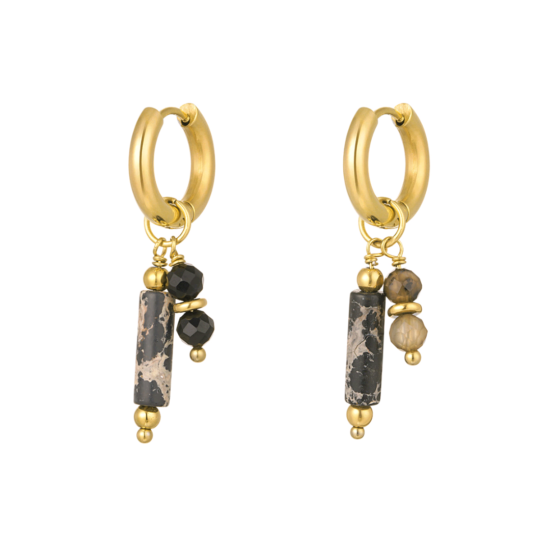 Hoe leuk zijn deze gemêleerde oorbellen met bedels? Een echte toevoeging aan jouw ear party. De oorbel is gemaakt van stainless steel, steen en hermatite. De afmetingen zijn 1.6 bij 4 centimeter. De oorbel is verkrijgbaar in meerdere kleuren.