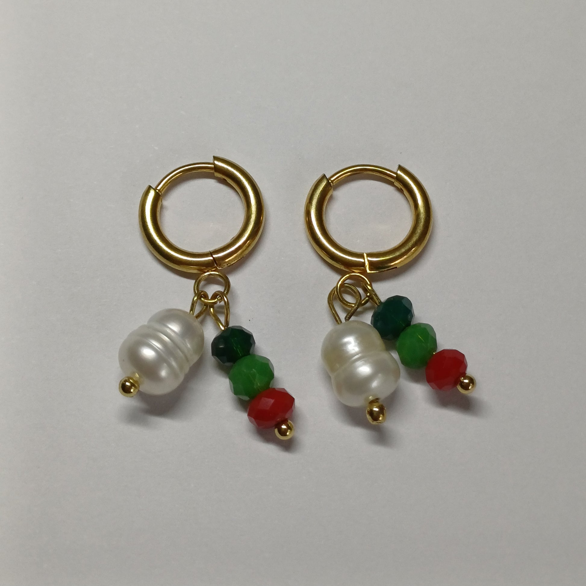 Probeer je oorbellen van water, parfum, zweet etc uit de buurt te houden hij kan hier normaal tegen maar het kan toch altijd zijn dat hij daardoor verkleurd en zo heb je er veel langer plezier van als hij niet verkleurd 😊 (ze zijn gemaakt van: zoetwater parels & plastice kralen)
