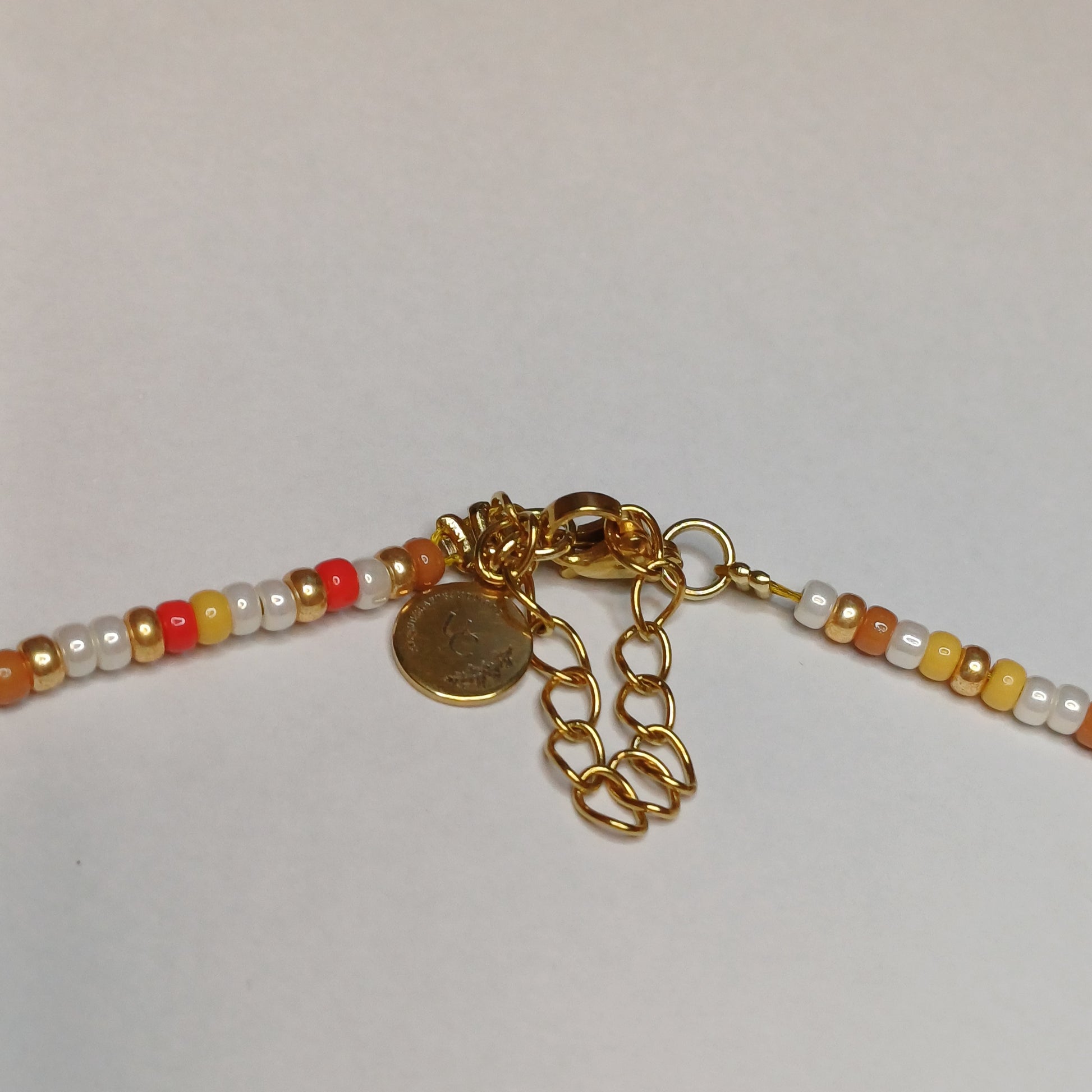 Probeer je ketting van water, parfum, zweet etc uit de buurt te houden. Hij kan hier normaal tegen maar het kan toch altijd zijn dat hij daardoor verkleurd en zo heb je er veel langer plezier van. 😊 (hij is gemaakt van miyuki rocailles)