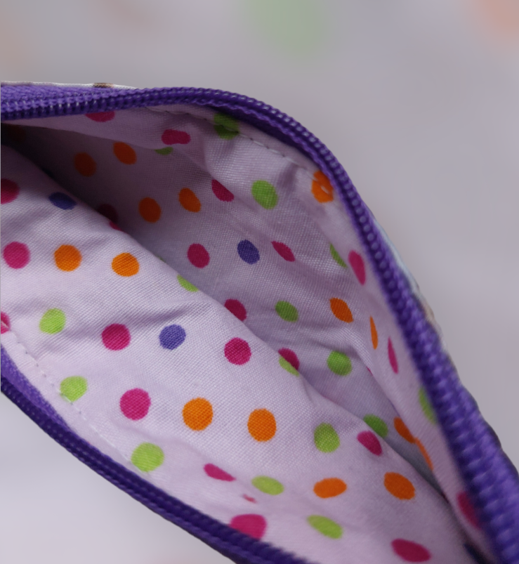 Dit is een handgemaakte etui met een leuke print de onderkant is gemaakt van skai leer deze is 15 cm breed en 17 cm hoog 😊