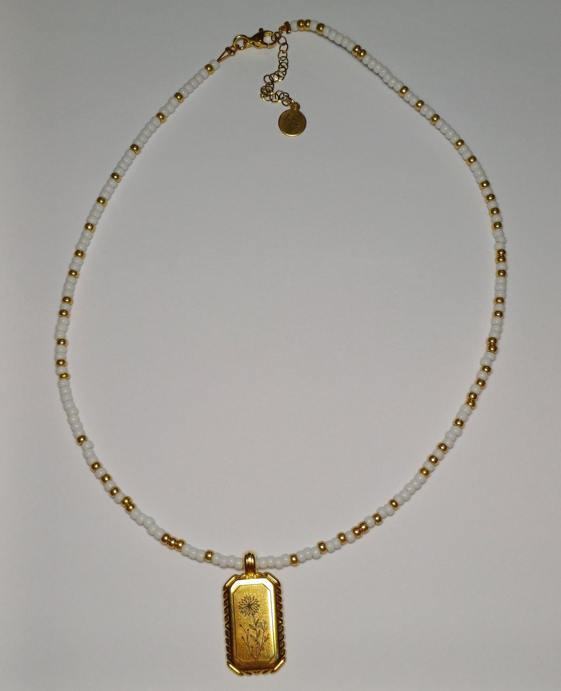Probeer de ketting zo veel mogelijk uit de buurt te houden van water, parfum , zweet etc. Normaal kan deze er tegen maar het kan altijd gebeuren dat dit een beetje verkleurd en zo heb je er langer plezier van 😊 (is gemaakt van miyuki rocailles en een dq bedel)