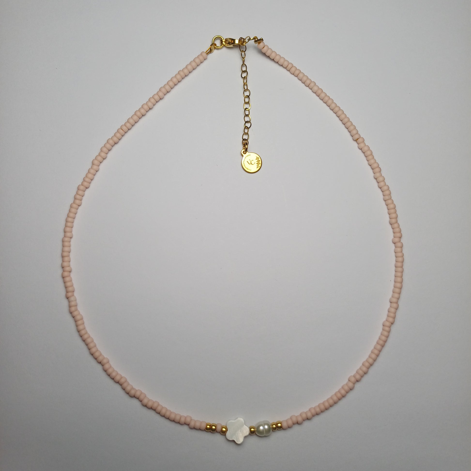 Probeer de ketting zo veel mogelijk uit de buurt te houden van water, parfum , zweet etc . Normaal kan deze er tegen maar het kan altijd gebeuren dat dit een beetje verkleurd en zo heb je er langer plezier van 😊 (is gemaakt van miyuki rocailles , zoetwater parel en een schelp kraaltje )