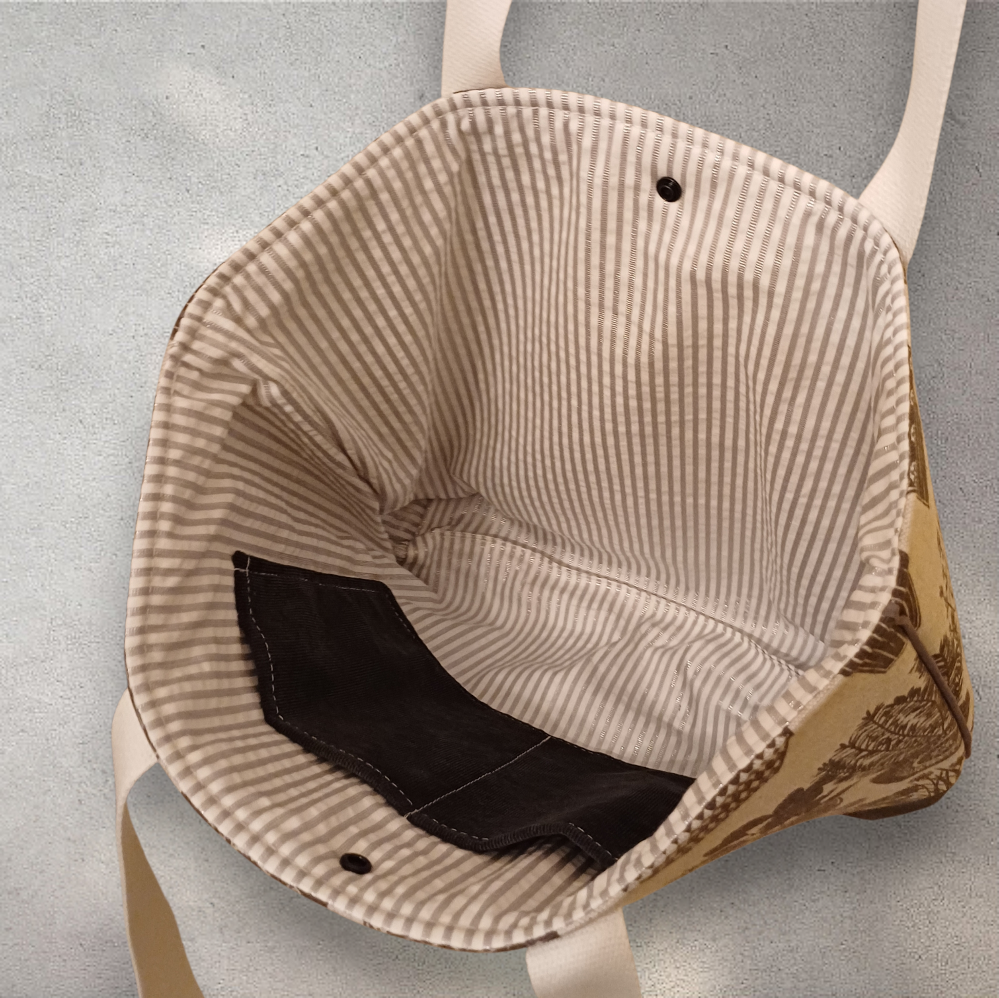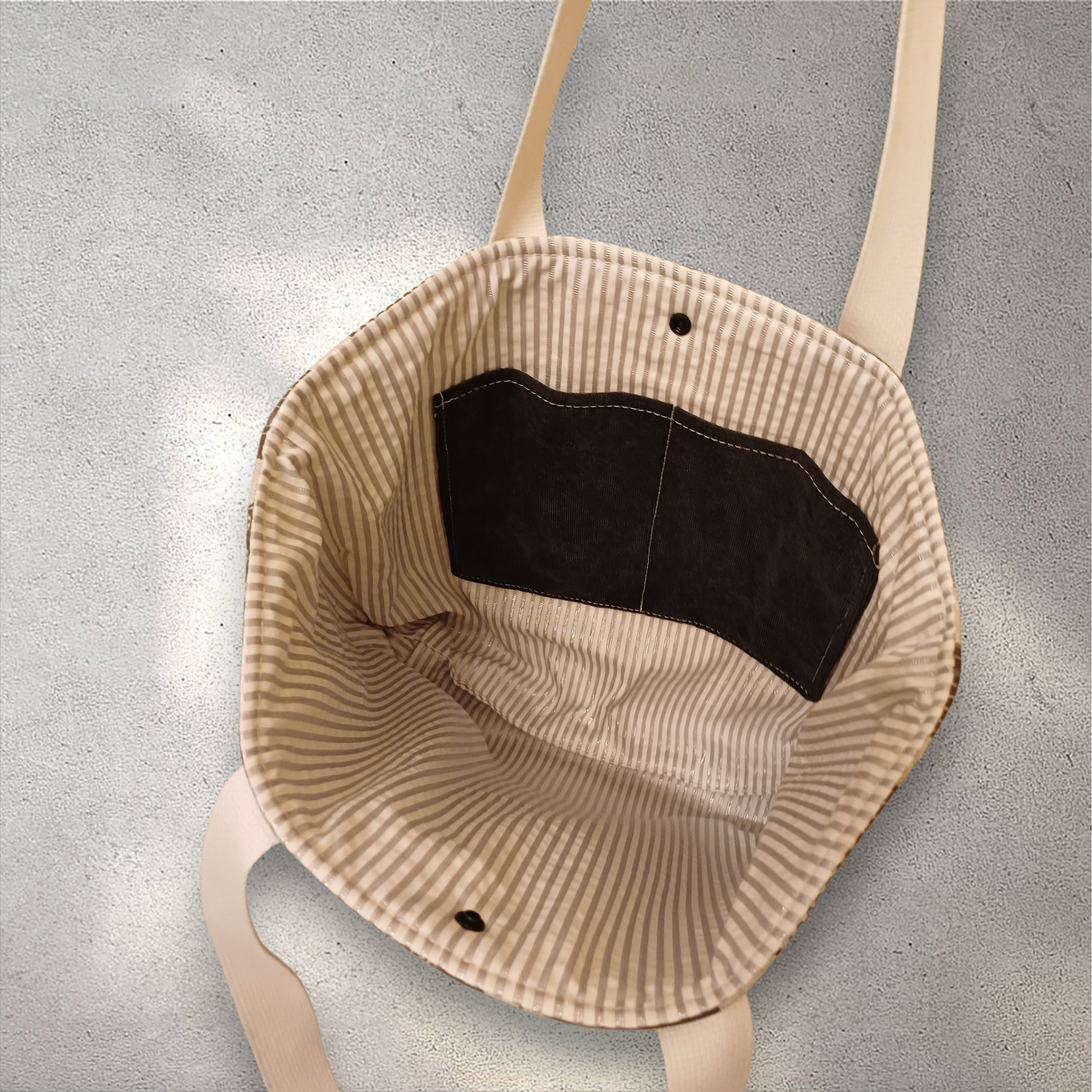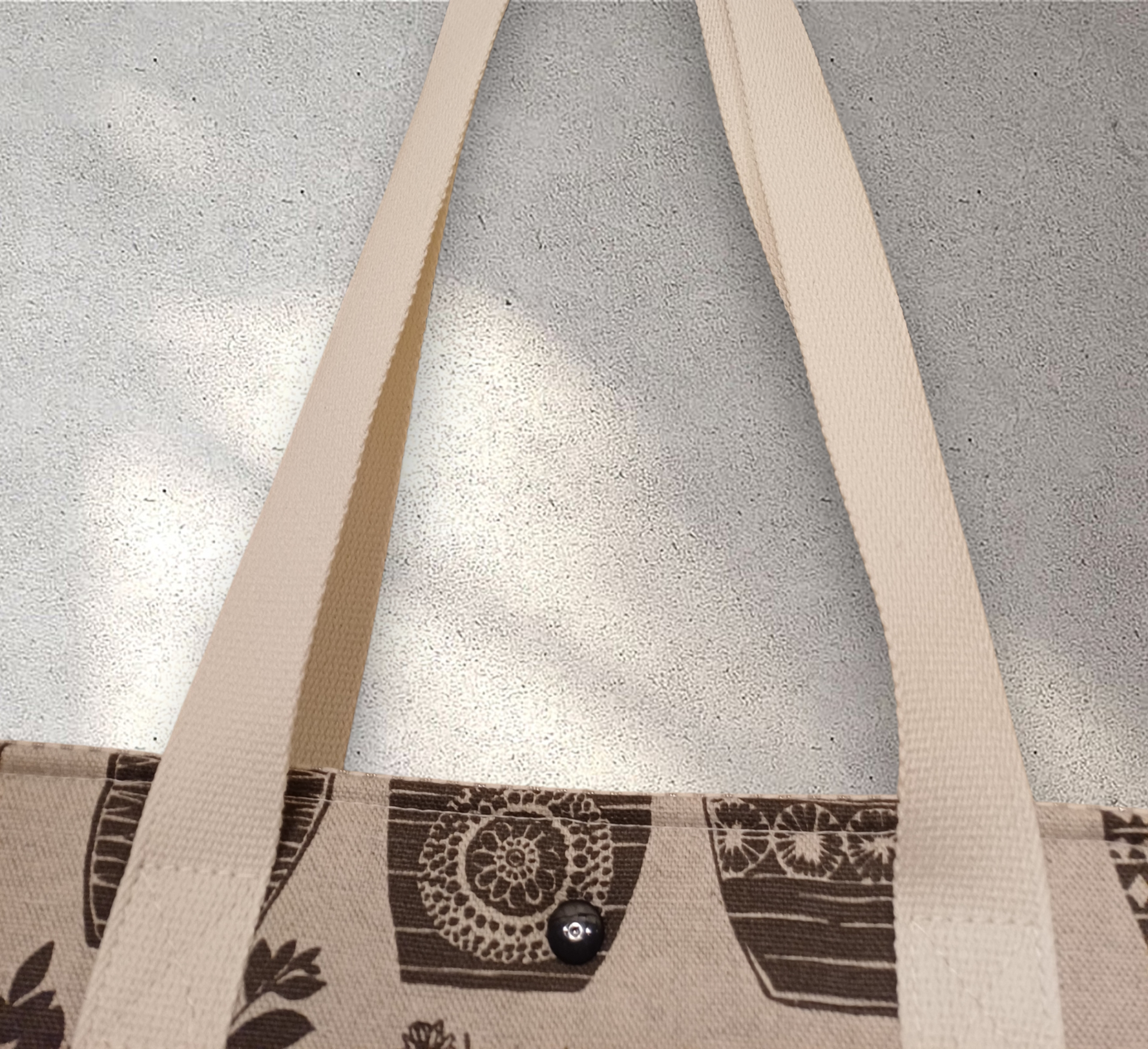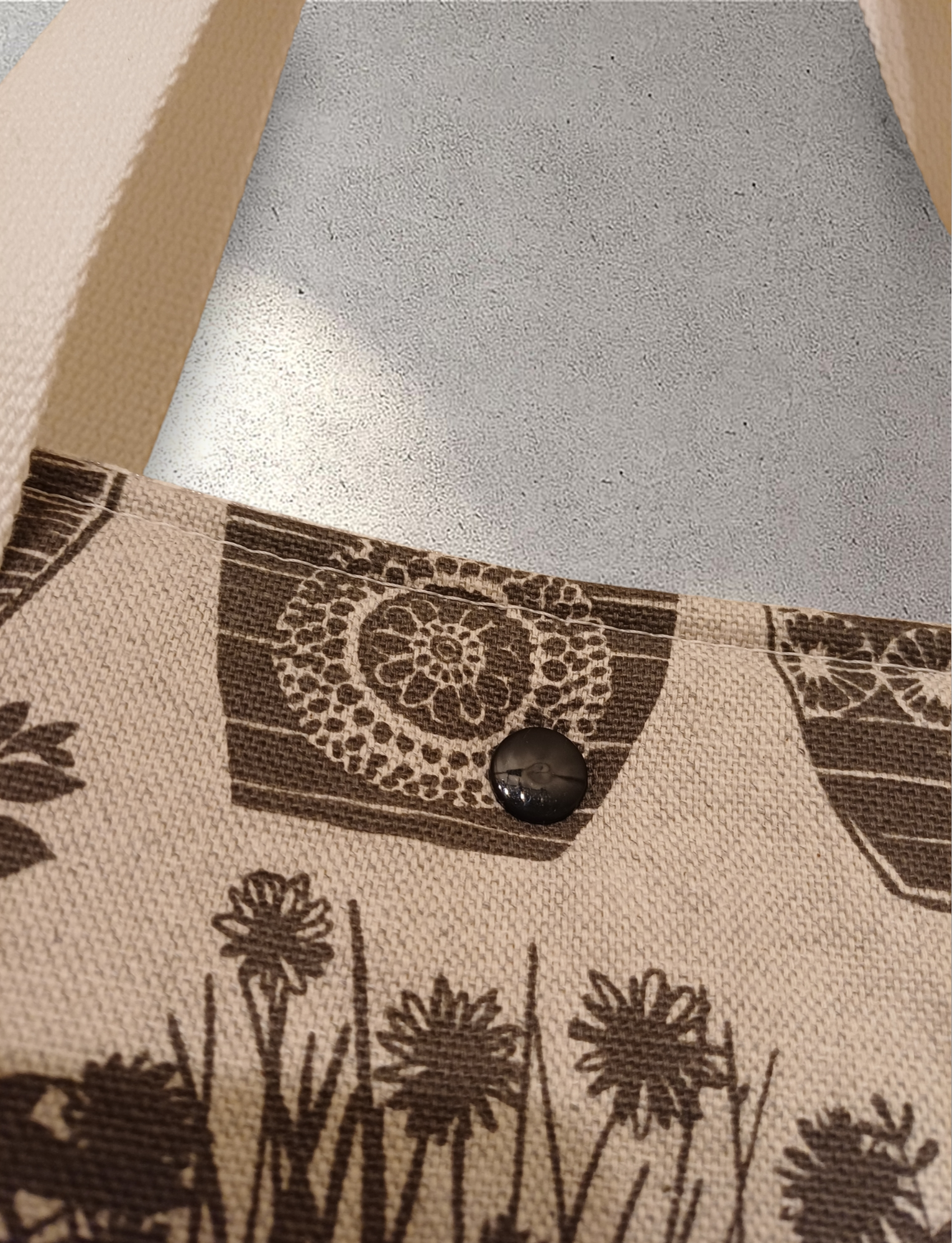 Deze handgemaakte tas heeft een handig formaat waardoor je er veel in kan opbergen. Een drukknopje voorkomt dat je spullen eruit vallen.