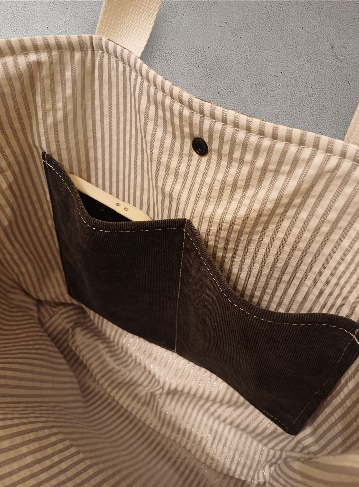 Vanbinnen vindt je 2 zakjes. Hier past bijvoorbeeld een gsm in.