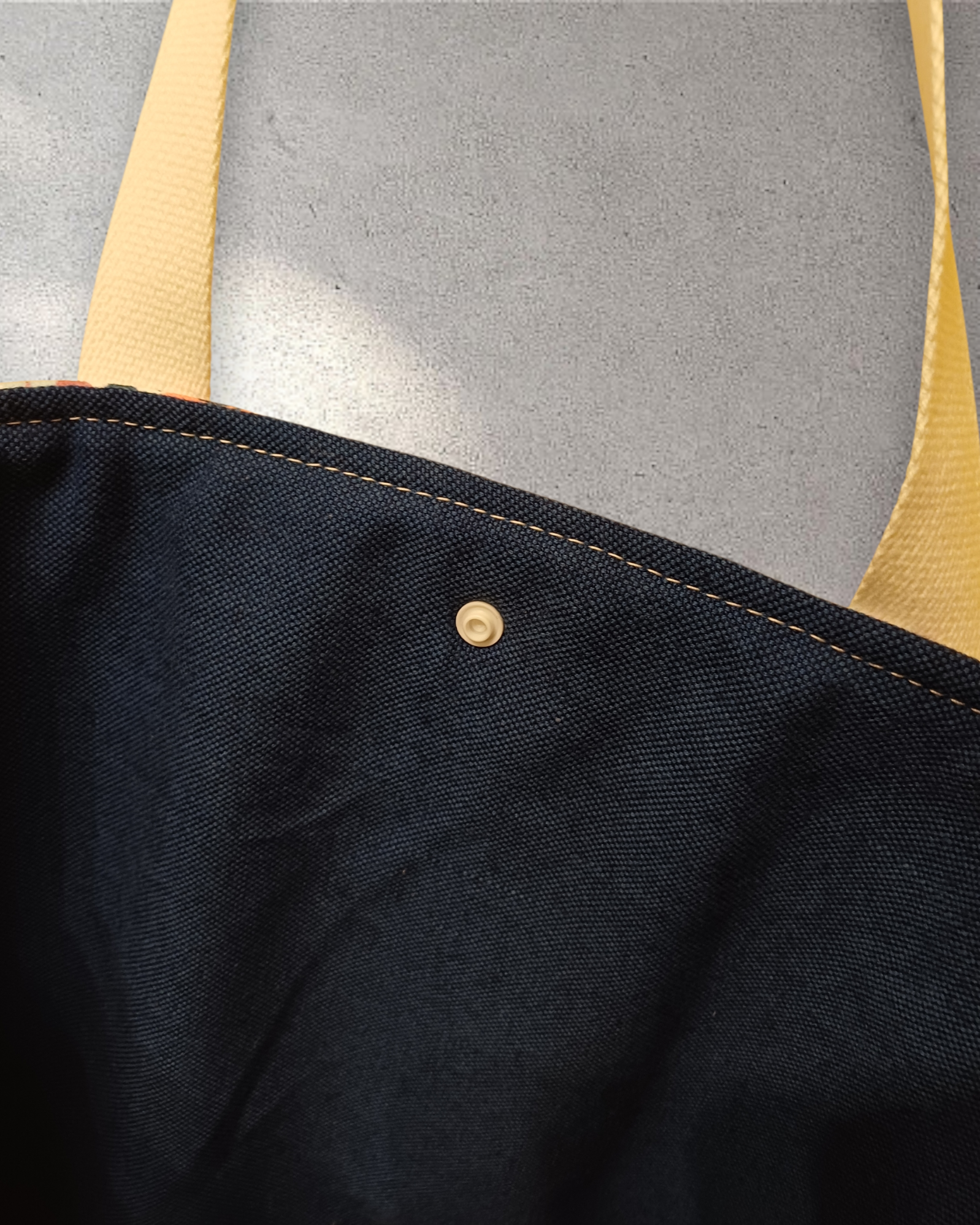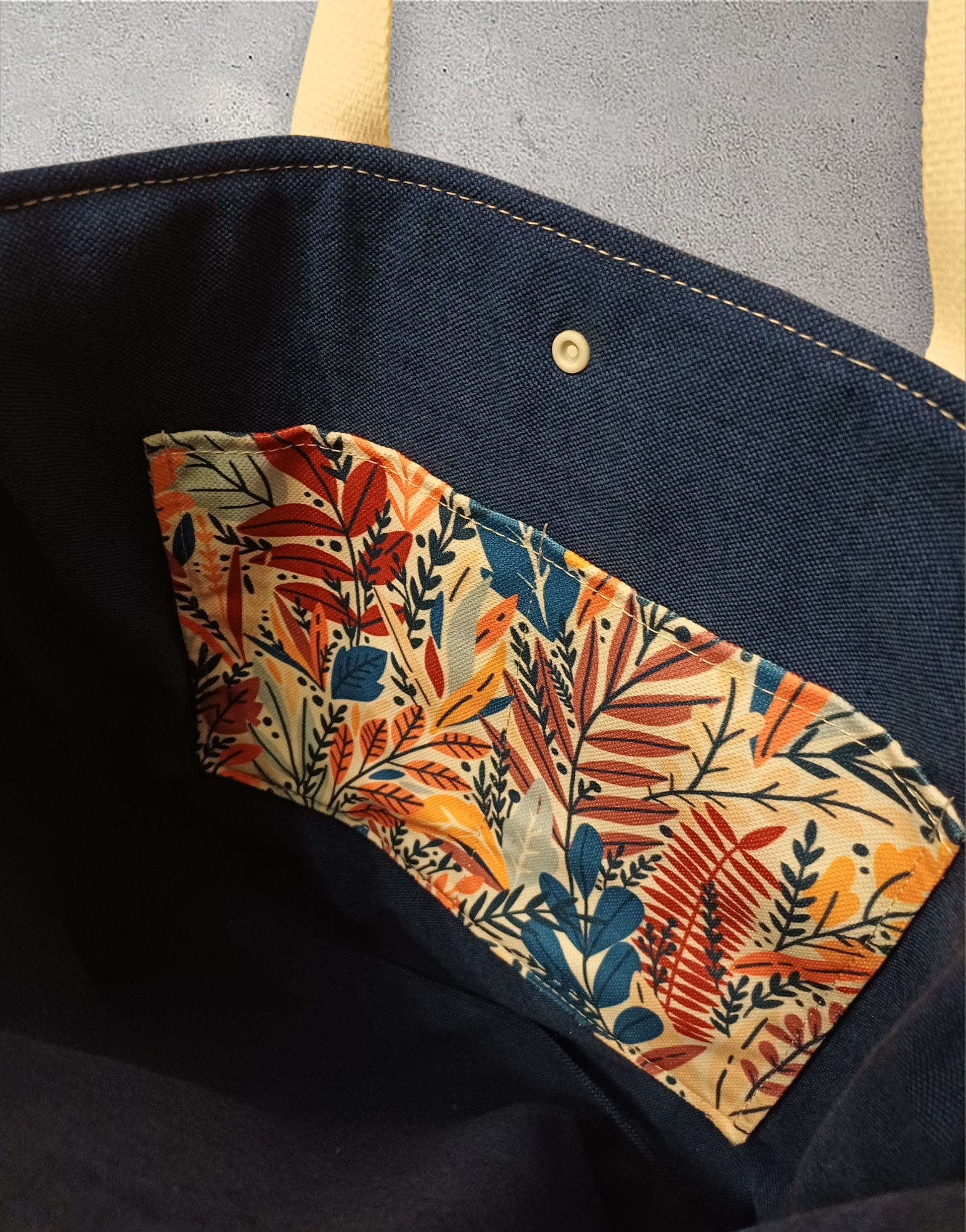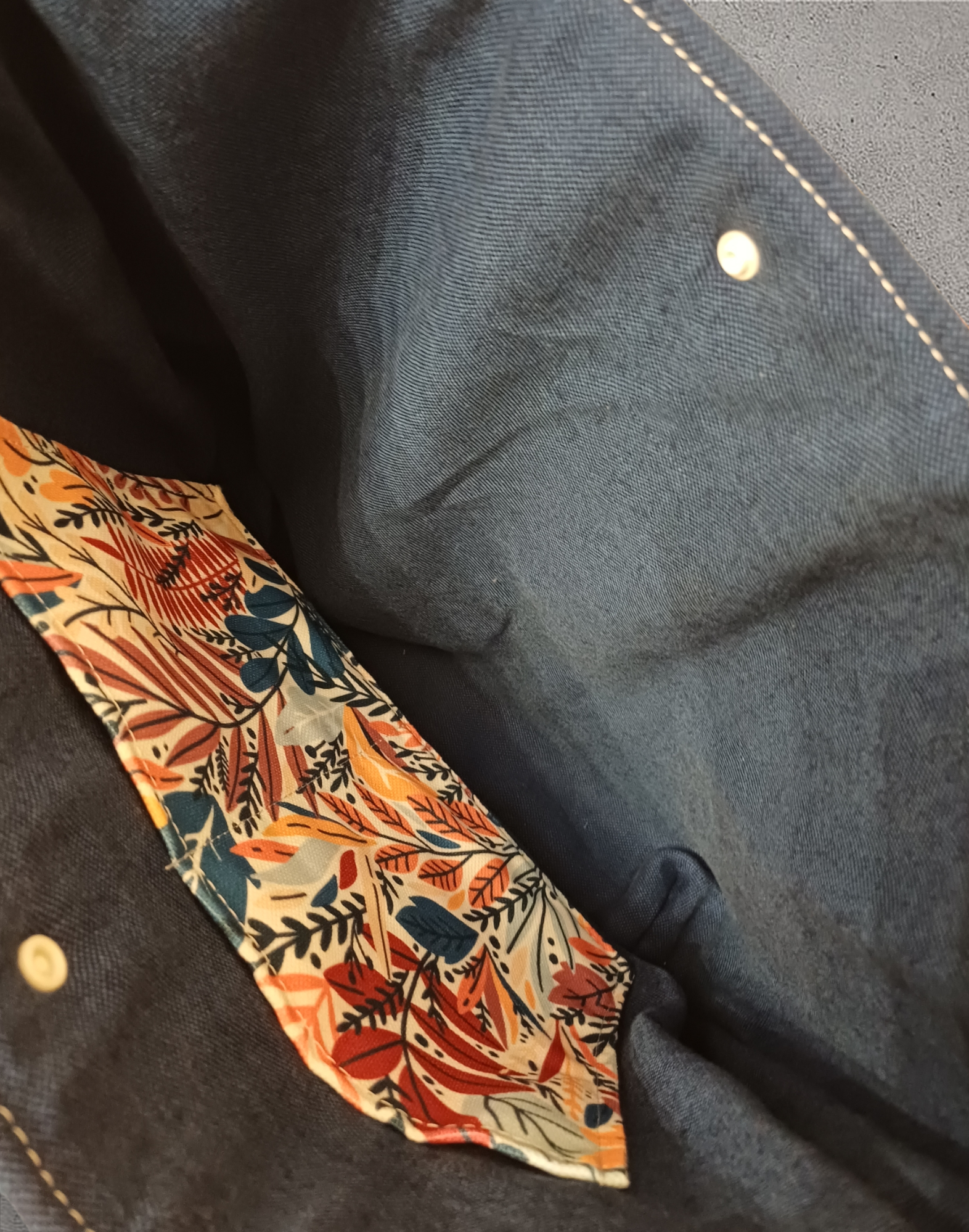 Deze handgemaakte tas heeft een handig formaat waardoor je er veel in kan opbergen. Een drukknopje voorkomt dat je spullen eruit vallen.