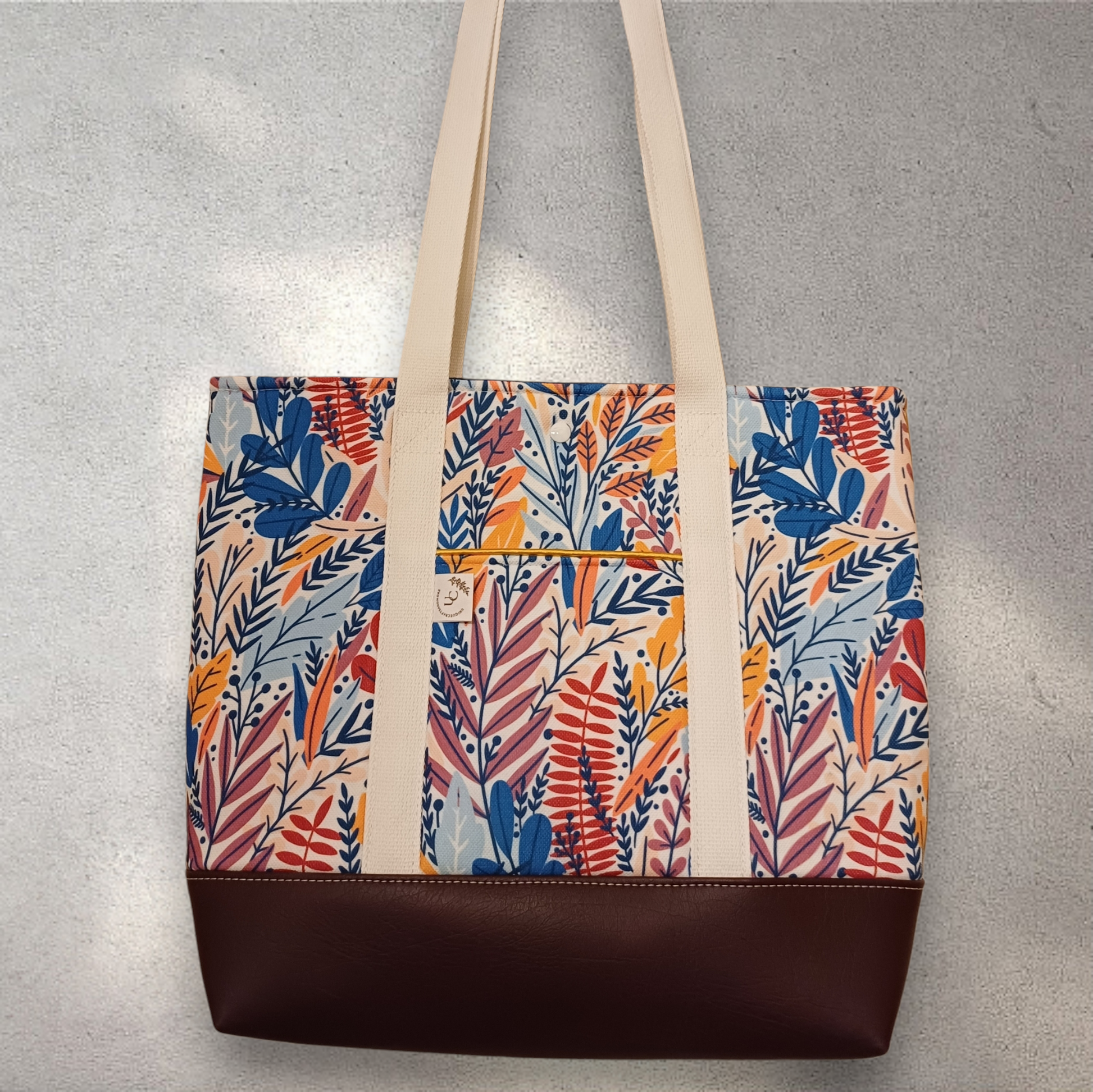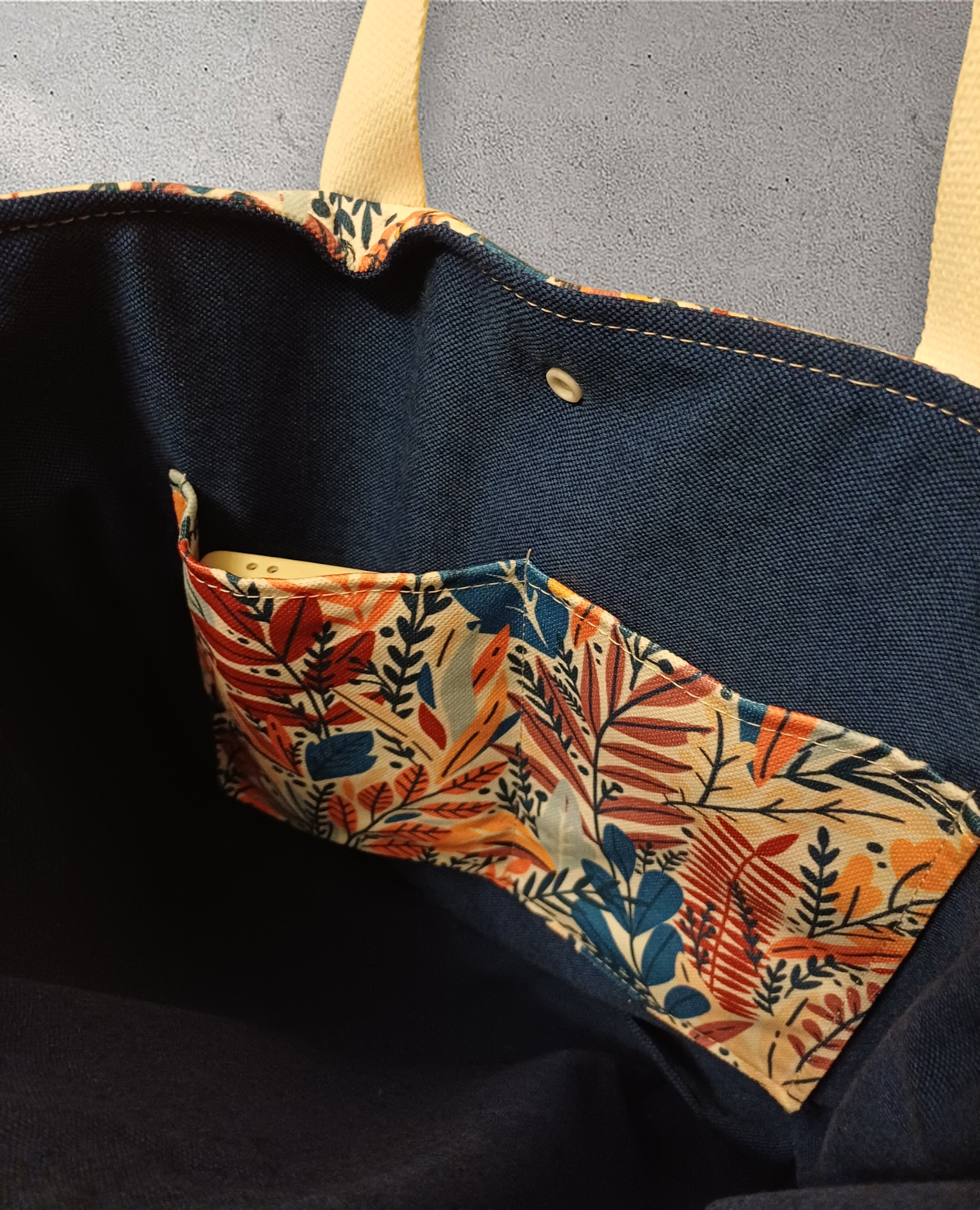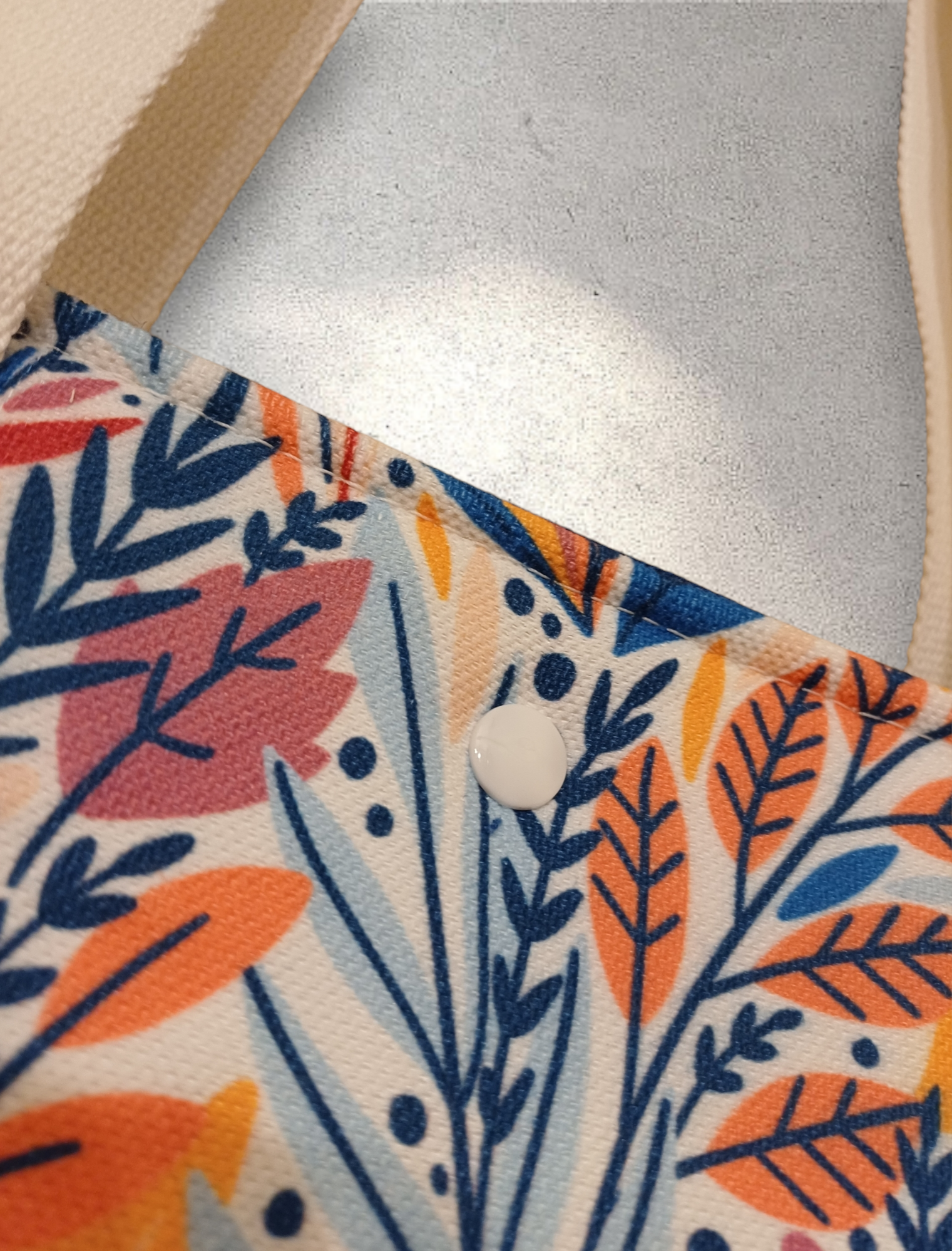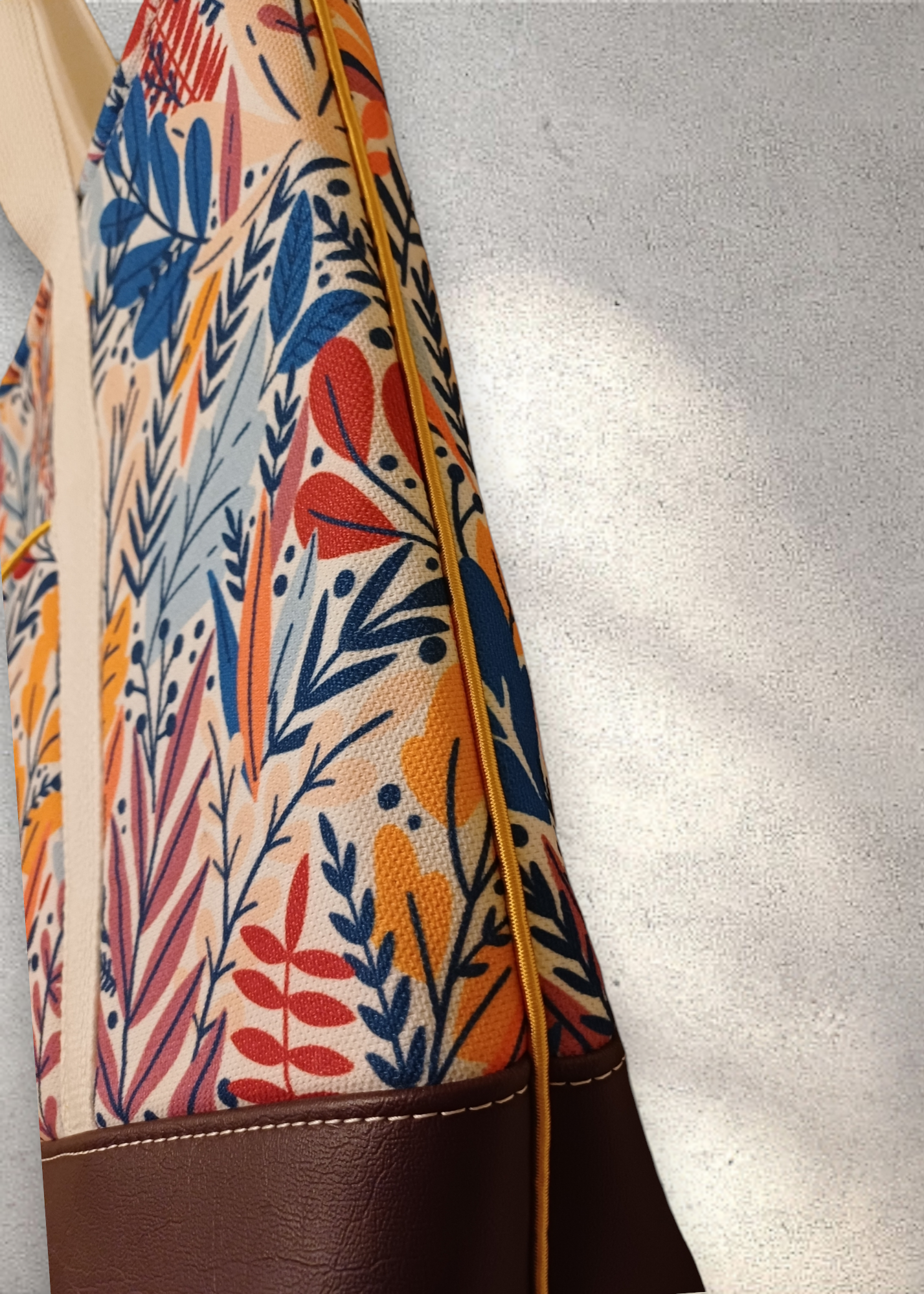 Deze handgemaakte tas heeft een handig formaat waardoor je er veel in kan opbergen. Een drukknopje voorkomt dat je spullen eruit vallen.