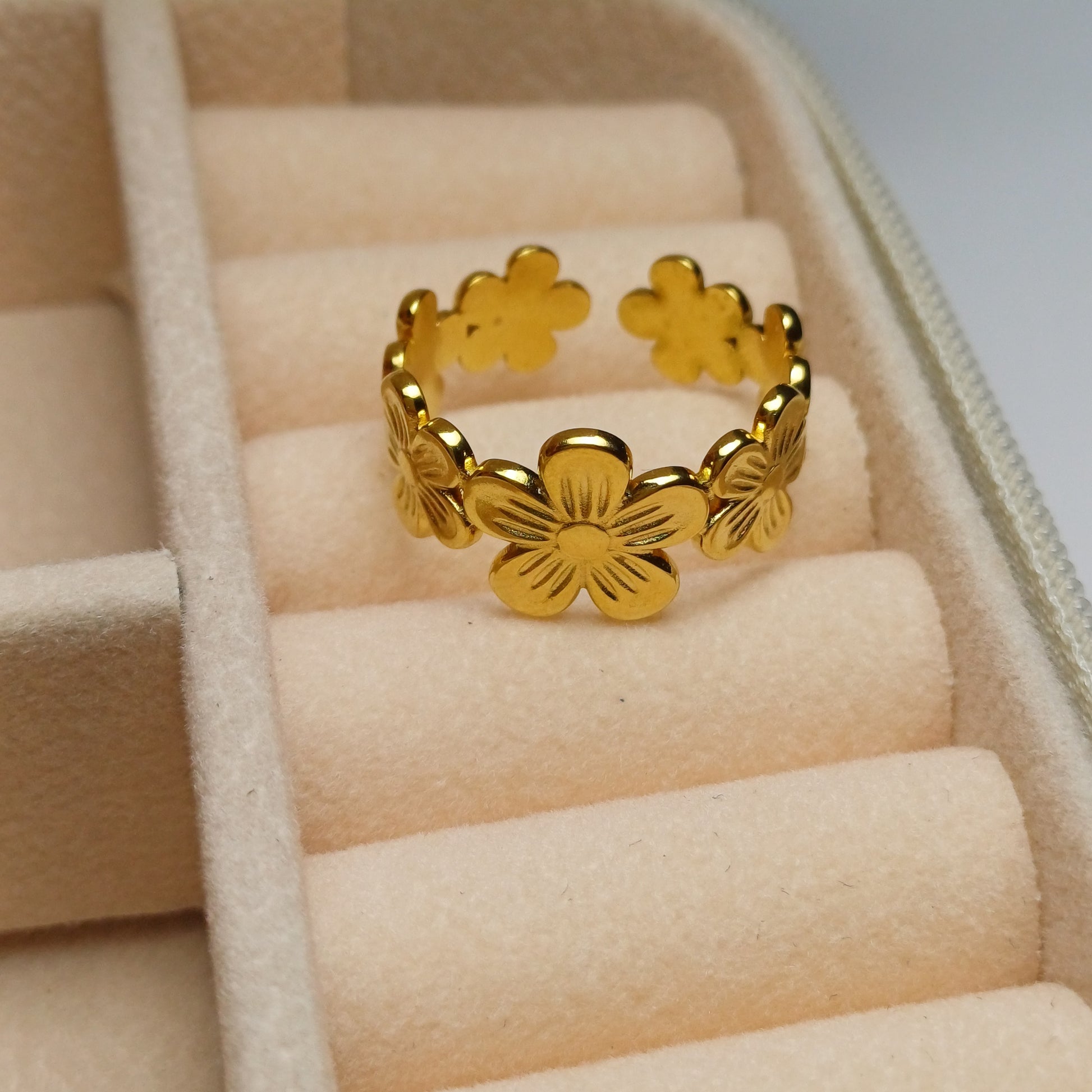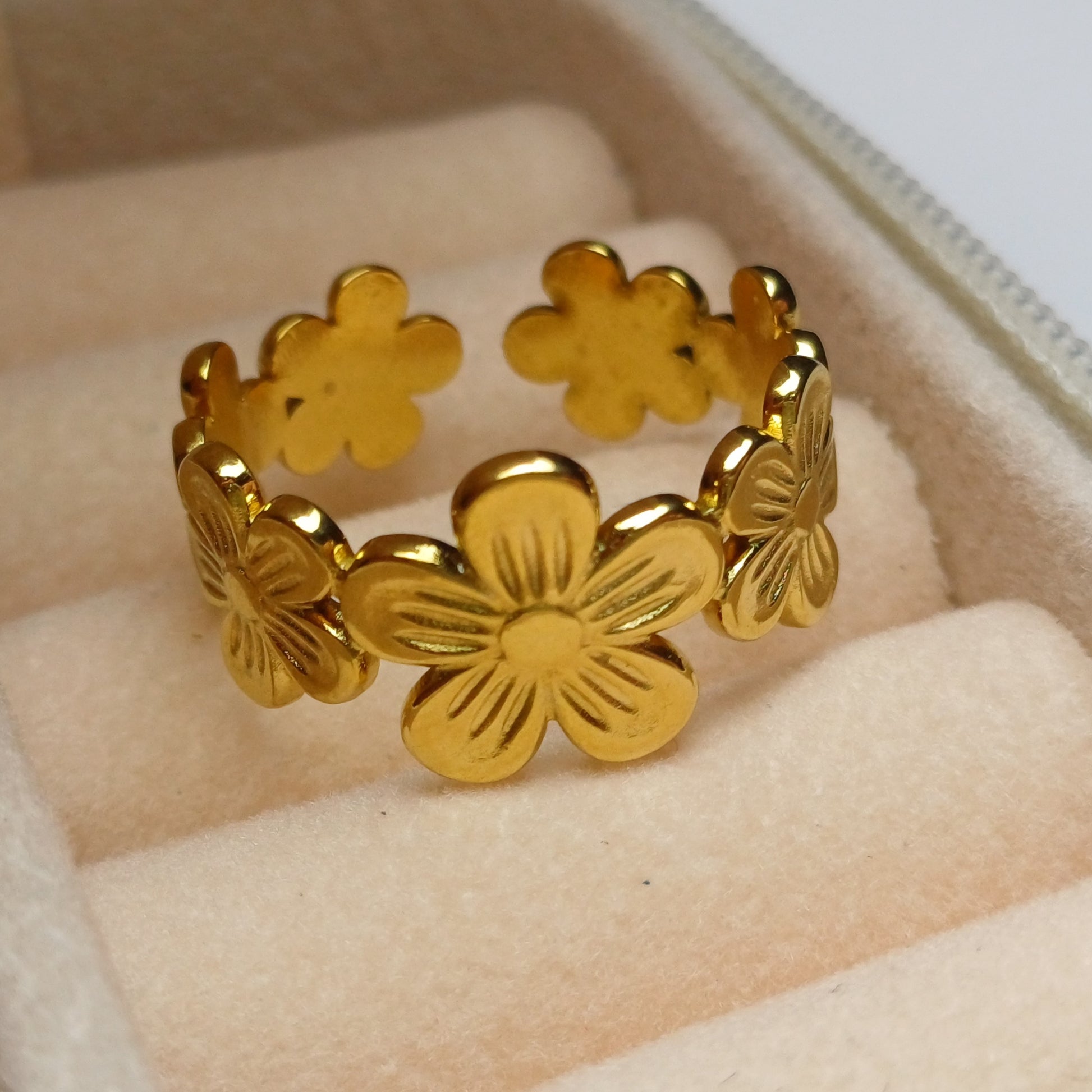 Een leuke ring met bloemetjes. Perfect te combineren met meerdere sieraden. Hij is verstelbaar waardoor hij voor bijna iedereen past☺️