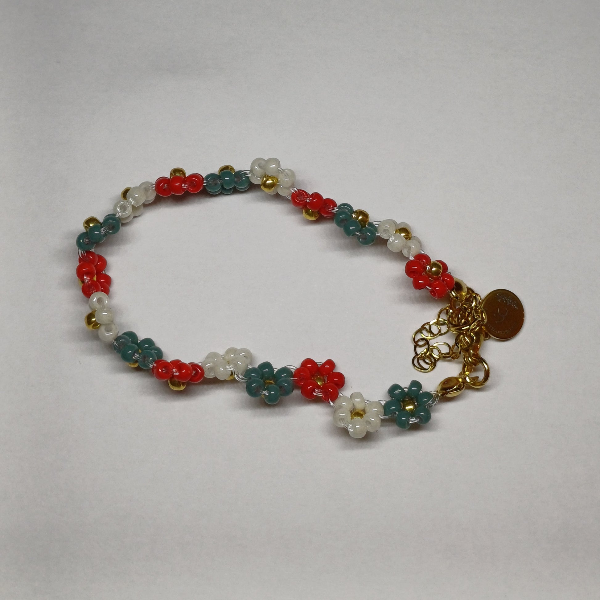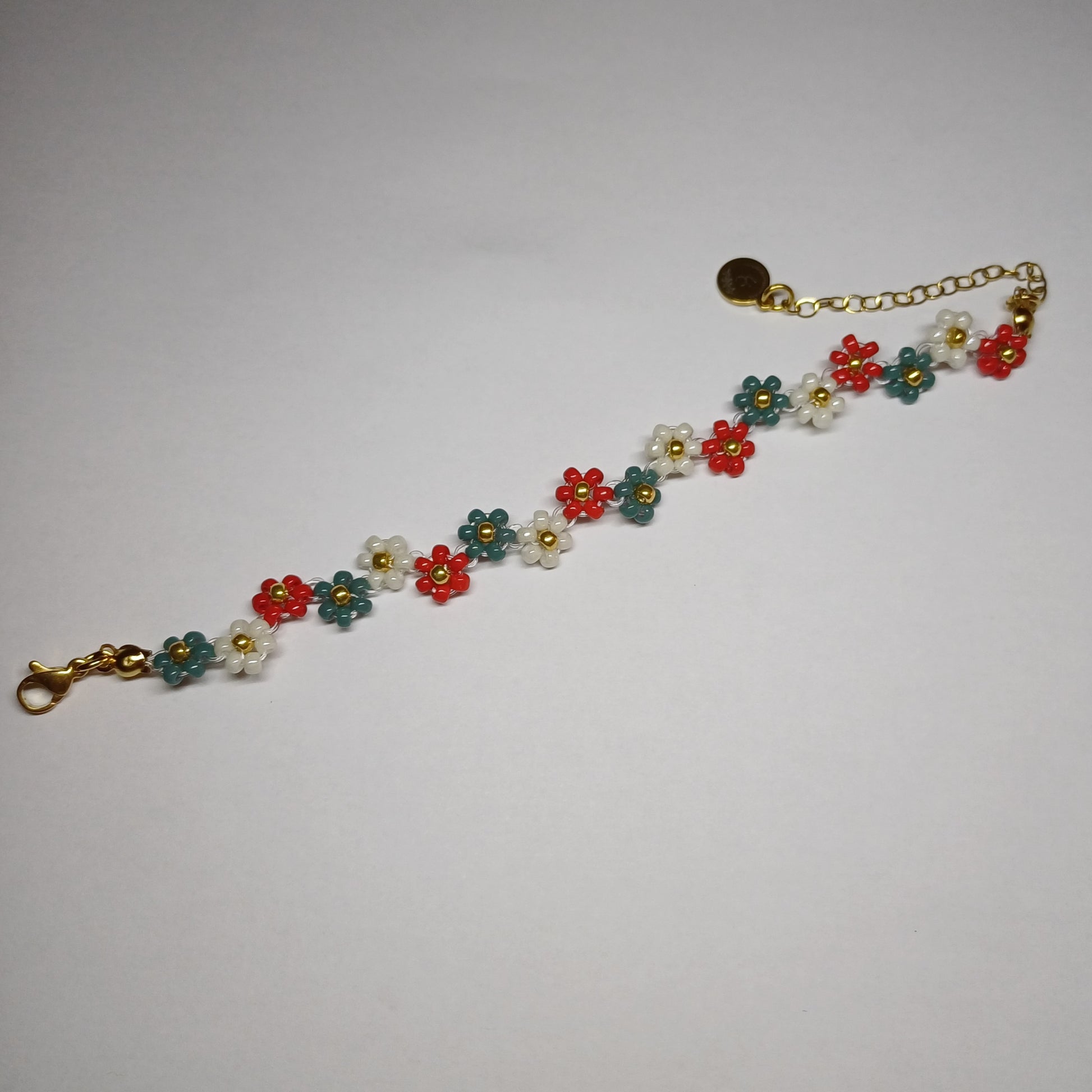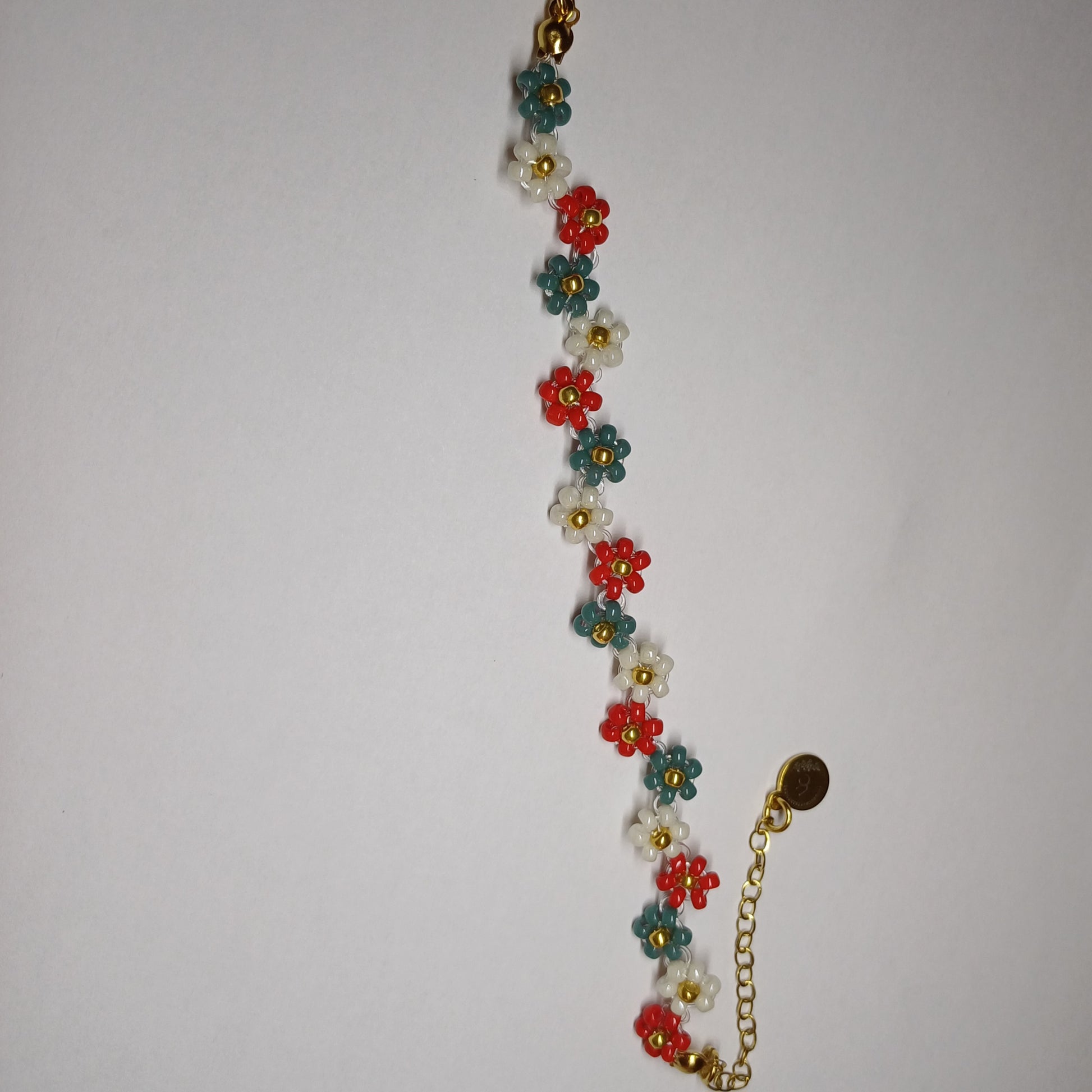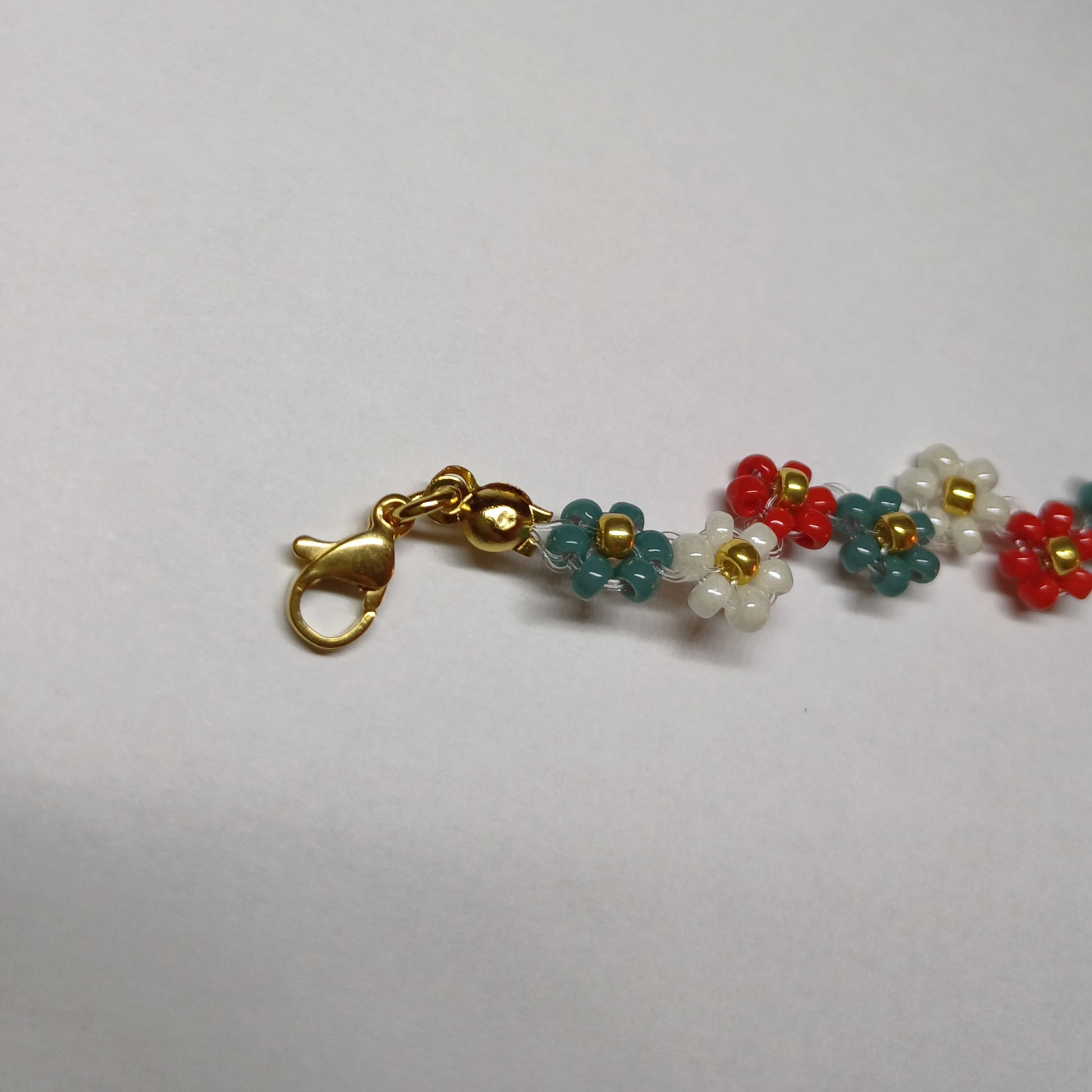 Dit is een handgemaakt kralen armbandje met plastice draad. Het armbandje is rvs(roestvrijstaal ) afgewerkt dus roest niet.