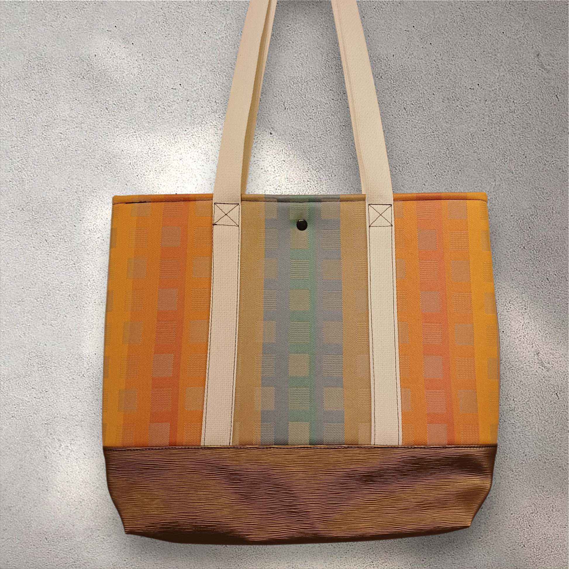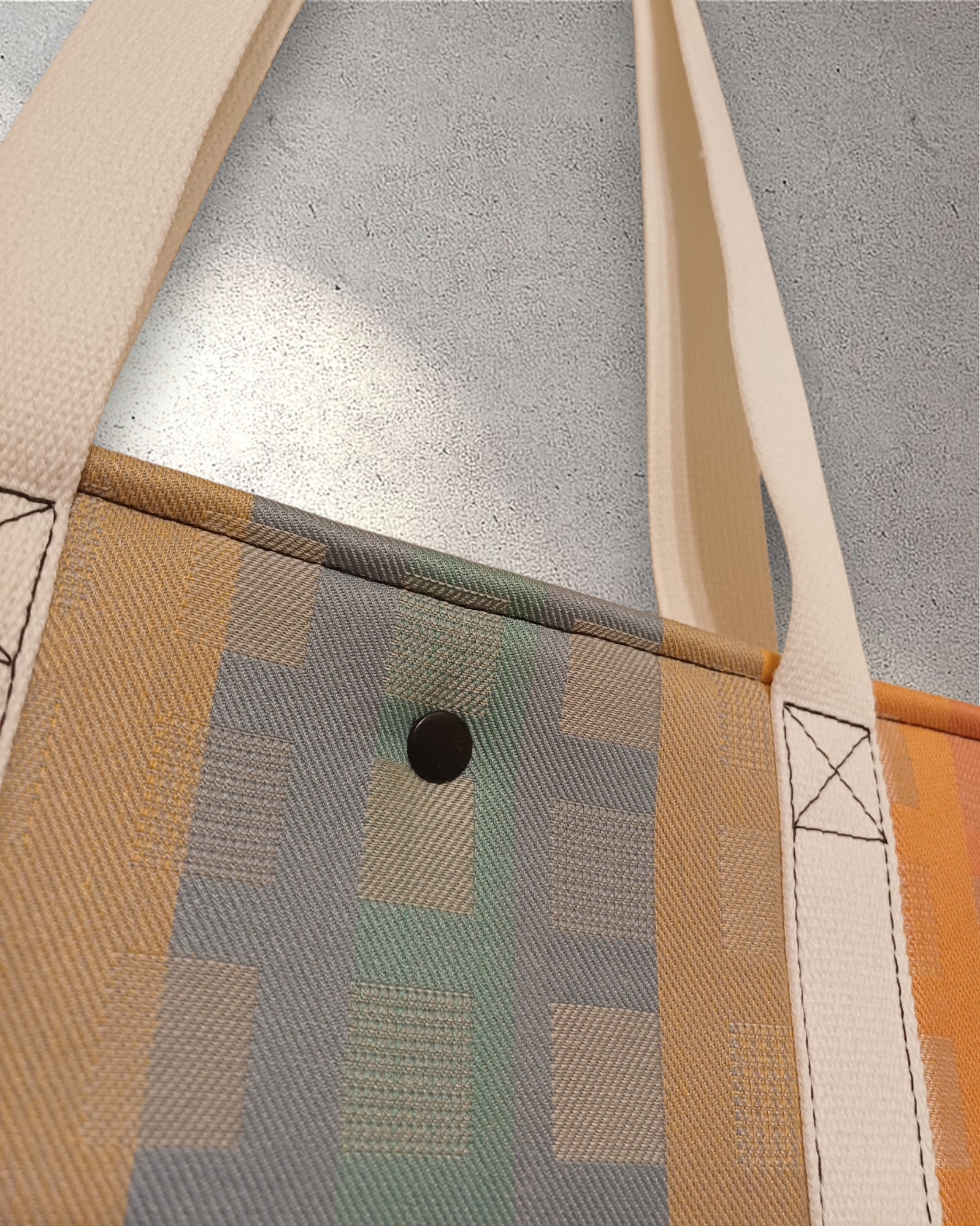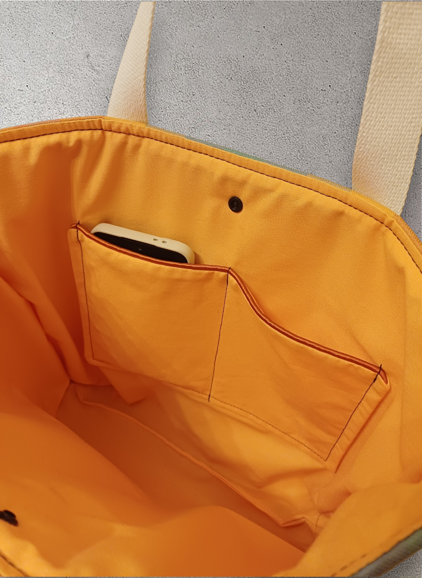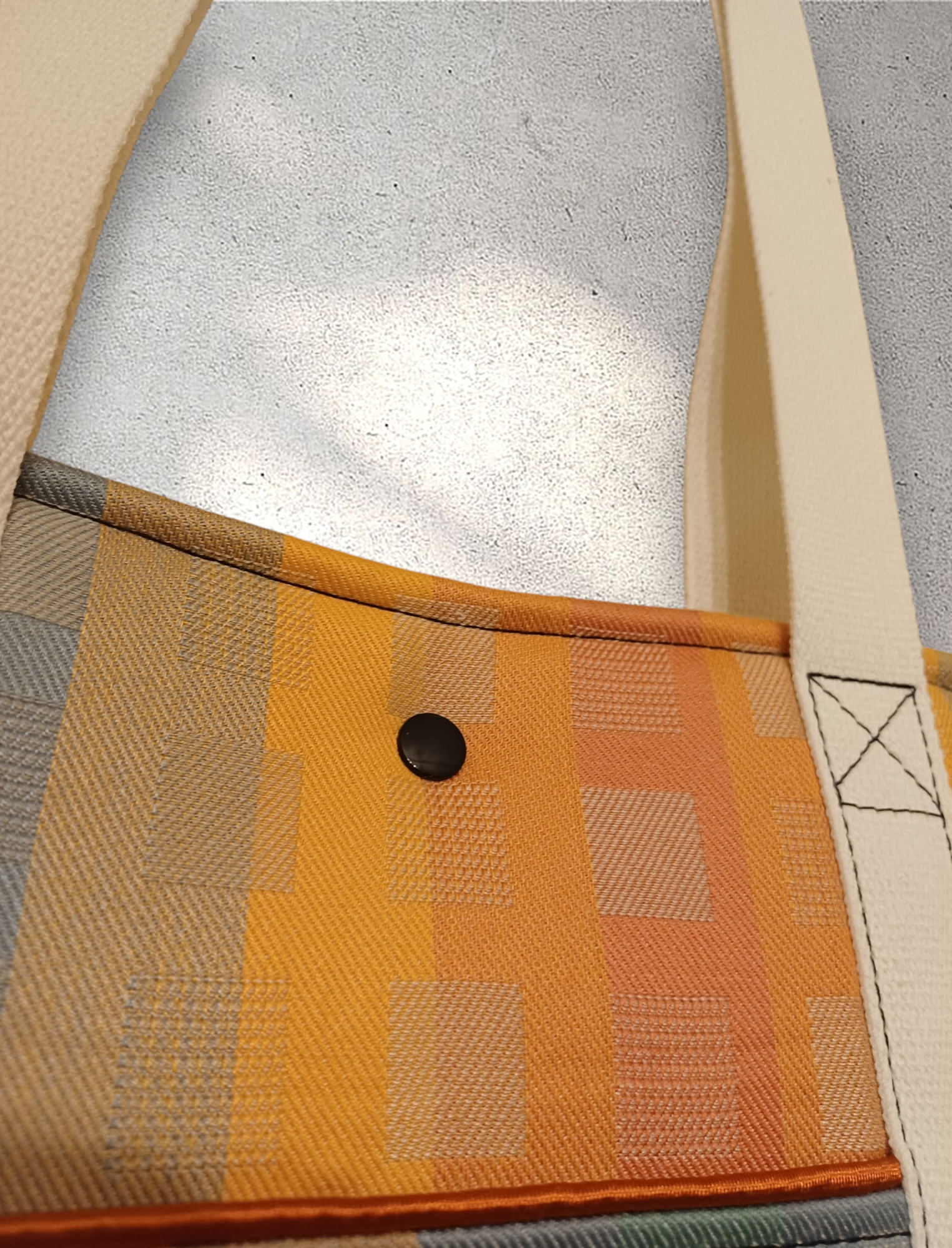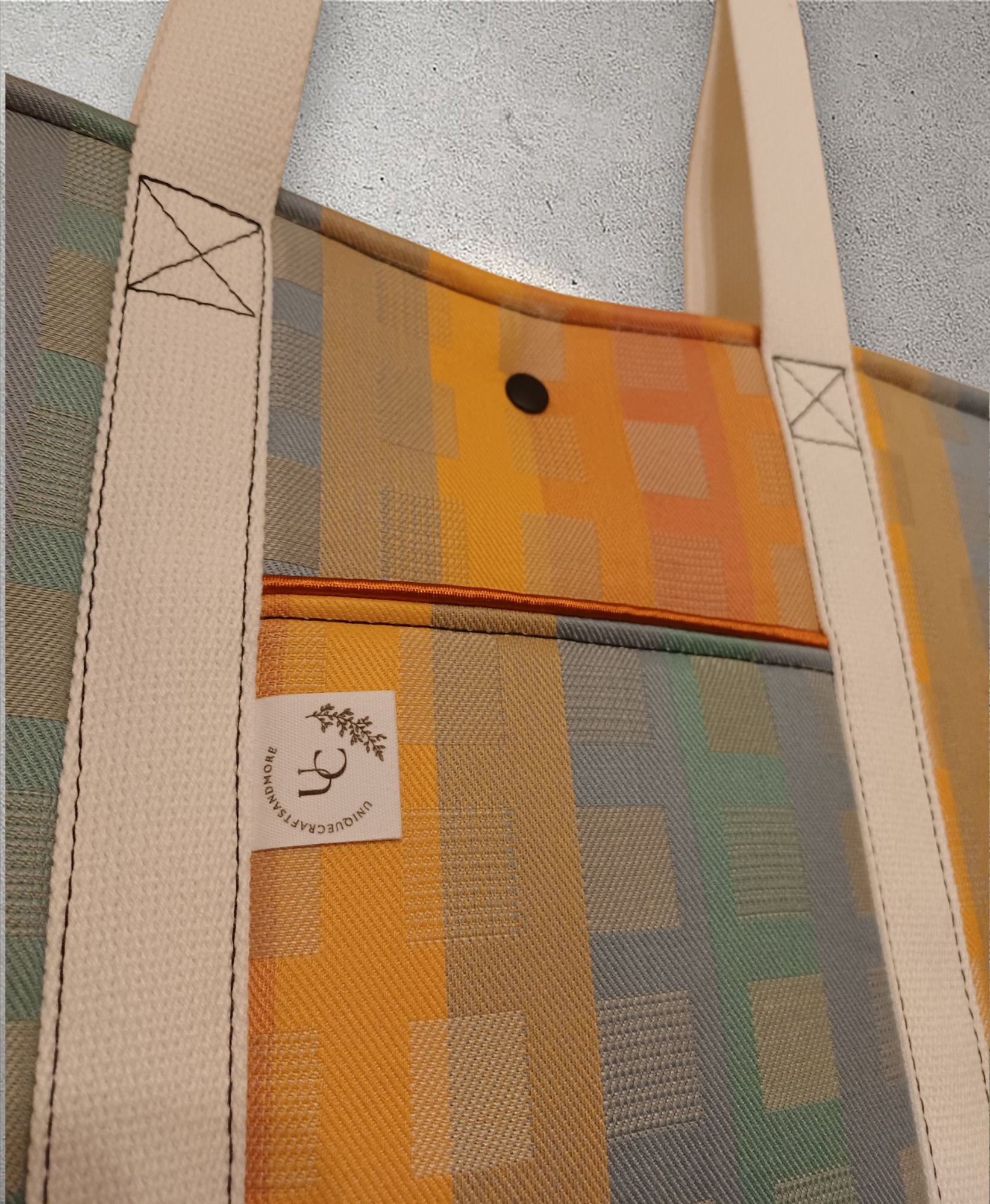 Deze handgemaakte tas heeft een handig formaat waardoor je er veel in kan opbergen. Een drukknopje voorkomt dat je spullen eruit vallen.