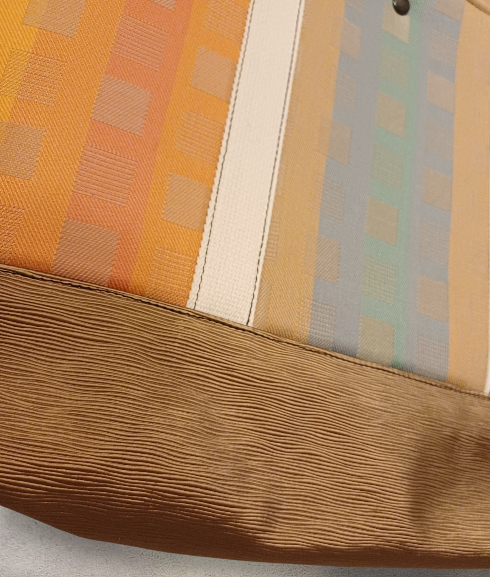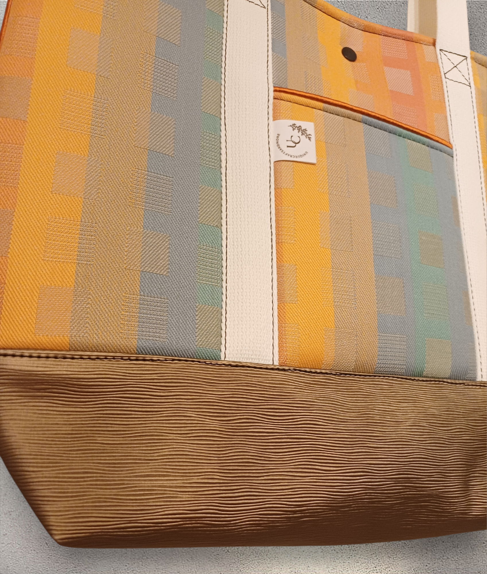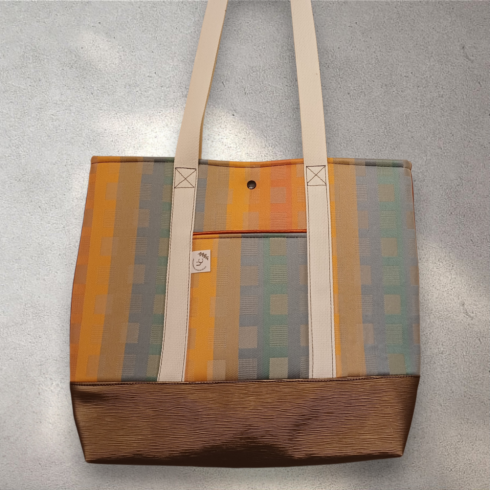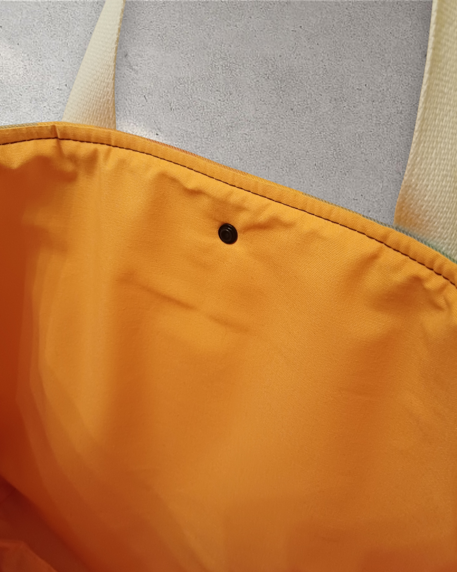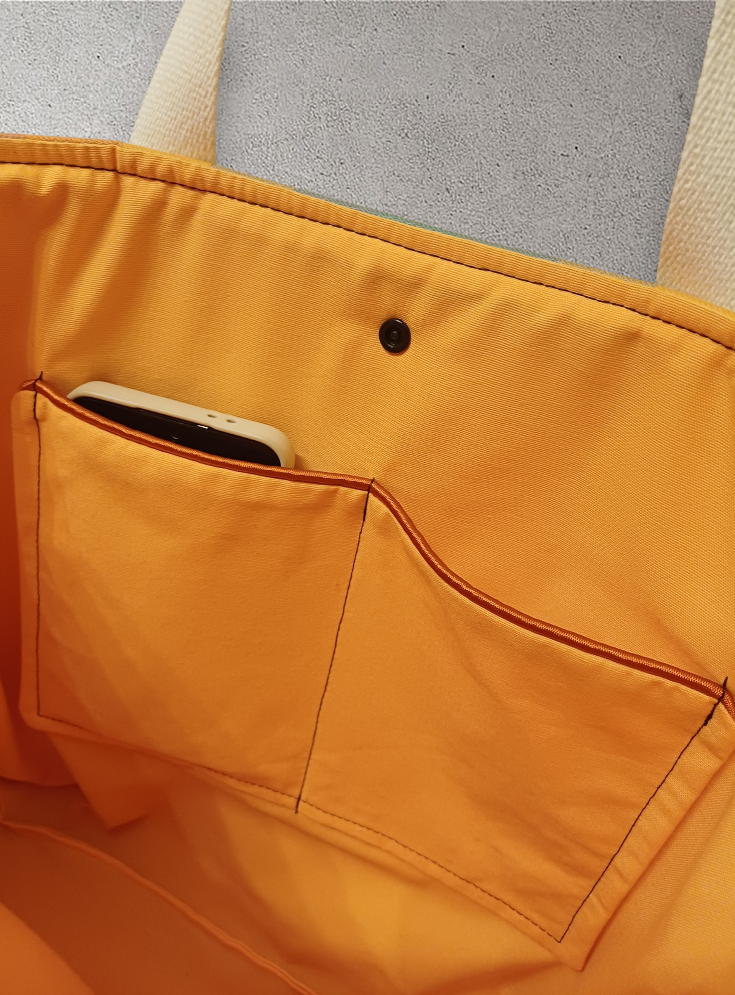 Deze handgemaakte tas heeft een handig formaat waardoor je er veel in kan opbergen. Een drukknopje voorkomt dat je spullen eruit vallen.